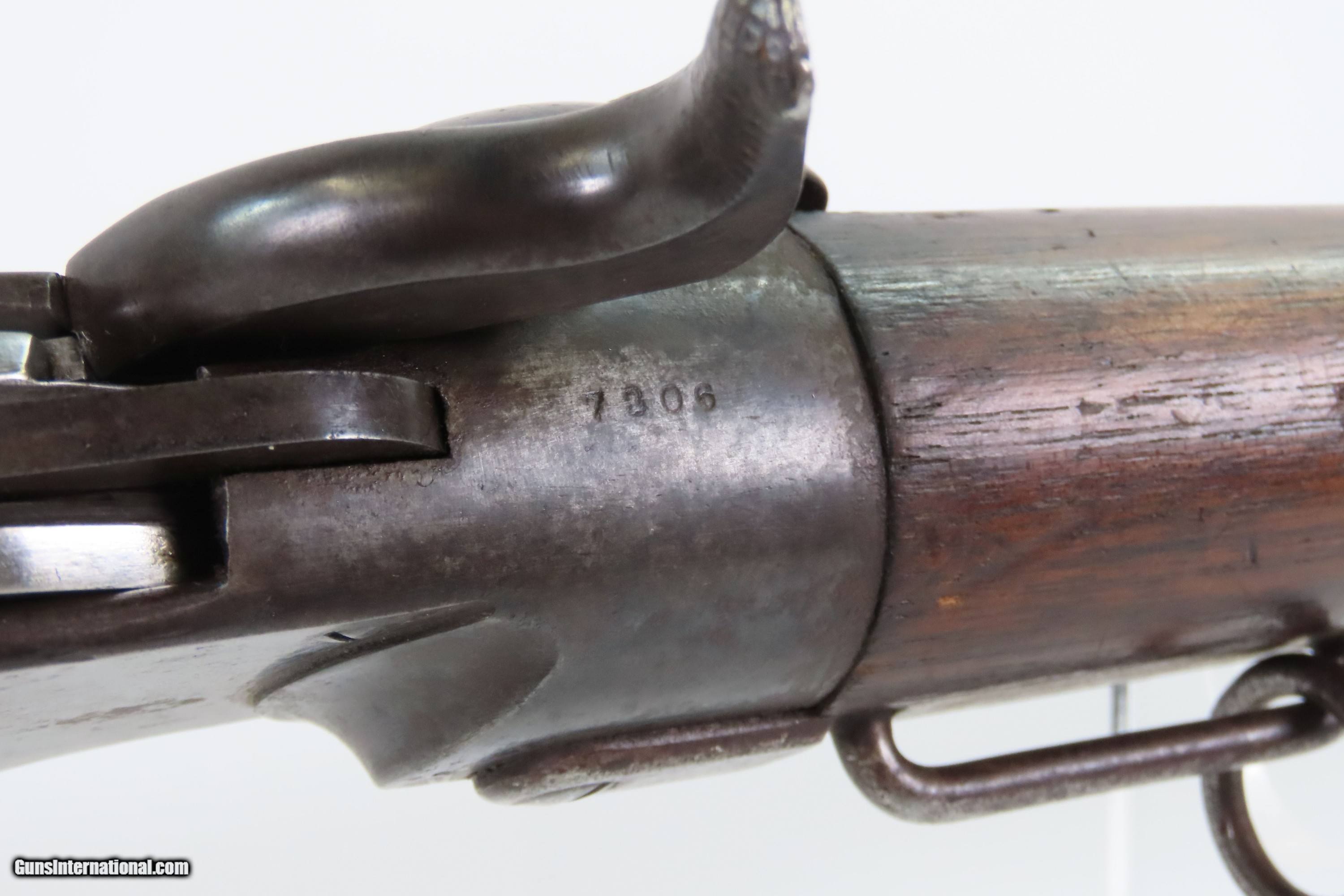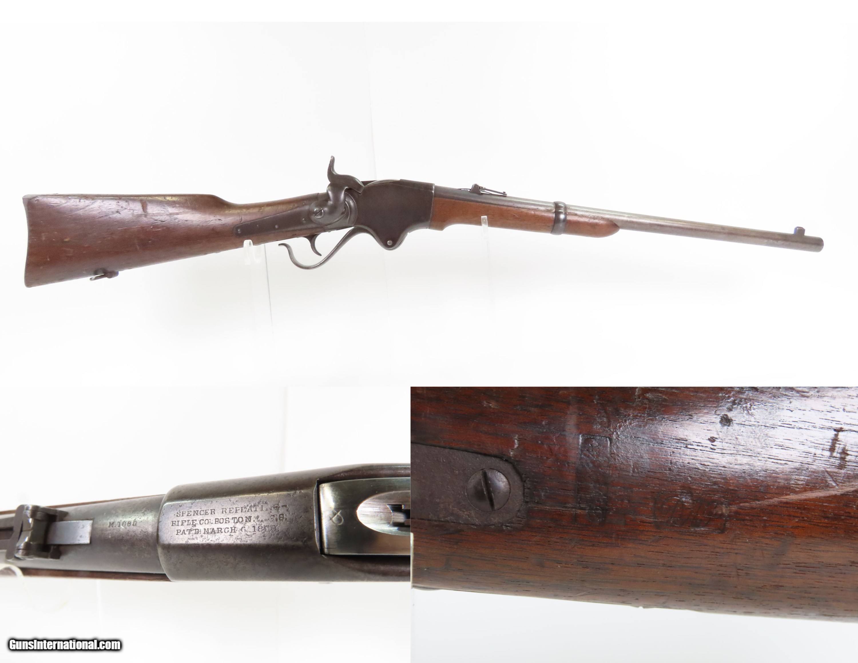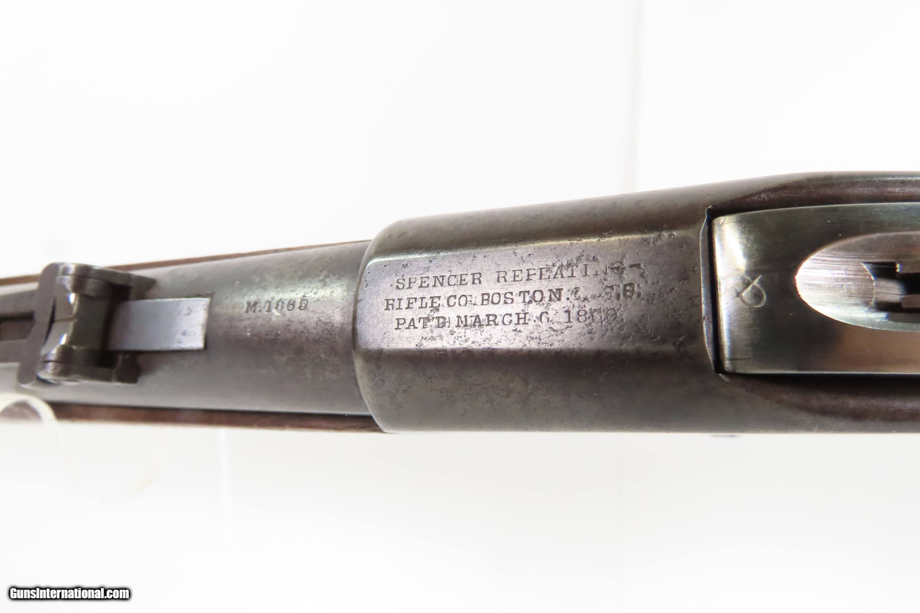 Description: INDIAN WARS|FRONTIER Antique SPENCER M1865 Repeating SADDLE RING CARBINE 1 of about 24,000 Post-Civil War Carbines Produced Here Ancestry Guns presents an antique Spencer Repeating Rifle Co. Model 1865 Repeating Saddle Ring Carbine, made circa late 1865-1866 in Boston, Massachusetts, just after the close of the Civil War. The Model 1865 carbines were lever-operated, breech-loading rifles that were marvels of the time and had a lasting impact on how war was to be fought in the future. Though their service life in the U.S. military was relatively short, the Spencer story includes Christopher Spencer, the inventor of the rifle, demonstrating and shooting with President Abraham Lincoln, who gave his full endorsement of the piece. The Spencer was the world's first military metallic cartridge repeating rifle, and over 200,000 examples were manufactured in the United States by the Spencer Repeating Rifle Co. and Burnside Rifle Co. between 1860 and 1869. The Spencer repeating rifle was adopted by the Union Army, especially by the cavalry, during the American Civil War but did not replace the standard issue muzzle-loading rifled muskets in use at the time. Among the early users was George Armstrong Custer. This Spencer carbine was a shorter and lighter version designed for the cavalry. Many a buffalo were taken off the plains during westward expansion by the Spencer rifle. As mentioned above, the Spencer Repeating Rifle Co. manufactured the Model 1865 carbines in 1865-1866, serial numbered in the approximate range of 1-24000 and chambered for use with the 56-50, “50 Spencer” rimfire. There are two bordered script inspection cartouches stamped on the left stock wrist. The overall condition is good. Original brown and gray patinas. Solid stock and forend with expected wear. Markings are worn but remain legible. Legible cartouches behind the saddle ring tang on left wrist. The action is strong. Breechblock is a centerfire replacement, meaning it can fire some of the reloadable brass that some companies make. The bore is very bright with sharp rifling. Own the original! This is a legitimate antique and not a reproduction. Barrel is 20 inches. Caliber: .56-50 (.50 Spencer) Rimfire Overall condition as seen in photos. Very Fast. Very Safe. FREE SHIPPING WORLDWIDE. Delivered directly to your door by express mail! Guaranteed AUTHENTIC & Includes CERTIFICATE OF AUTHENTICITY. $3800 #259327 Antique: Yes Price: $3,800.00 Buy Now Pay with