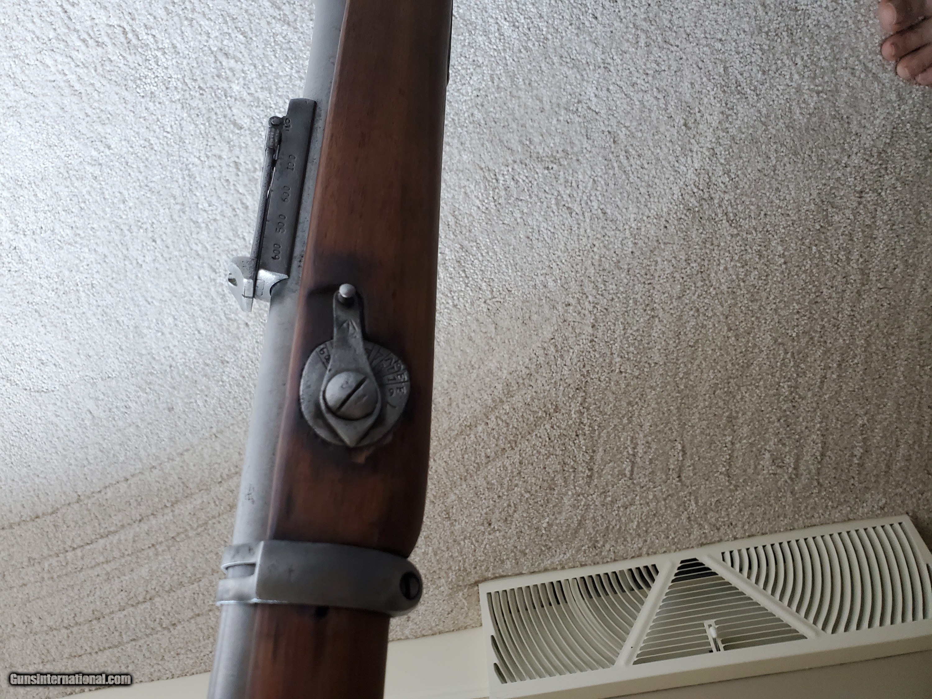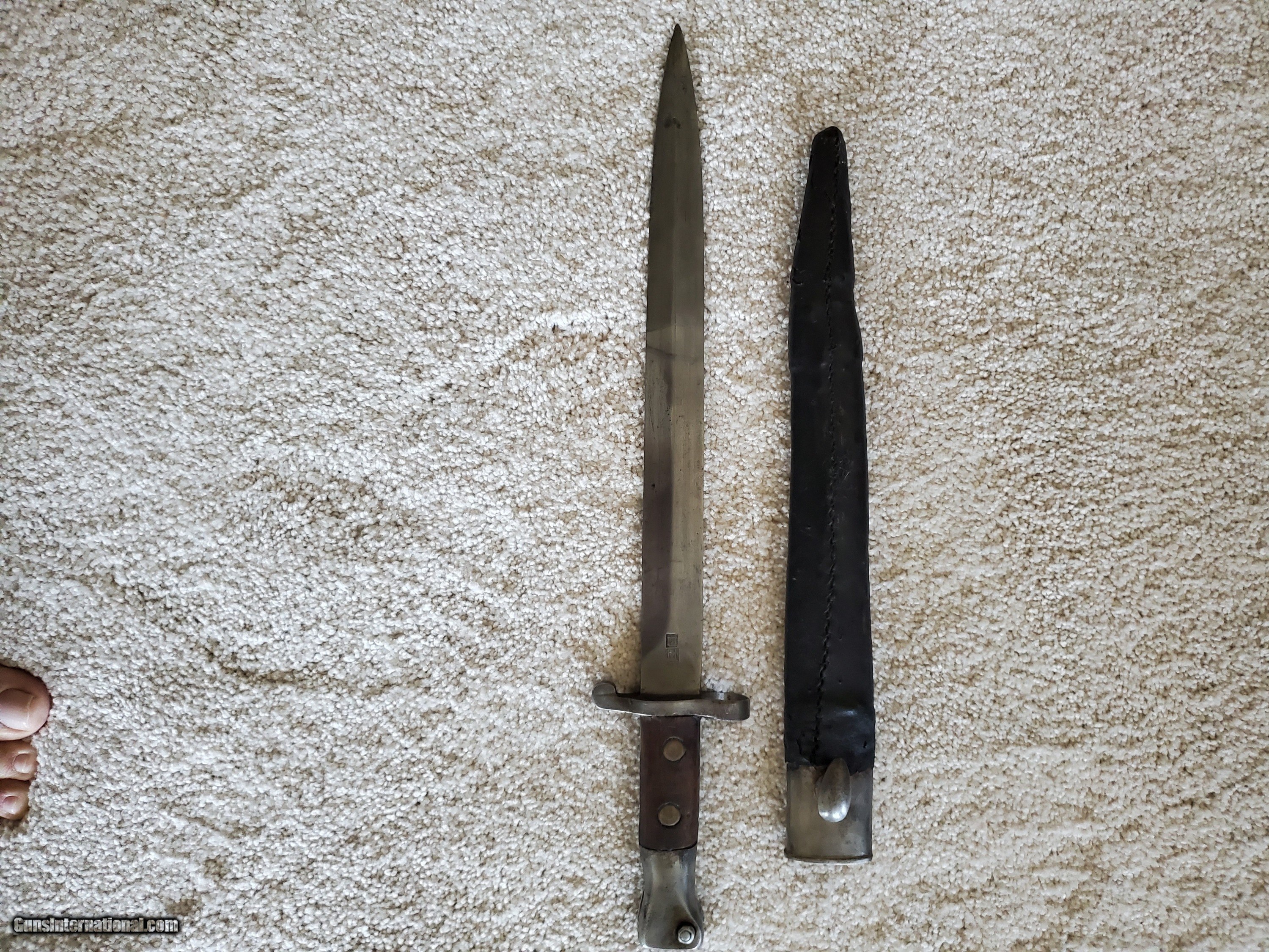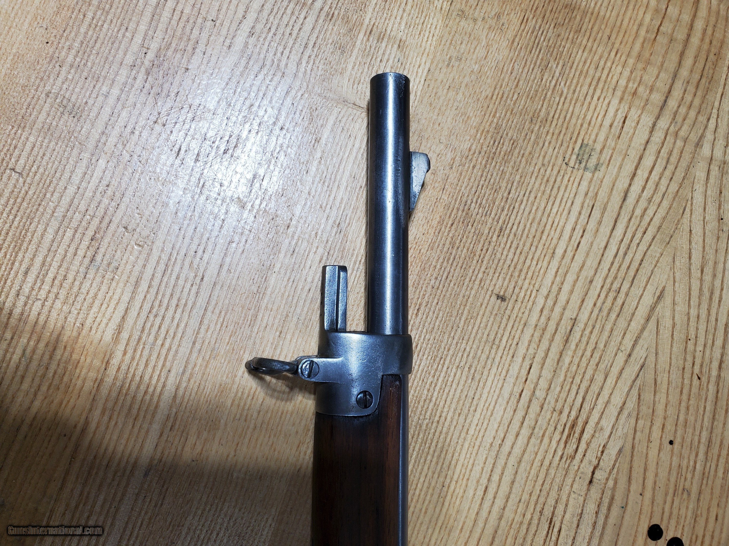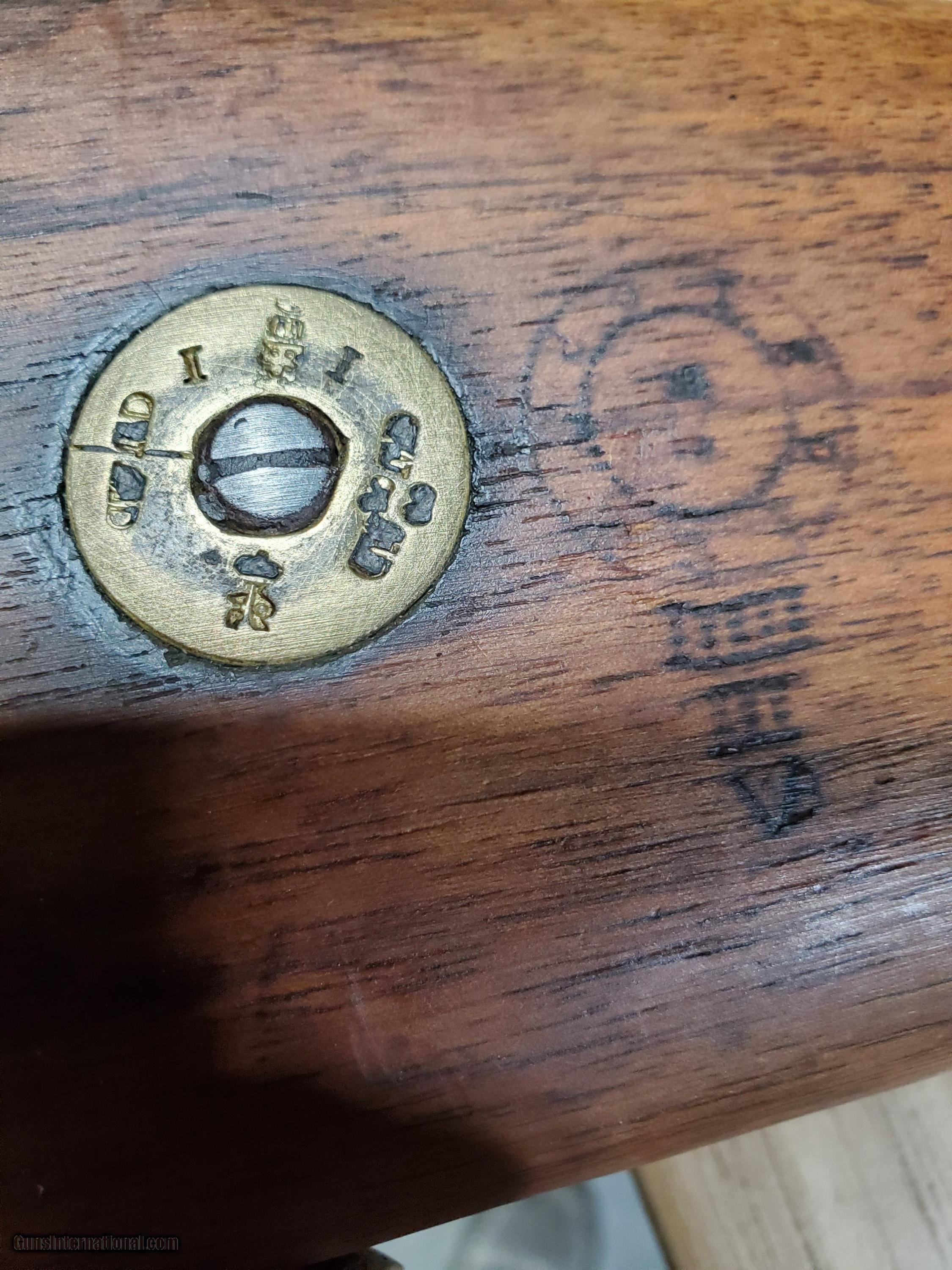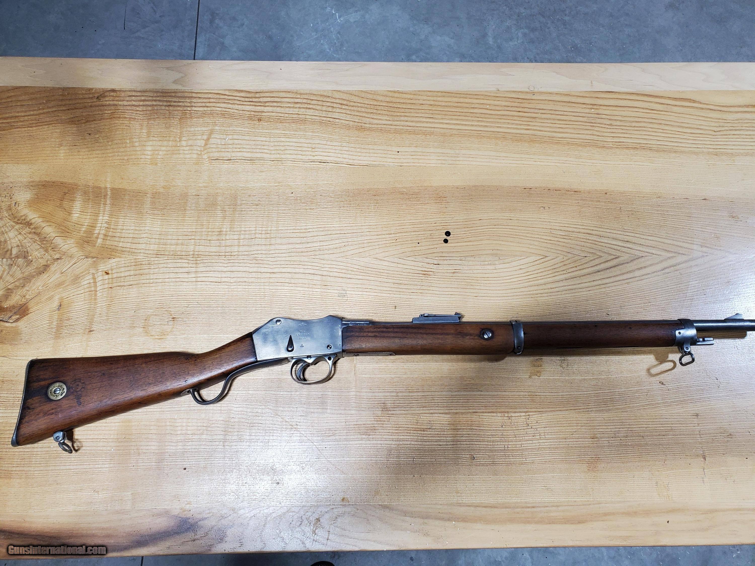 Description: Listed is a Kabul well made copy of a British Martini Medford Artillery Carbine in 303 caliber. Possible made at the Kabul Arsenal, with the original markings removed and remarked British. Comes with a Kabal made 1888 bayonet which fits the gun. The gun is solid and appears to function as it should. Bore is good. I have not attempted to fire this gun. As with any of these guns they should not be fired before having been inspected by a competent gunsmith. It is marked in two places #1887 SOLD Antique: Yes |