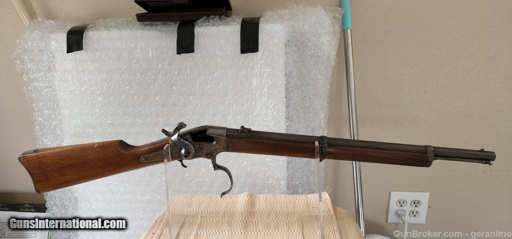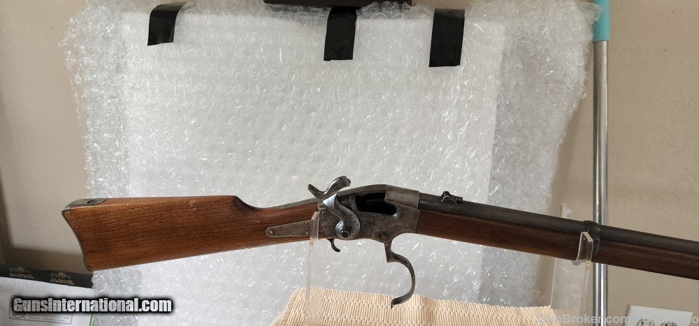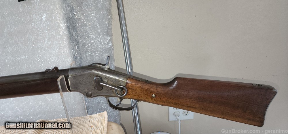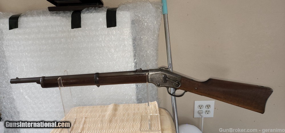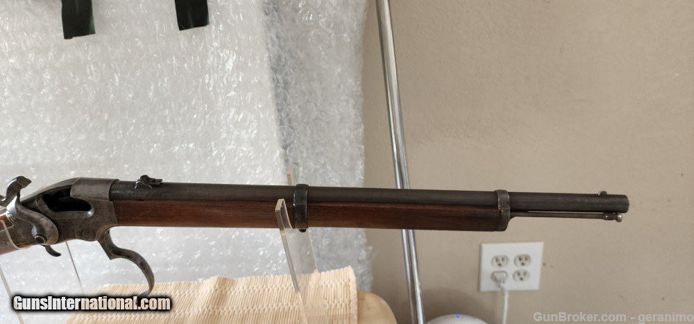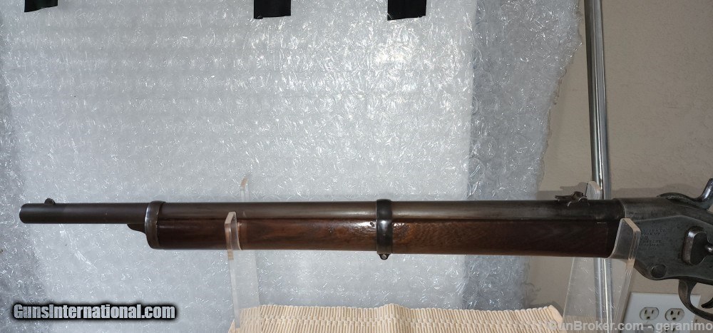 Description: GOOD CONDITION COMPLETE WITH ORIGINAL CLEANING ROD NO CRACKS IN WOOD VERY GOOD BORE SOLD Antique: Yes Rifle Caliber: .56-56 Spencer |