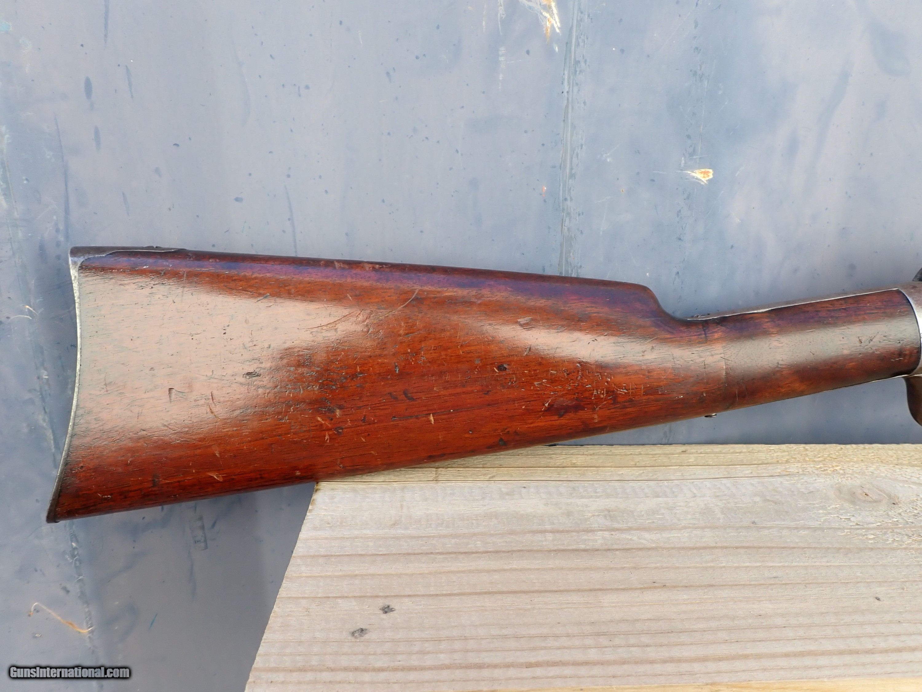 Description: Here is a very rare rifle. It is a Lee Firearms Company Single shot with swinging barrel. These were made in the 1860s and only approximately 1100 or so were produced. The serial numbers appear to be non-sequential as the are scattered all over the range of 1000 - 4000 or so but records do not show anywhere near 4000 produced. This one does appear to be a centerfire and also appears to be smoothbore. It might be a 45-70 shot cartridge but I am not sure. Ships direct to you with a copy of your ID to prove age and residency. Thanks for looking! $45 shipping, Alaska and Hawaii will be a little more for shipping. Please call with any questions. Please click the BUY NOW button to purchase this item. We are required to charge 8.25% for Texas residents. There is a 3.5% fee if paying by credit card. SOLD Manufacturer: Lee Firearms Company Model: Single Shot Serial Number: 1279 Barrel Length: 28 Condition: Very Good Metal Condition: Very Good Wood Condition: Very Good Bore Condition: Very Good |