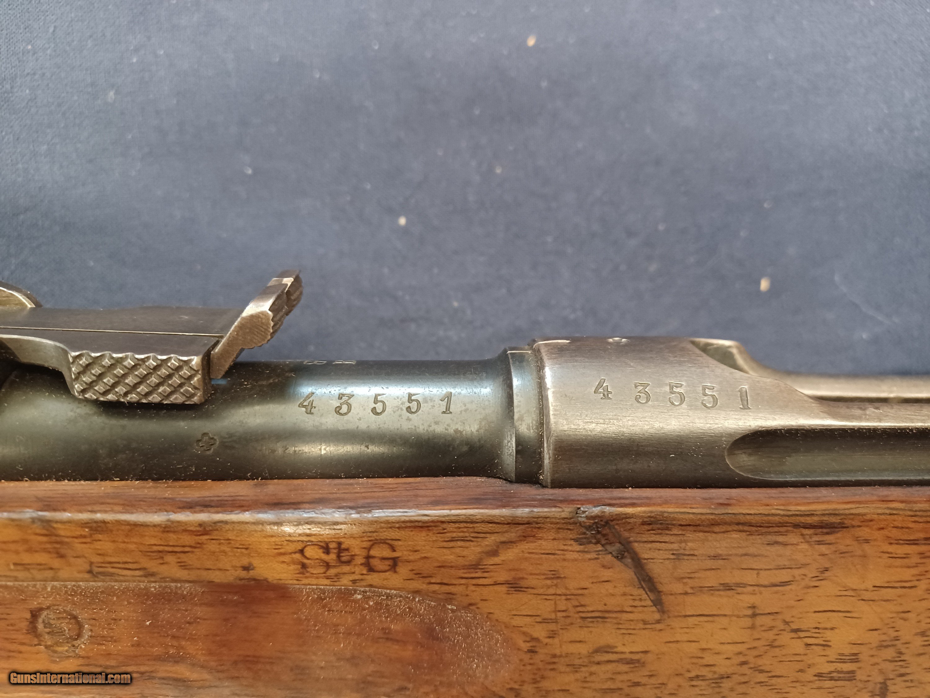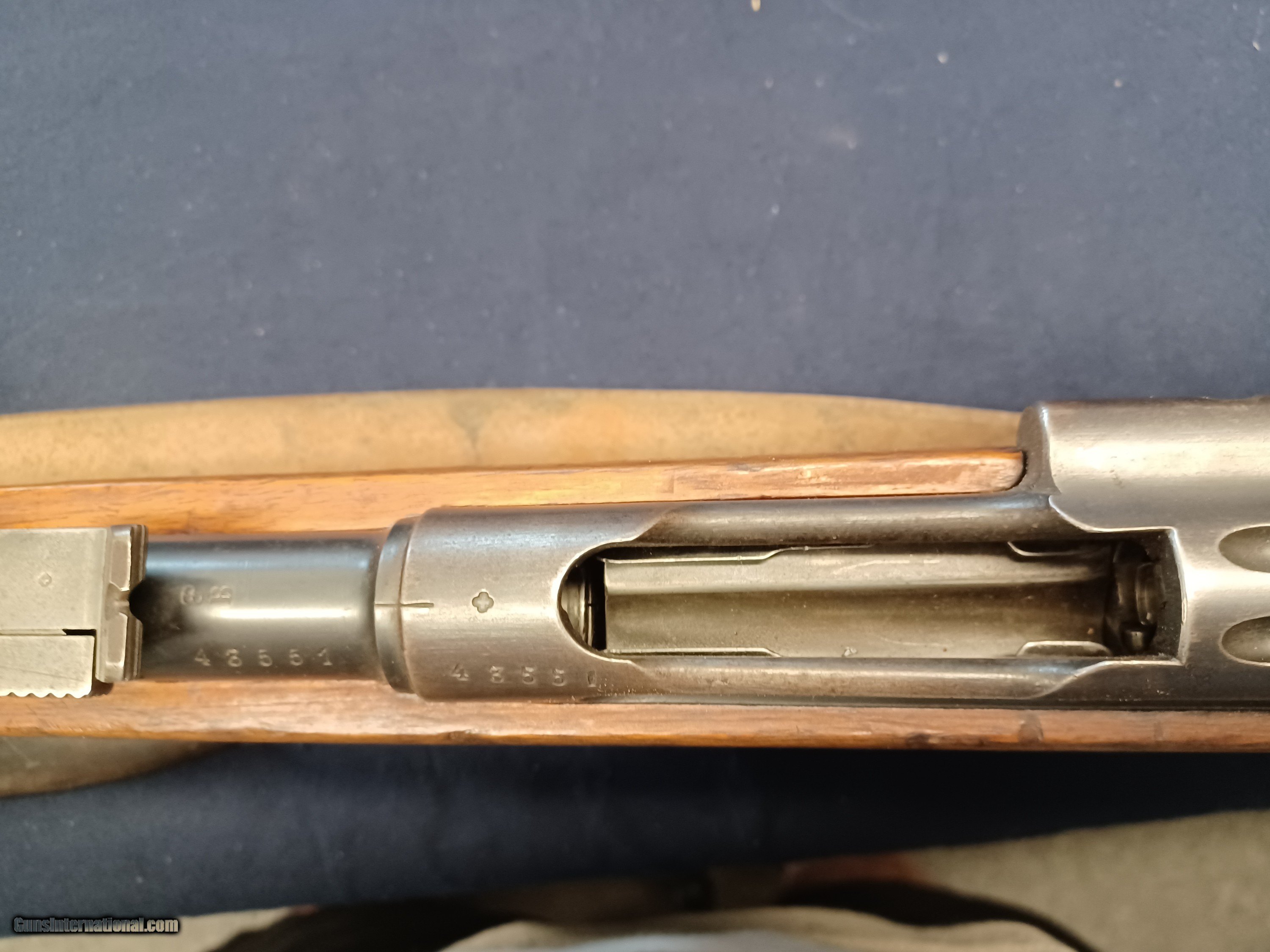 Description: In great condition with strong rifling and a very clean bore. It is serial number 43551 matching the receiver and barrel. Comes complete with an original sling and bayonet and scabbard. Well marked and ready to shoot! Price is $800.00 for all or best offer. You pay shipping. SOLD Antique: Yes Rifle Caliber: 7.5x55mm Swiss |