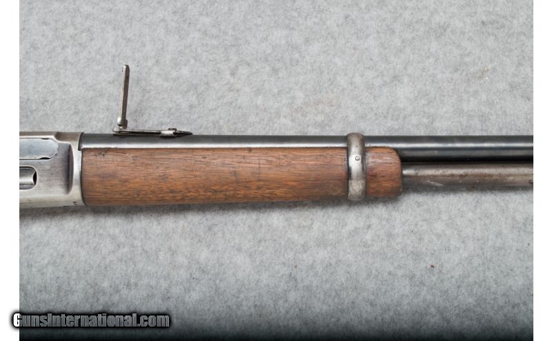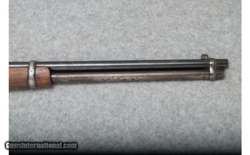 Description: Used. Saddle Ring Carbine - "For Black Powder". SOLD Antique: Yes Manufacturer: Circa: 1907 Caliber Info: .38-55 Win. Metal Condition: Fair, overall; heavy rust spotting on magazine tube Wood Condition: Solid, but well worn; small chip at toe Bore Condition: Fair; light corrosion throughout; rifling is decent Barrels: 20 Triggers: Smooth steel Stock: Smooth straight grip walnut Stock Dimensions: LOP - 13 7/8 Fore End: Smooth walnut with barrel band Butt Pad: Lace-on leather pad; curved steel plate is missing Weight: 6 lbs. 6 oz. Sights: Adjustable folding rear; blade front Item Location: Sun Prairie, WI |