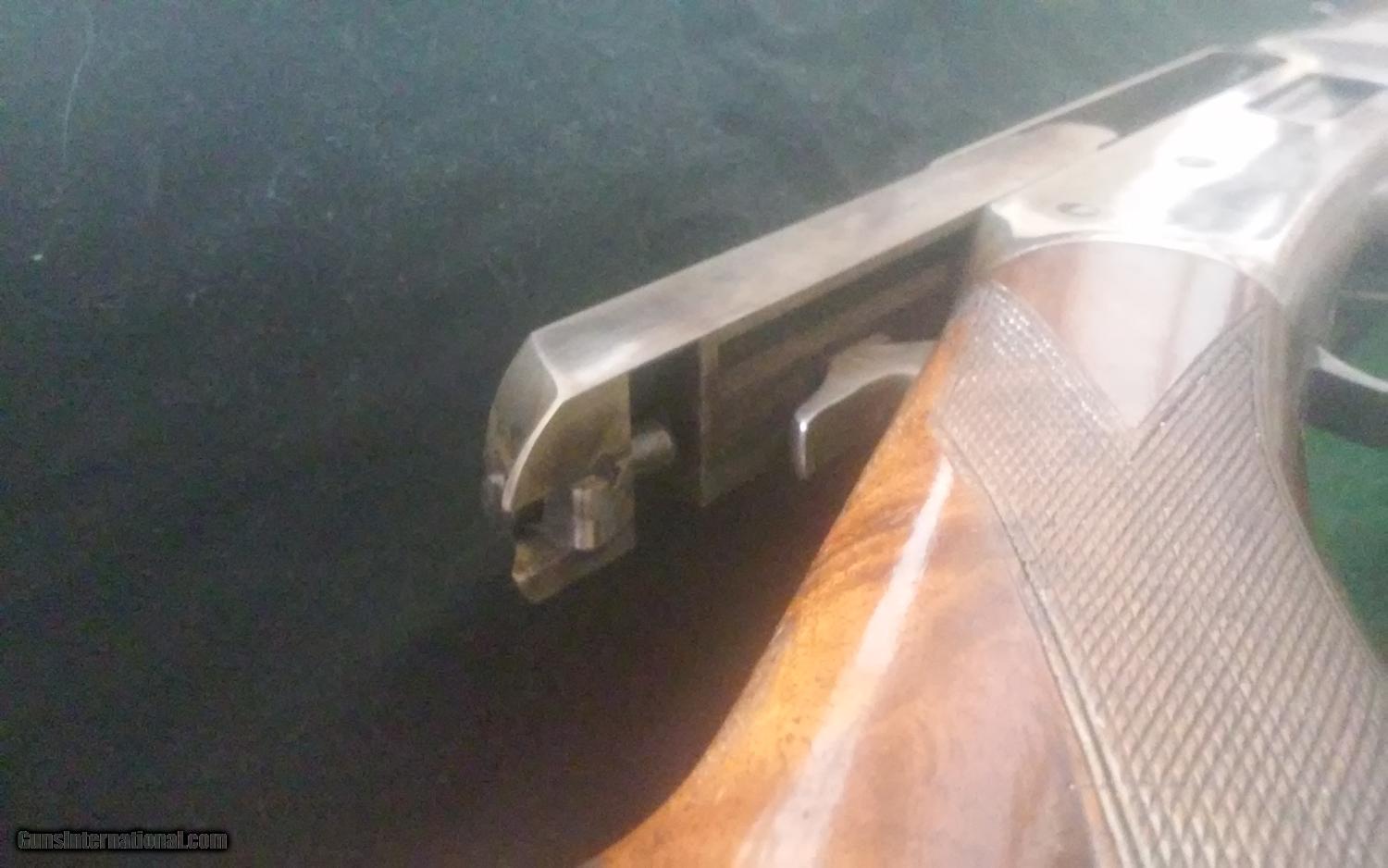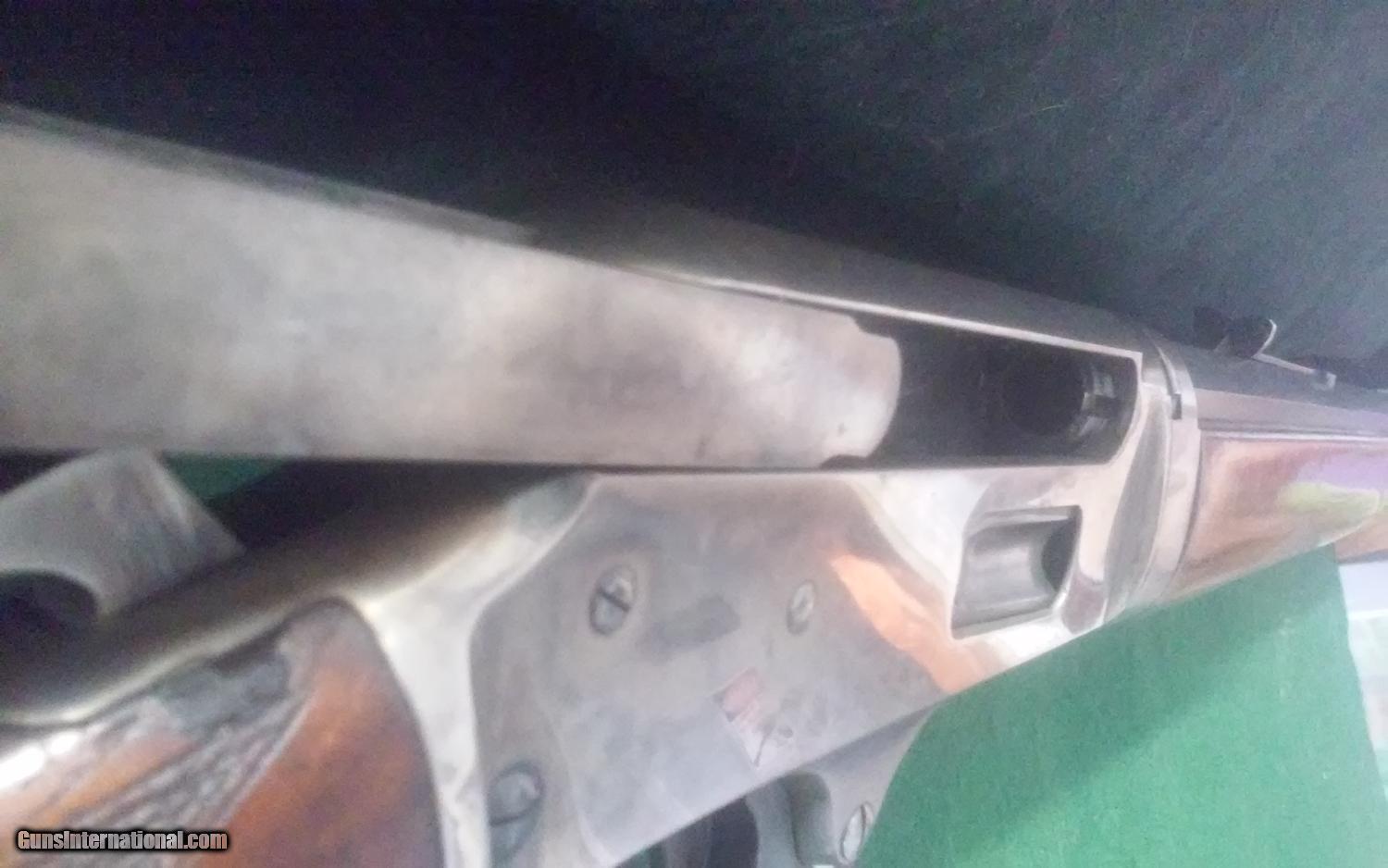Description: Very rare Take-down model with an equally rare nickle case hardened receiver. 26" full length octagonal barrel with full length magazine tube. Finish on stock and foregrip is original and intact. Checkering is still sharp and well defined. Blueing is in 90%+ condition. Fantastic condition special order manufactured in 1898. The only thing lacking on this beautiful old rifle is factory engraving. Chambered in 40-65 Winchester this firearm is mechanically sound and perfectly functional. Small amounts of pitting can be found on end of the barrel near the magazine tube , on the crescent buttstock plate and on the barrel near the receiver. The bore and rifling are in impressive condition exhibiting strong , sharp and well defined rifling. This is one of the finest pre-1900 lever actions to be found on the market today , being possessed of many of the most sought after collectible features. SOLD Antique: Yes Manufacturer: Marlin Model: Model 1895 Take-down Serial Number: 167169 Caliber Info: 40-65 Condition: overall 90%+ Metal Condition: 90%+ Wood Condition: 90%+ Bore Condition: Strong , sharp well defined rifling. Barrel Type: 26" full length octagonal. Action: Lever action Manufacture Date: 1898 Item Location: Paw Paw , MI |