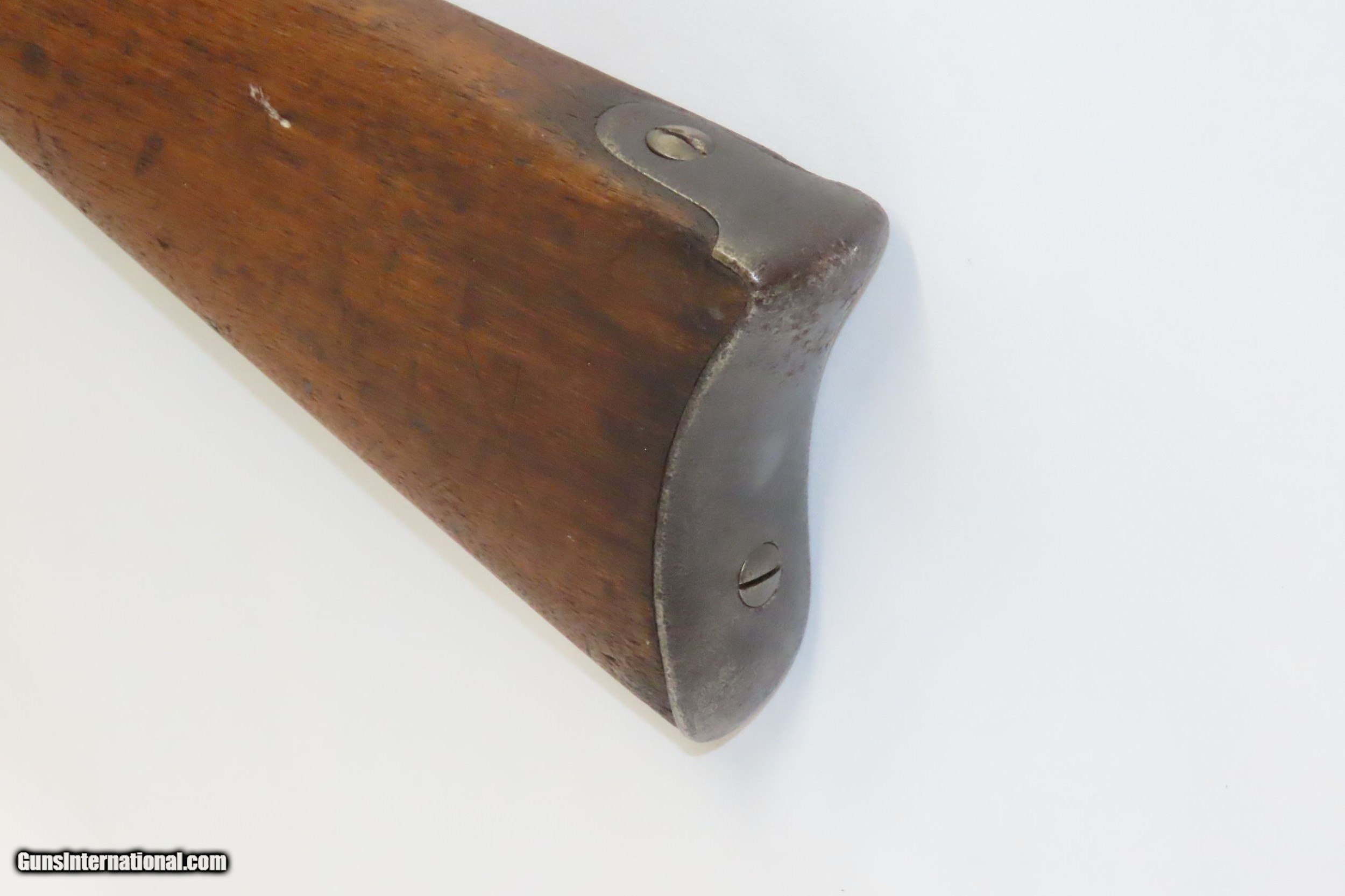 Description: MERIDEN Mfg. Company MILLER CONVERSION Model 1861 .58 Caliber RIMFIRE Rifle U.S. SPRINGFIELD Percussion Rifle-Musket Here we present a Meriden Manufacturing Company Miller Conversion of a Springfield Model 1861 to a .58 Caliber Rimfire Breech Loading Rifle, made circa 1864 and converted circa 1865-67 in Meriden, Connecticut. Only about 2,000 are known to have been converted by Meriden, with the bulk of those being converted from Parkers, Snow & Company muskets. Production of the U.S. Model 1861/63 rifle musket was in excess of 1 million during the American Civil War between Springfield Armory, Harpers Ferry and about 20 different contractors. It represented a streamlined and, in some ways, technologically advanced musket capable of accurate fire when compared to previous generations of American muskets. Yet it was adopted during a period of rapid innovation that would make it obsolescent before the war drew to a close. Many conversions appeared toward the end seeking to take advantage of metallic cartridge technology for a faster rate of fire. Such examples were the Snider, Joslyn, Needham, Peabody, and the most successful, the Allin, and this was not even all of them. This conversion, undertaken by the Meriden Manufacturing Company of Connecticut, produced the “Miller Model 1861”. The conversion was named for the patent holders William H. and George W. Miller. In the system, a release catch found along the top of the barrel was used to break the action open along a hinge, exposing the breech for inserting a cartridge. As mentioned above, the patented arrangement was featured in Parkers, Snow & Company Model 1861 rifles, with this being a scarce example of one converted from a Springfield Model 1861 musket. The lock is a modern replacement stamped with a large spread-winged eagle over “U.S.” and marked “SPRINGFIELD” in front of the hammer. The date of “1864” is stamped back of the hammer. Robust action. Dim bore with worn rifling. The walnut stock has a stable crack on the right side ahead of the lock and is otherwise solid. Own the original! This is a legitimate antique and not a reproduction. Barrel is 39 inches. Caliber: .58 Rimfire Overall condition as seen in photos. Very Fast. Very Safe. FREE SHIPPING WORLDWIDE. Delivered directly to your door by express mail! Guaranteed AUTHENTIC & Includes CERTIFICATE OF AUTHENTICITY. ancestryguns $1300 #215300 SOLD Antique: Yes |