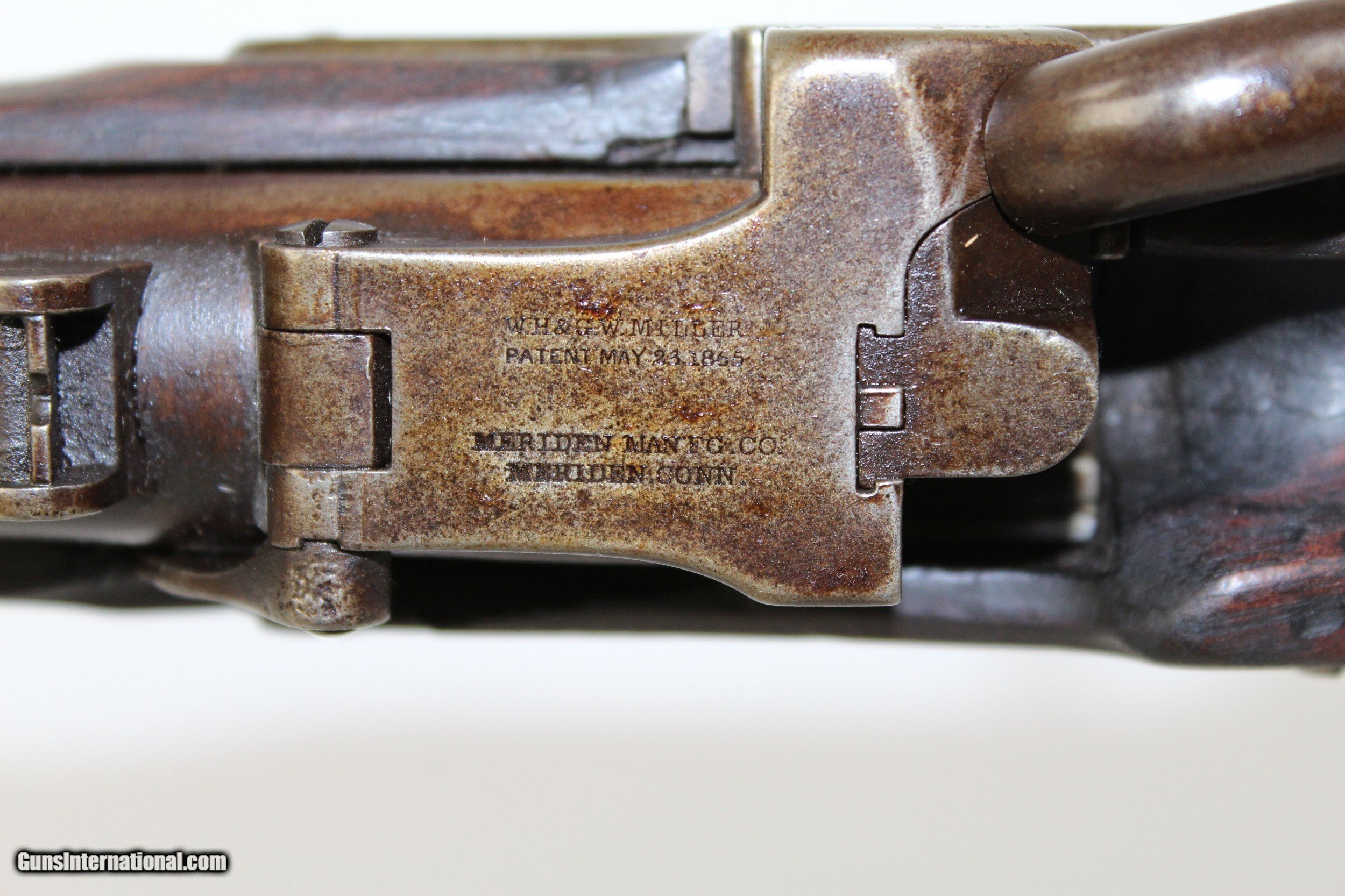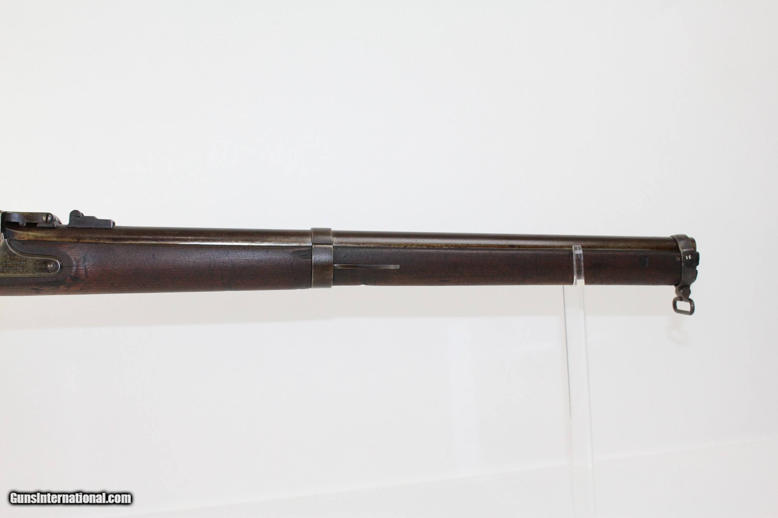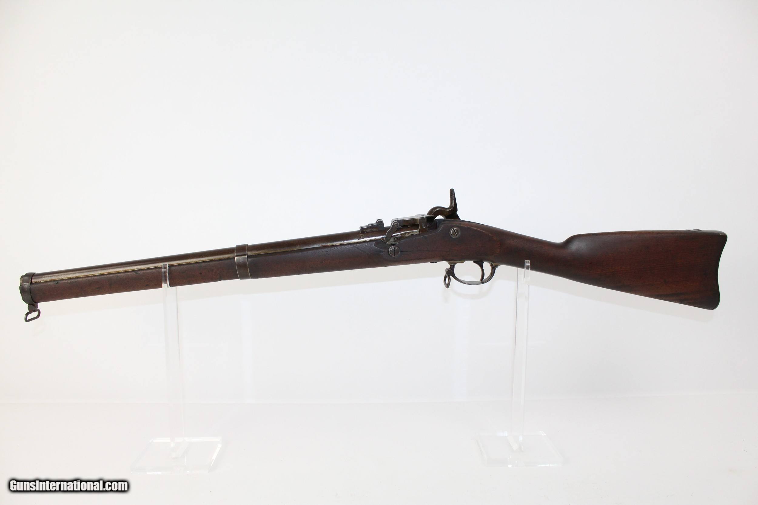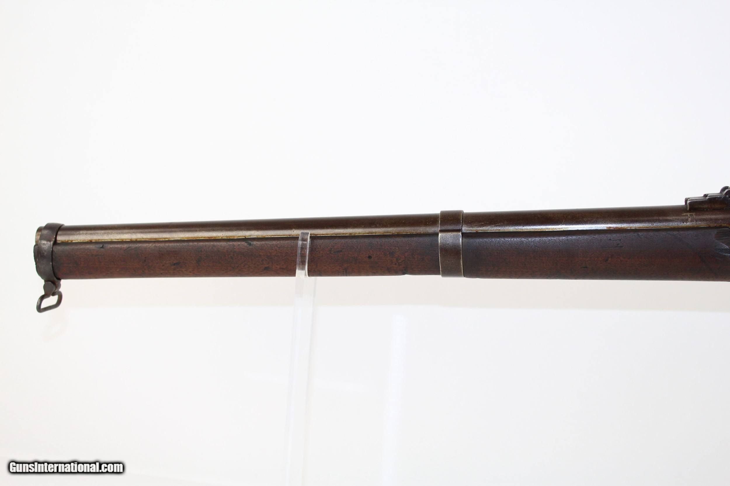 Description: Miller M1861 .58 Caliber Rimfire Conversion Rifle Breech Loading Conversion Dated 1868 Here we present a Miller Model 1861 .58 Caliber Rimfire Breech Loading Conversion Rifle, circa 1863 in Meridan, Connecticut. The Springfield M1861 rifle musket was produced in over 1 million examples during and after the American Civil War (1861-1865) and used by both sides of the conflict. It’s muzzle loading arrangement made it obsolete in an age when the breech-loading system was growing into standardized usage. This led to some manufacturers converting the famous long gun into breech-loading forms by reworking the original flintlock system in play. One such conversion, undertaken by the Meriden Manufacturing Company of Connecticut, produced the “Miller Model 1861”. The gun carried the surname of “conversion block” patent holders William H. and George W. Miller. In the system, a release catch found along the top of the barrel was used to brake the action open along a hinge, exposing the breech for inserting a cartridge. The patented arrangement was also featured in Parker’s Snow and Company Model 1861 rifles. The lock is marked “PARKERS’ SNOW & CO./MERIDEN, CONN.”. The lock is also dated “1868”. The overall condition is good. The metal surfaces are dark with age. The makings are clear and legible. The bore is dark. The stocks are in good shape. The action on this rifle is strong. Own the original! This is a legitimate antique and not a reproduction. Barrel is a 21 inches. Caliber: .58 RF Overall condition as seen in photos. Very Fast. Very Safe. FREE SHIPPING WORLDWIDE. Delivered directly to your door by express mail! Guaranteed AUTHENTIC & Includes CERTIFICATE OF AUTHENTICITY. ancestryguns $1200 #6443 SOLD Antique: Yes |