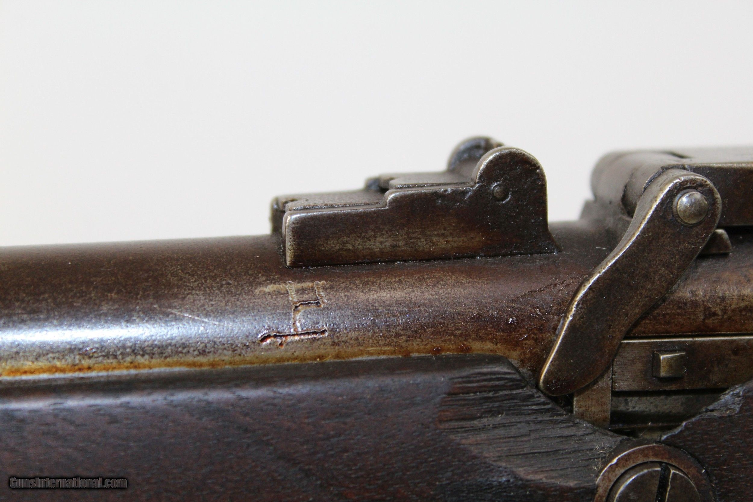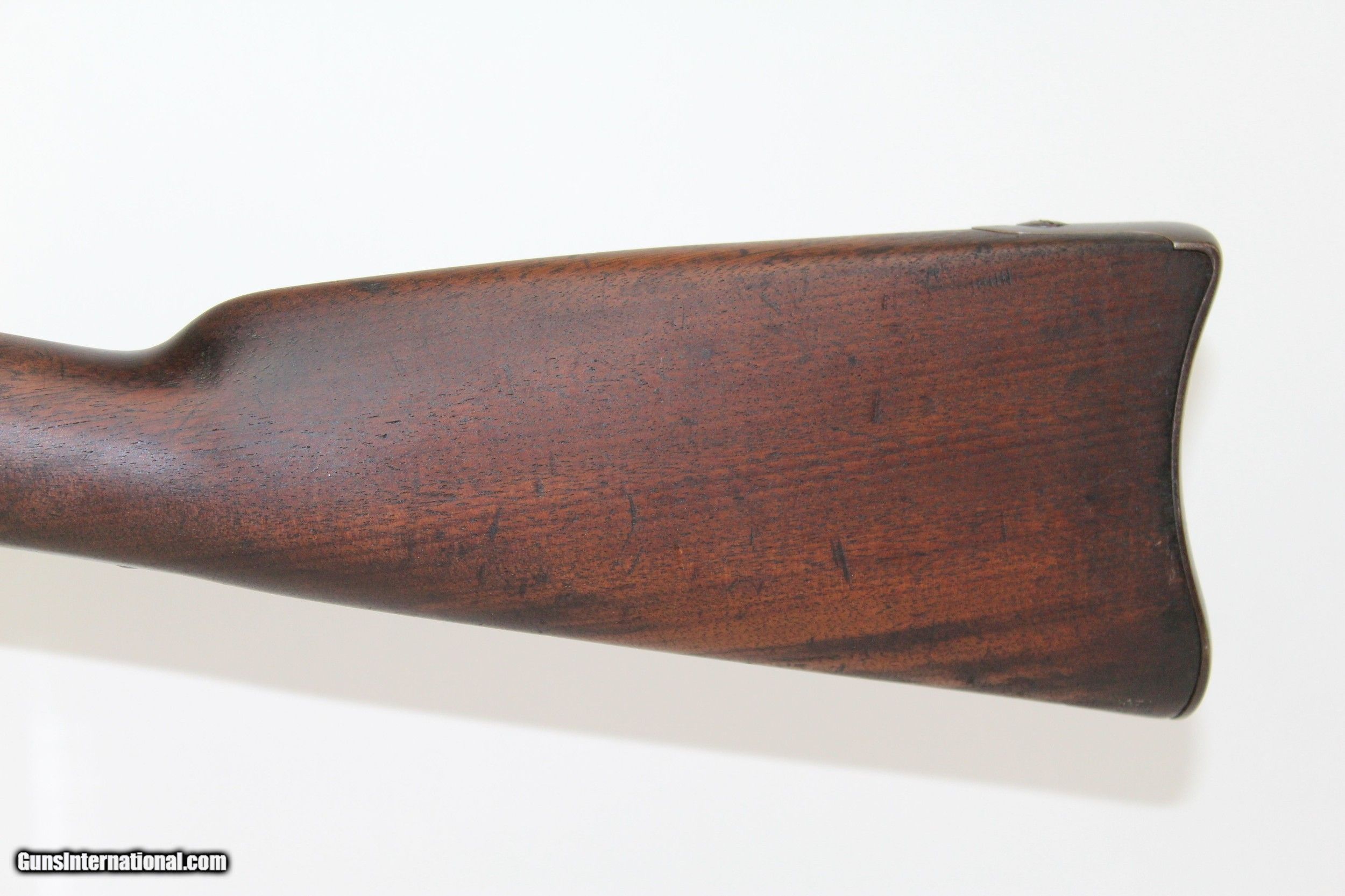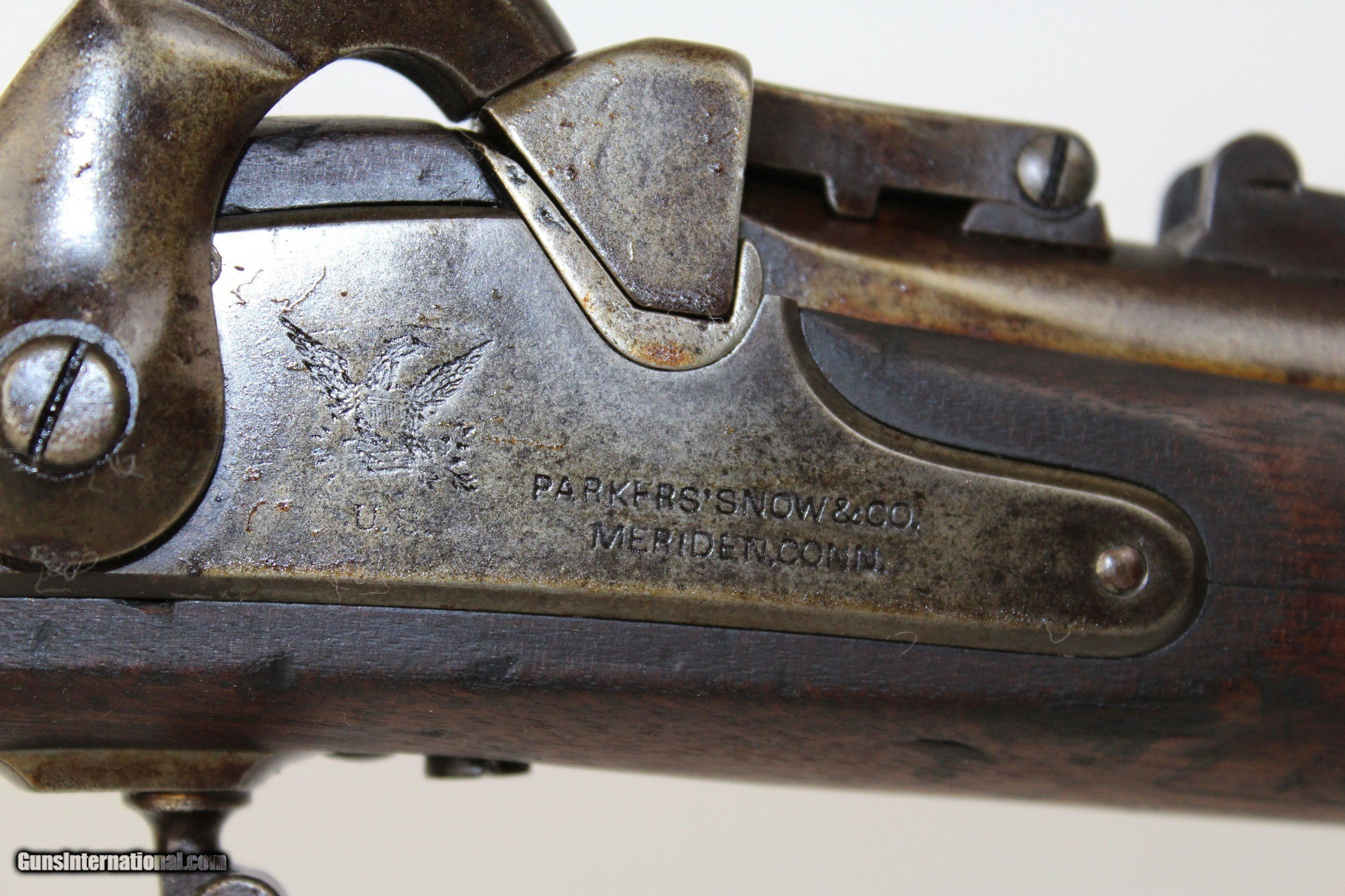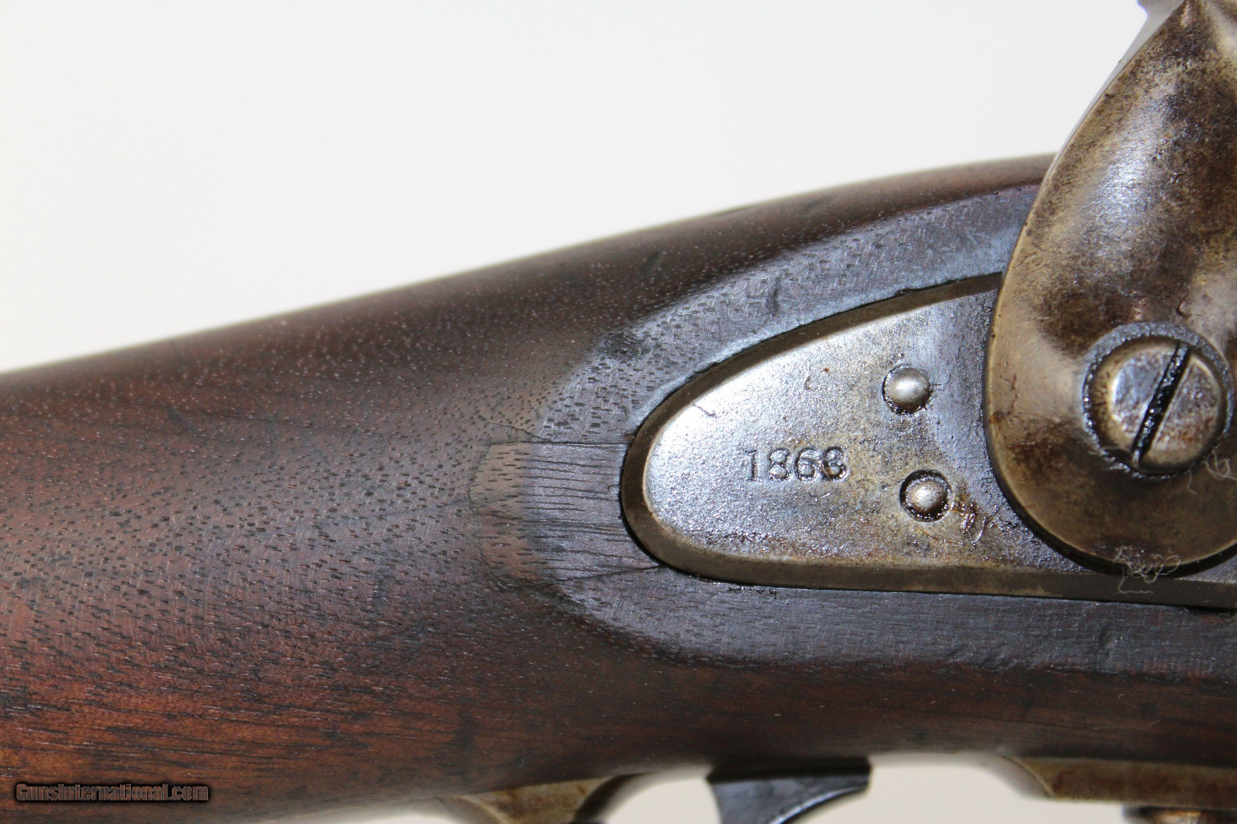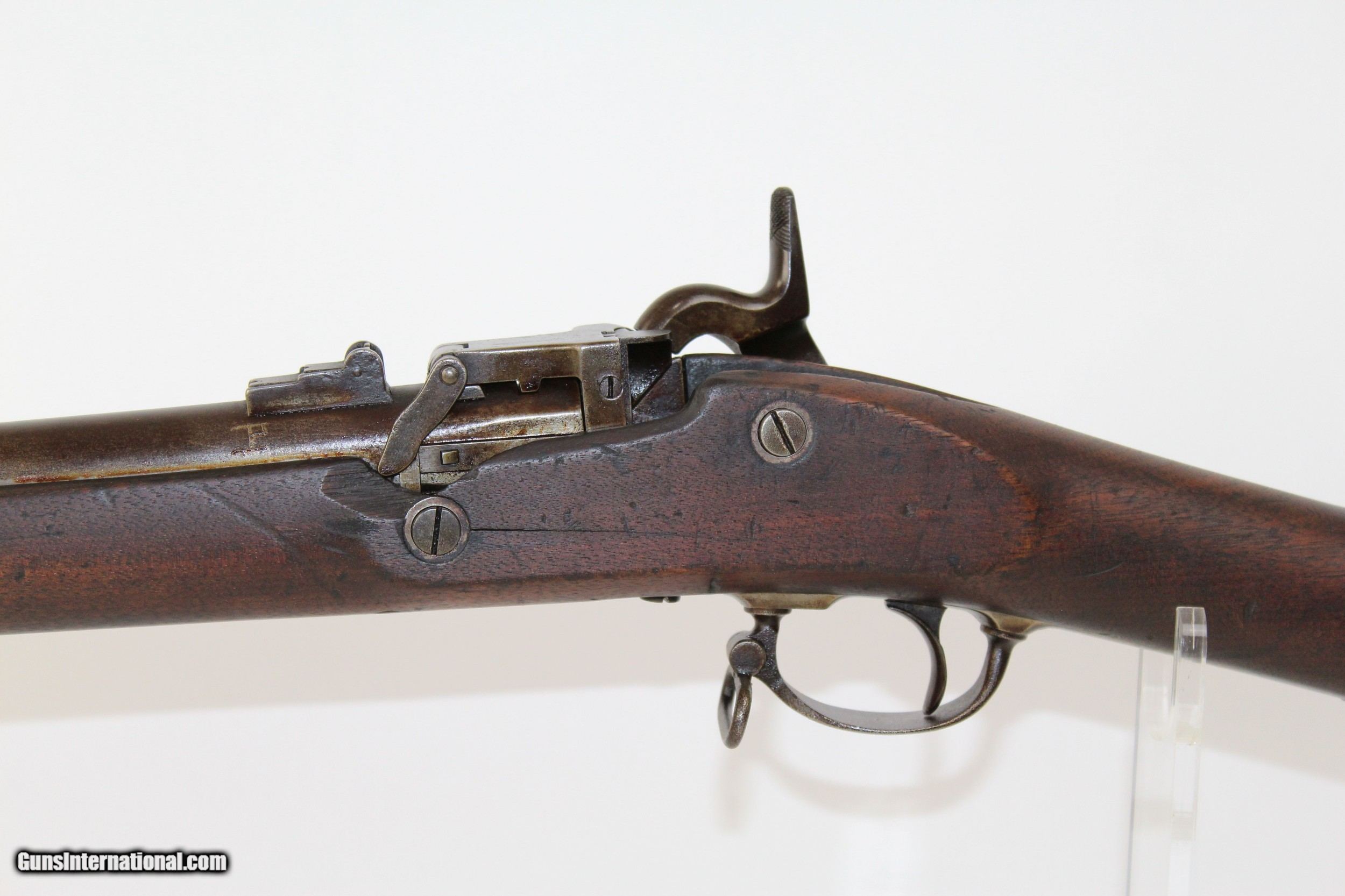 Description: Miller M1861 .58 Caliber Rimfire Conversion Rifle Breech Loading Conversion Dated 1868 Here we present a Miller Model 1861 .58 Caliber Rimfire Breech Loading Conversion Rifle, circa 1863 in Meridan, Connecticut. The Springfield M1861 rifle musket was produced in over 1 million examples during and after the American Civil War (1861-1865) and used by both sides of the conflict. It’s muzzle loading arrangement made it obsolete in an age when the breech-loading system was growing into standardized usage. This led to some manufacturers converting the famous long gun into breech-loading forms by reworking the original flintlock system in play. One such conversion, undertaken by the Meriden Manufacturing Company of Connecticut, produced the “Miller Model 1861”. The gun carried the surname of “conversion block” patent holders William H. and George W. Miller. In the system, a release catch found along the top of the barrel was used to brake the action open along a hinge, exposing the breech for inserting a cartridge. The patented arrangement was also featured in Parker’s Snow and Company Model 1861 rifles. The lock is marked “PARKERS’ SNOW & CO./MERIDEN, CONN.”. The lock is also dated “1868”. The overall condition is good. The metal surfaces are dark with age. The makings are clear and legible. The bore is dark. The stocks are in good shape. The action on this rifle is strong. Own the original! This is a legitimate antique and not a reproduction. Barrel is a 21 inches. Caliber: .58 RF Overall condition as seen in photos. Very Fast. Very Safe. FREE SHIPPING WORLDWIDE. Delivered directly to your door by express mail! Guaranteed AUTHENTIC & Includes CERTIFICATE OF AUTHENTICITY. ancestryguns $1200 #6443 SOLD Antique: Yes |