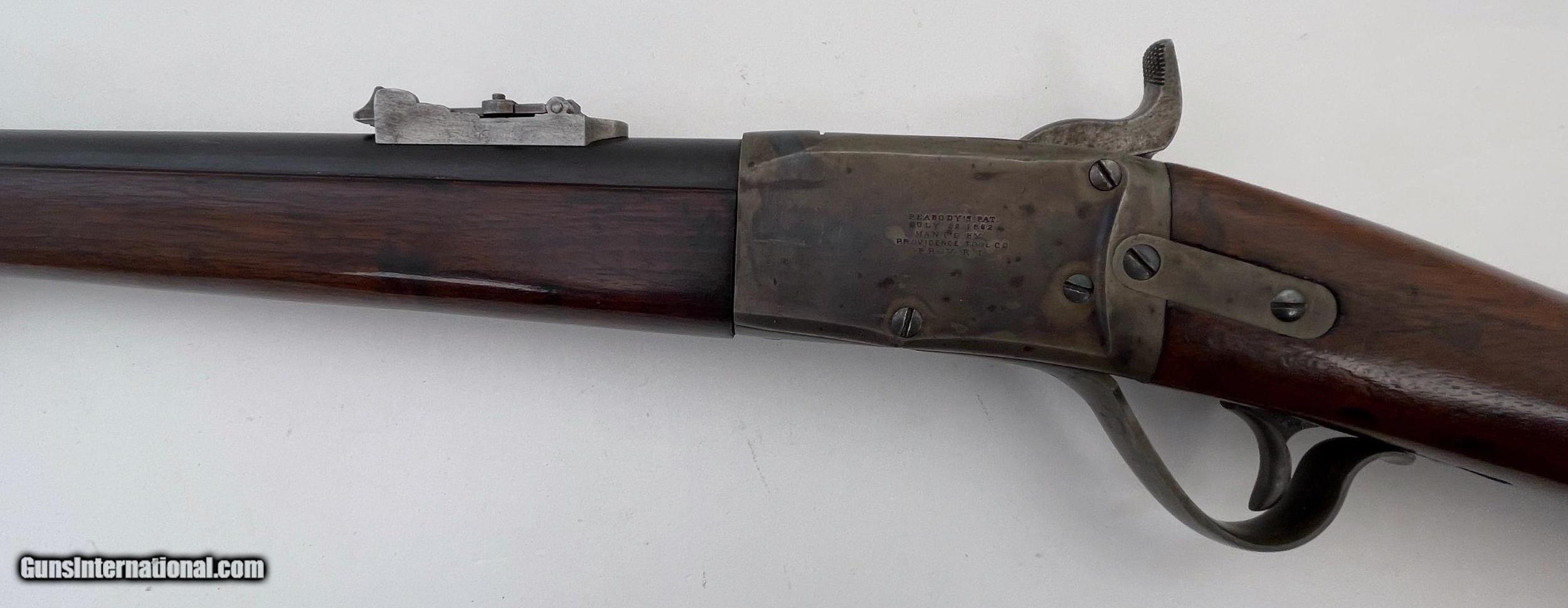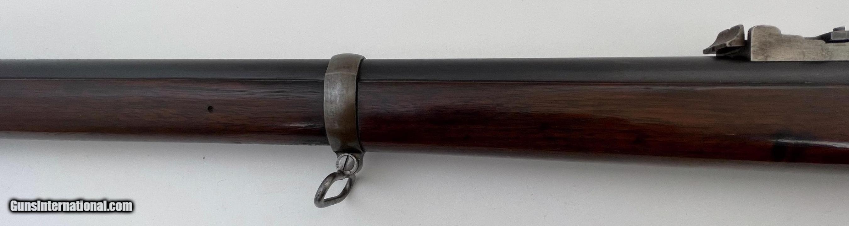Description: Caliber is .43 Spanish. Brite bore and perfect action. Overall length 51.8" Barrel 33" Overall excellent-- gun retains most of the original blue and case colors SOLD Antique: Yes Manufacturer: Providence Tool Co Model: Spanish Bore: Bright |
