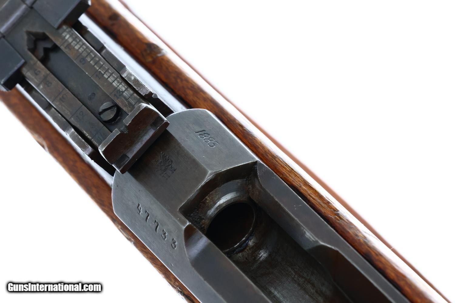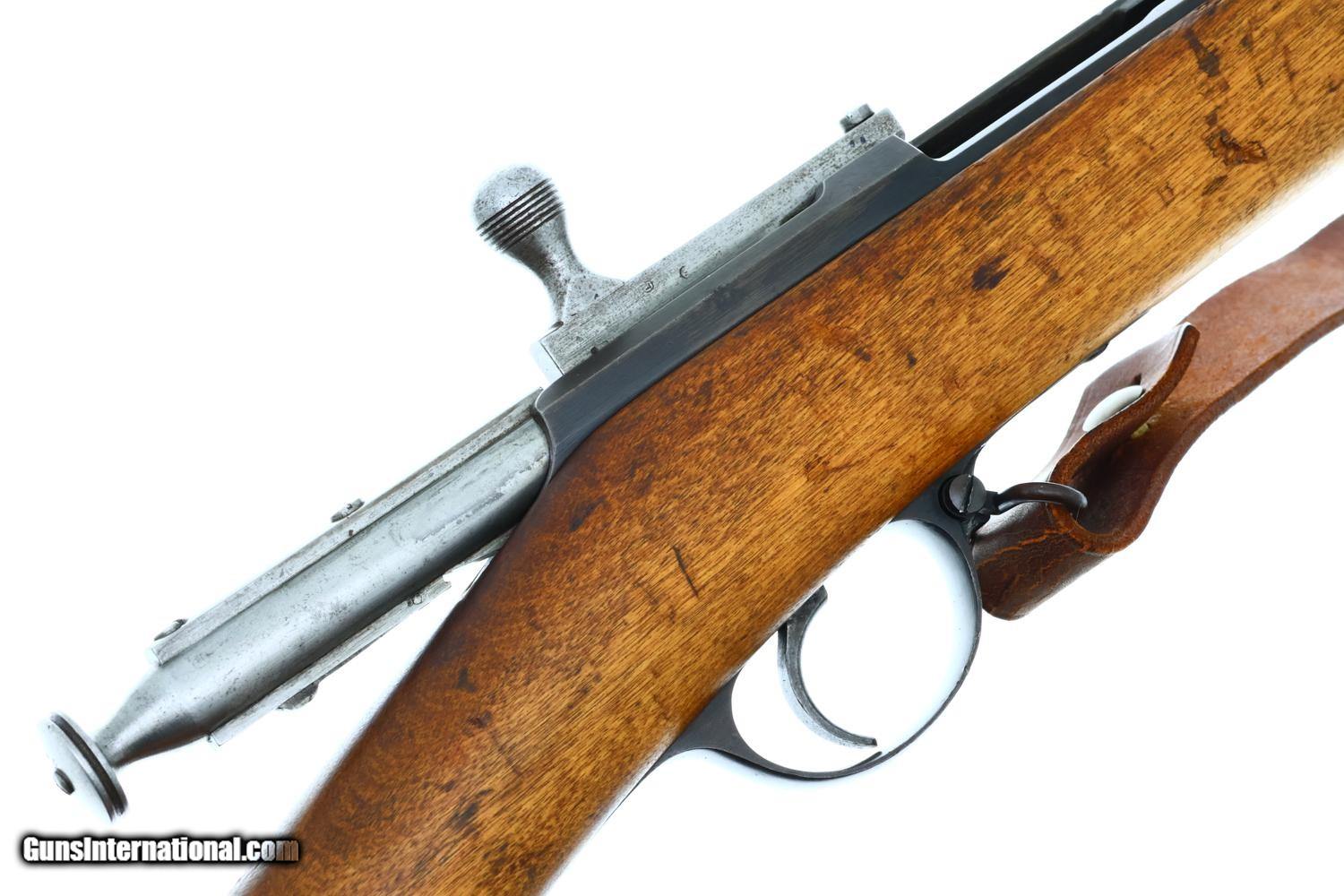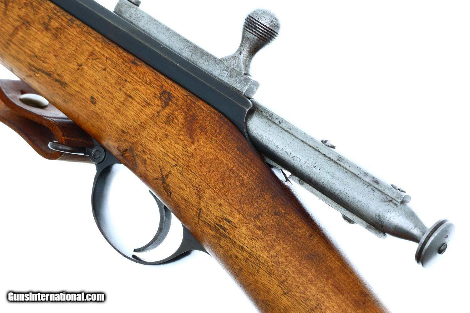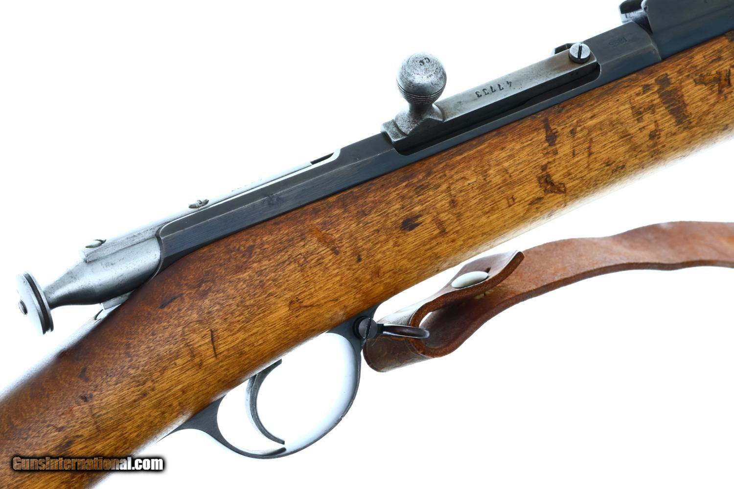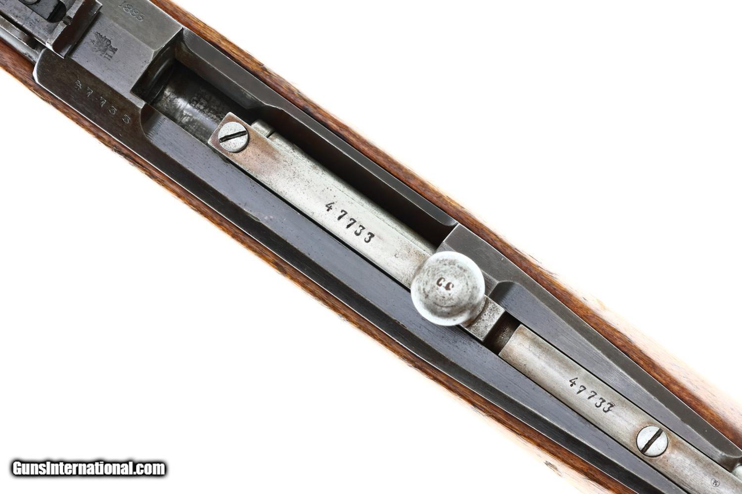 VG original finish with the blue on the barrel, receiver, and trigger guard with handling marks and toning as one would expect from a military service rifle that is now about 150 years old. Comparable considerations apply to the in-the-white bolt with staining, the cleaning rod with patches of oxidation. Stock with areas of cleaning and light sanding, still with numerous handling marks and gouges as carefully photographed. Surprisingly bright, near mirror bore. Correct manual mechanics.
