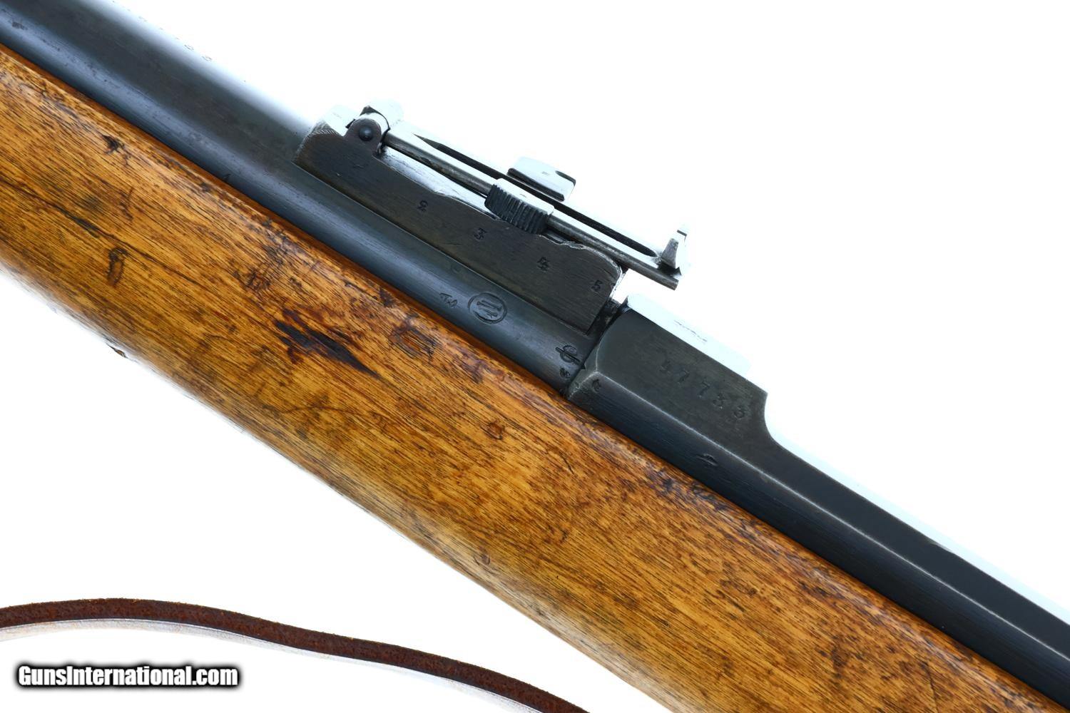 Description: Synopsis: The Berdan II rifle made by the Ishvesk Arsenal, serving the Russian military from 1870-1895, was the first Russian rifle to shoot a metallic cartridge. This all-matching example with a near-mirror bore was made in 1883. ANTIQUE! Description: Standard configuration Izhevsk Berdan II rifle made 1870-1895, production estimated at nearly 3 million, with 33-inch barrel in 10.75 X 58 R caliber, serial number 47733, single-shot bolt-action military rifle with traditional Russian Imperial markings. Fitted with blade front sight and battle/ladder rear sight with graduated markings for range adjustment. Receiver is dated "1883" and serialed "47733", the serial repeated on the barrel in association with Cyrillic text, all components of the bolt, and on the metal buttplate. Imperial Russian eagle / HK on the top receiver flat. Full-length, military configuration wooden stock with trigger guard, sling swivel attachments, and metal buttplate. Complete with matching cleaning rod and an unmarked sling. The Berdan rifle served as the service rifle of the Imperial Russian Army from 1870 to 1891, when it was replaced by the Mosin–Nagant rifle. Condition: VG original finish with the blue on the barrel, receiver, and trigger guard with handling marks and toning as one would expect from a military service rifle that is now about 150 years old. Comparable considerations apply to the in-the-white bolt with staining, the cleaning rod with patches of oxidation. Stock with areas of cleaning and light sanding, still with numerous handling marks and gouges as carefully photographed. Surprisingly bright, near mirror bore. Correct manual mechanics. Manufacturer: Izhevsk Model: Berdan II Bolt Action Rifle Serial Number: 47733 Caliber Info: 10.75 X 58 R Condition: VG Price: $2,395.00 Contact Seller |