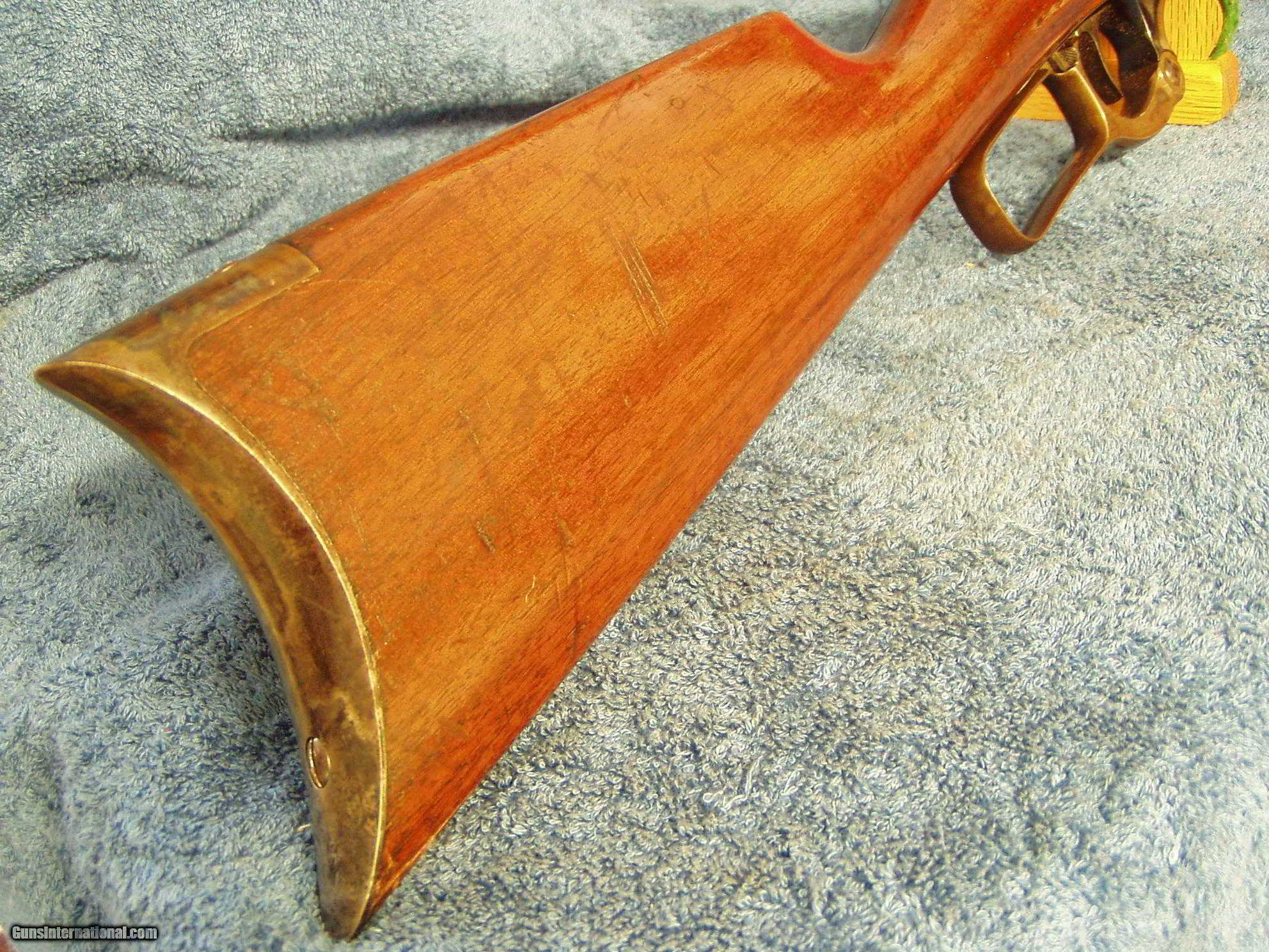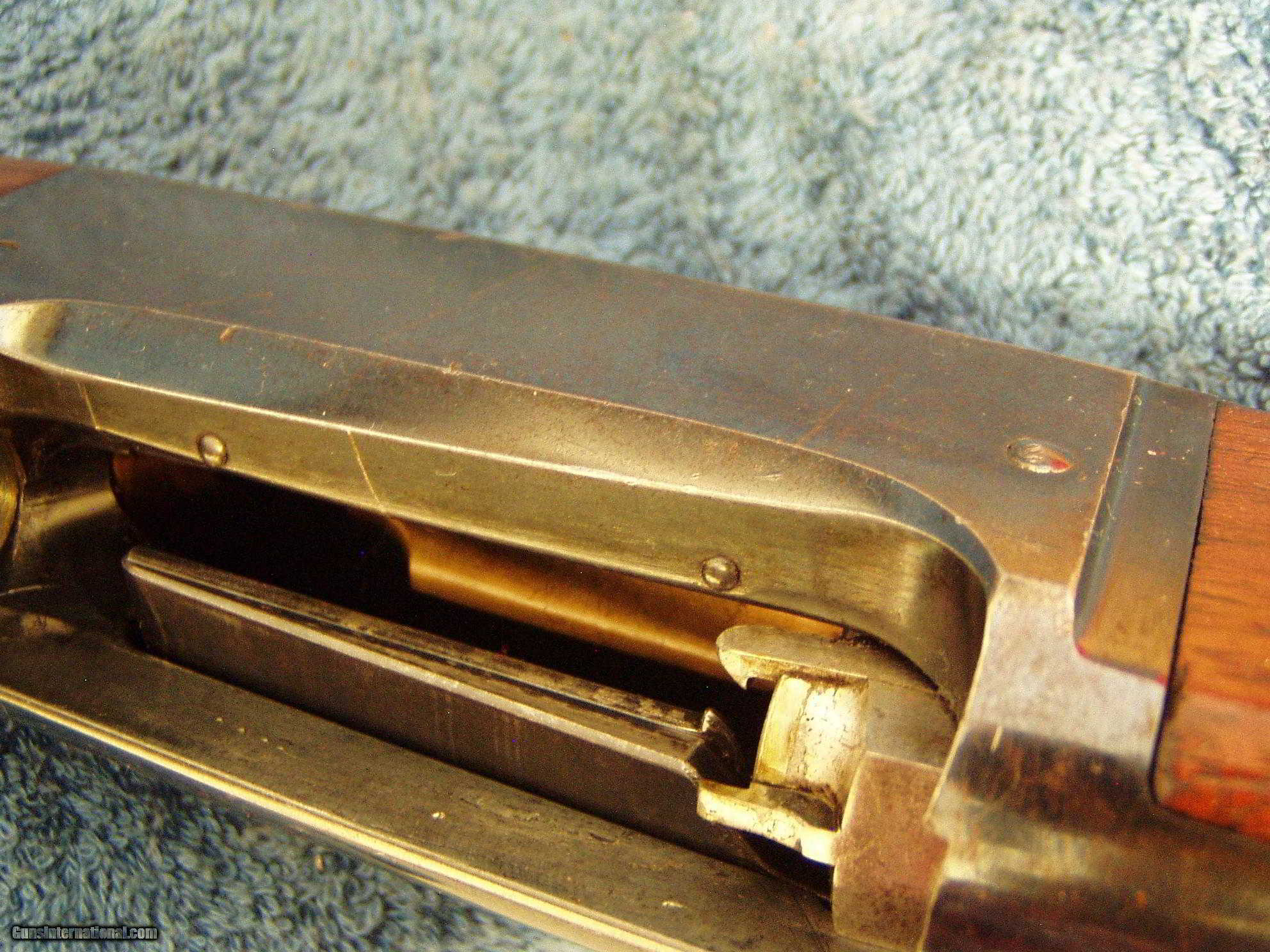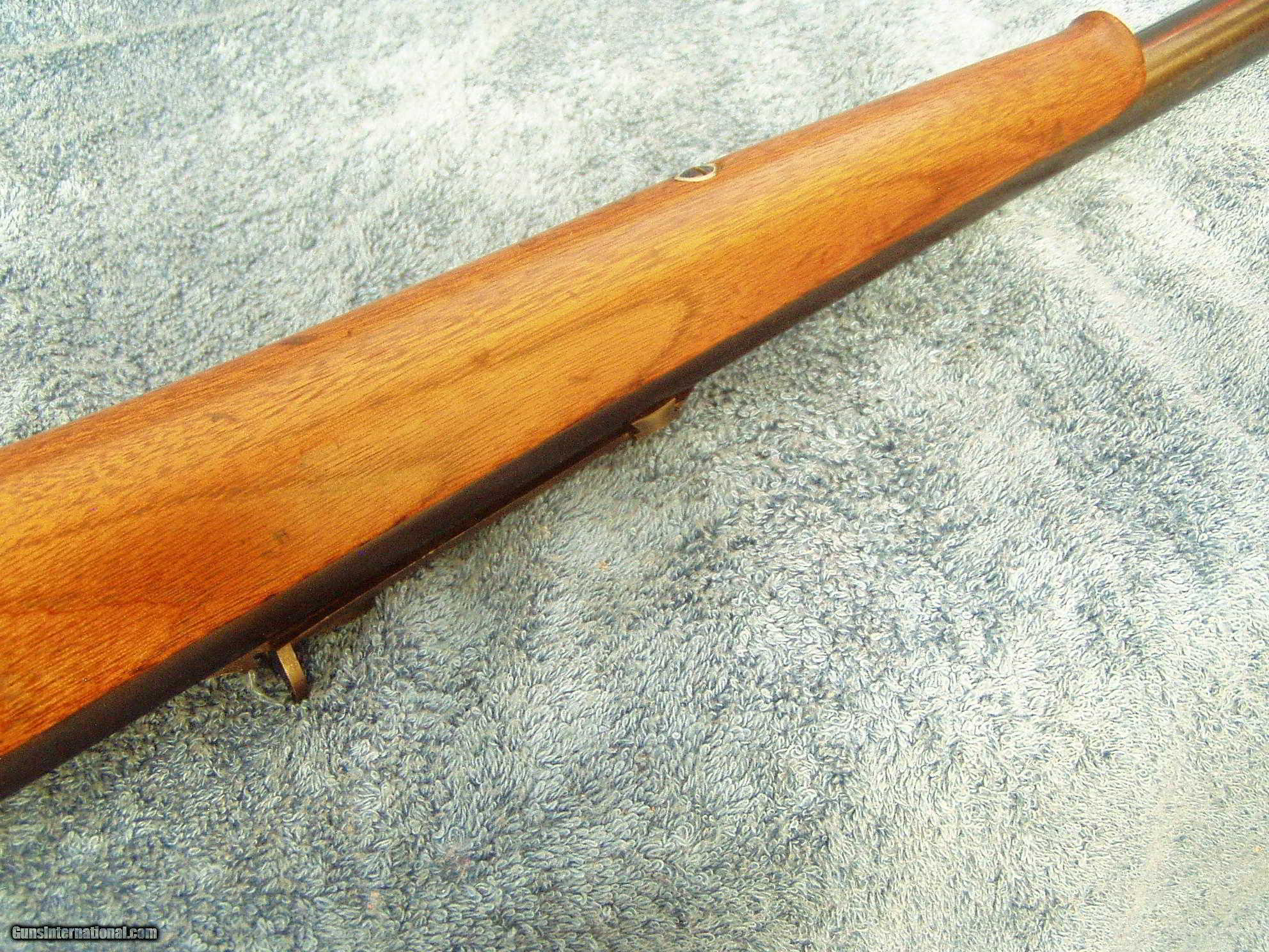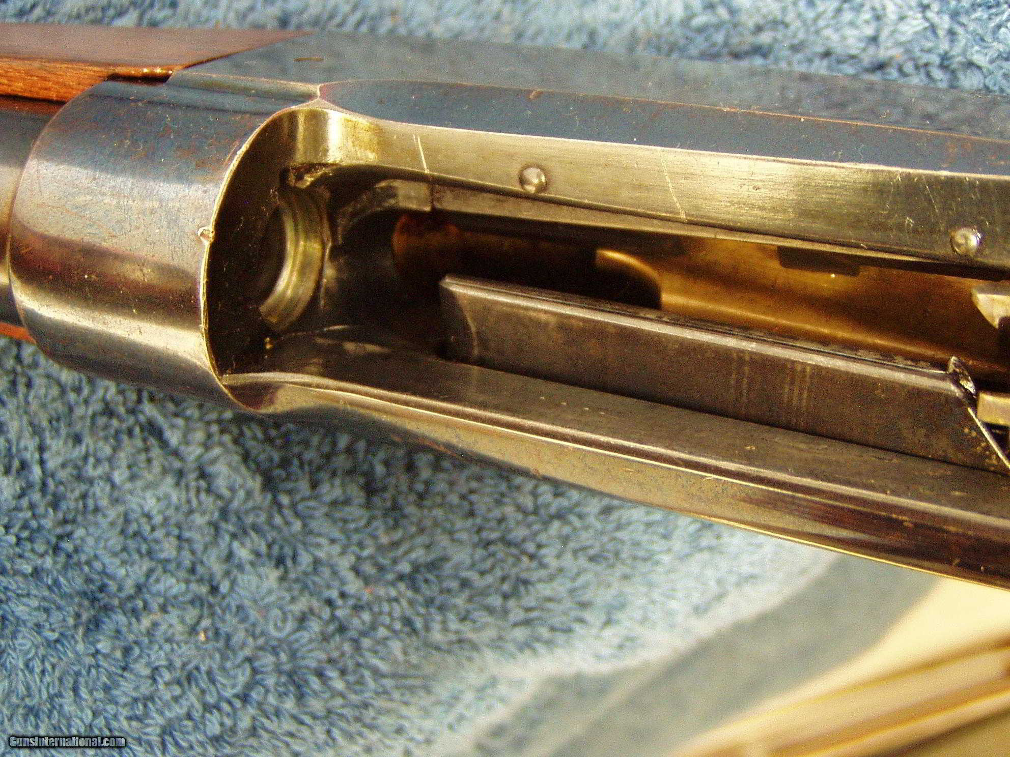 Description: This Savage 1895 is in excellent condotion. Has a 26" round barrel with an excellent bore. Action is smooth and it locks up tight. Original "Rocky Mountain", front and rear sights.The metal retains is "Fire" Blue" finish of approx. 95%+. Lots of case color remains on lever and buttplate. Serial number is #4378 and is found on the bottom of the reciever, buttstock, buttplate, forearm and barrel. Also has the "JM" in oval Marlin Mark. Appears this was sent back to factory in 1920 for unknown work. Wood still has lots of original varnish. Does show some light handling marks. and well done small wood repairs. Comes with Historical Letter. Buyer pays $35.00 shipping to lower 48 states. I accept USPS Money Orders or Bank Cashier's Check. Will accept personal check, with shipping hold. I can send more photos. ANTIQUE. SOLD Antique: Yes Manufacturer: SAVAGE REPEATING ARMS CORPORATION Model: Model 1895 Serial Number: #4378 Caliber Info: .303 savage Bore: 26 Ejectors: lever action Condition: excellent Metal Condition: excellent Wood Condition: solid, very good Bore Condition: excellent Barrel Type: round Action: Lever Action Triggers: one Stock: Wood Fore End: wood Butt Pad: steel Finish: Blued Weight: 12.7 lbs. Sights: open Manufacture Date: 1897 |