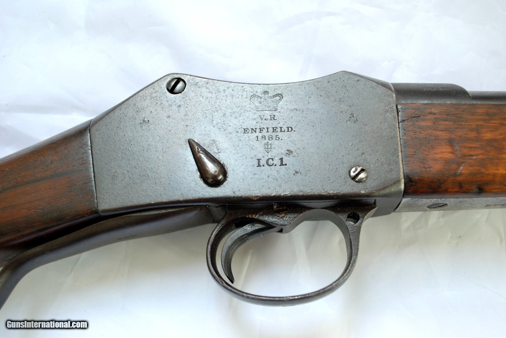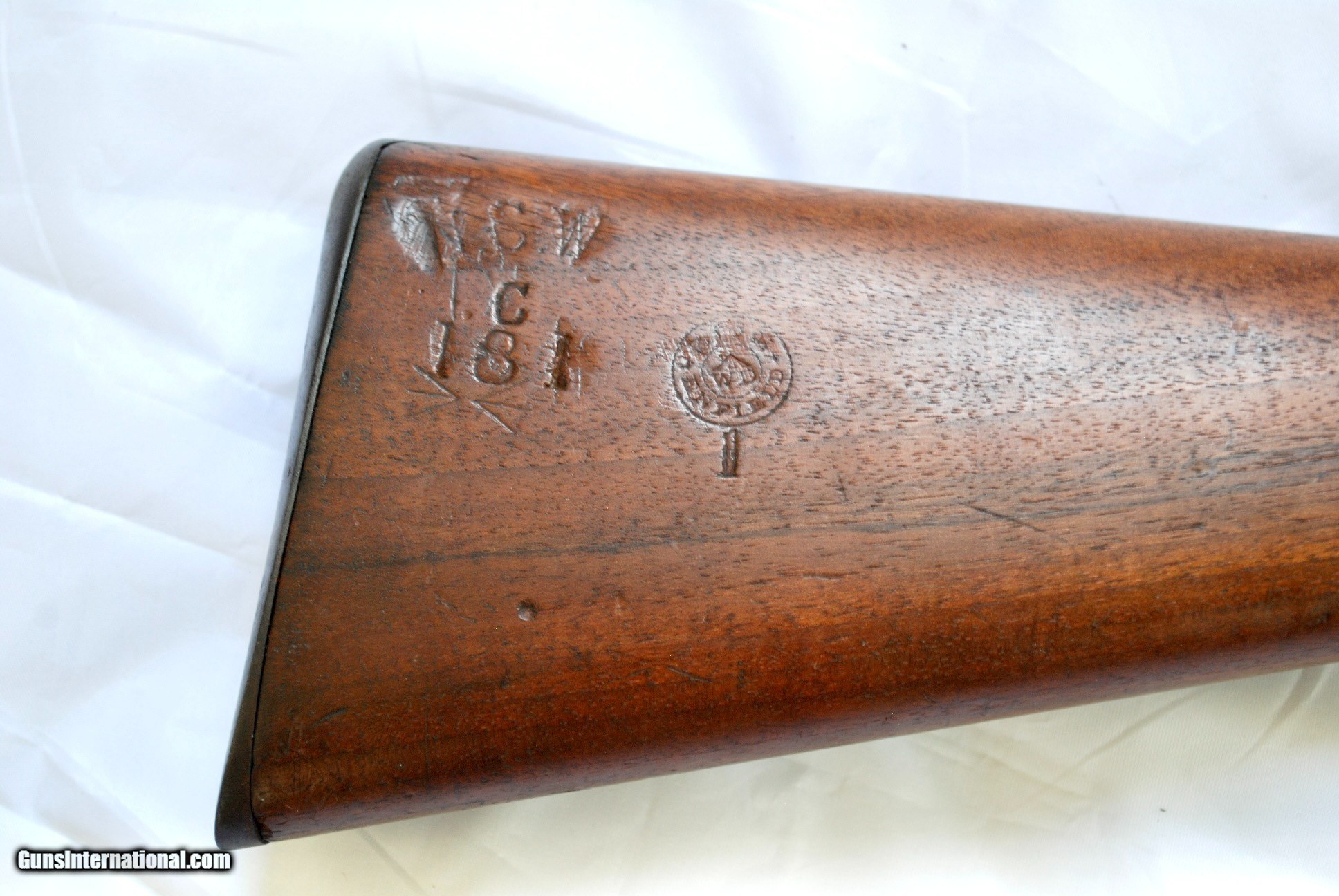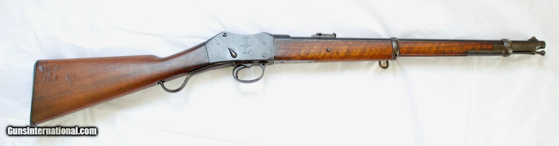 Description: This gun has about 70% original blue remaning which is unheard of for the majority of Martini Henry rifles, especially carbines that are much harder to find in any condition. The rifle was issued in New South Wales( Australia), hence the marking on the butt stock. There is a crisp Enfield cartouch in the butt stock, fore end feautures a nice tiger stripe pattern, action is crisp and tight, bore is shiony with strong rifling. No license needed except NJ residents. Visa/MC add 3%. Shipping in the Cont US is $ 50, will ship international where legal. Thanks, check my other s. SOLD Antique: Yes |