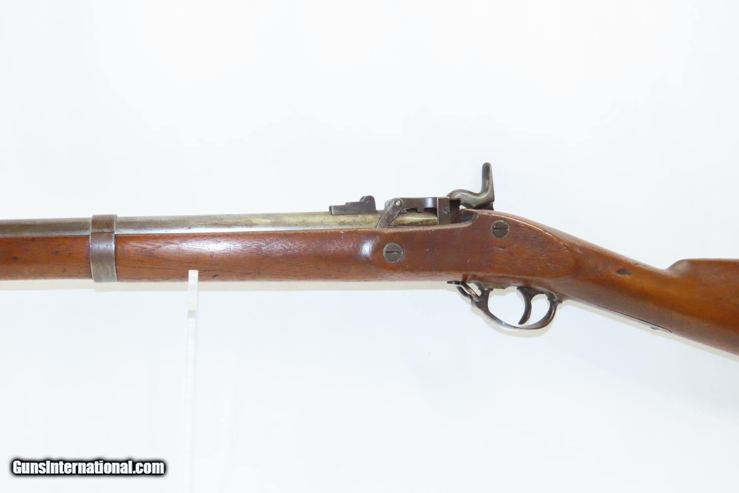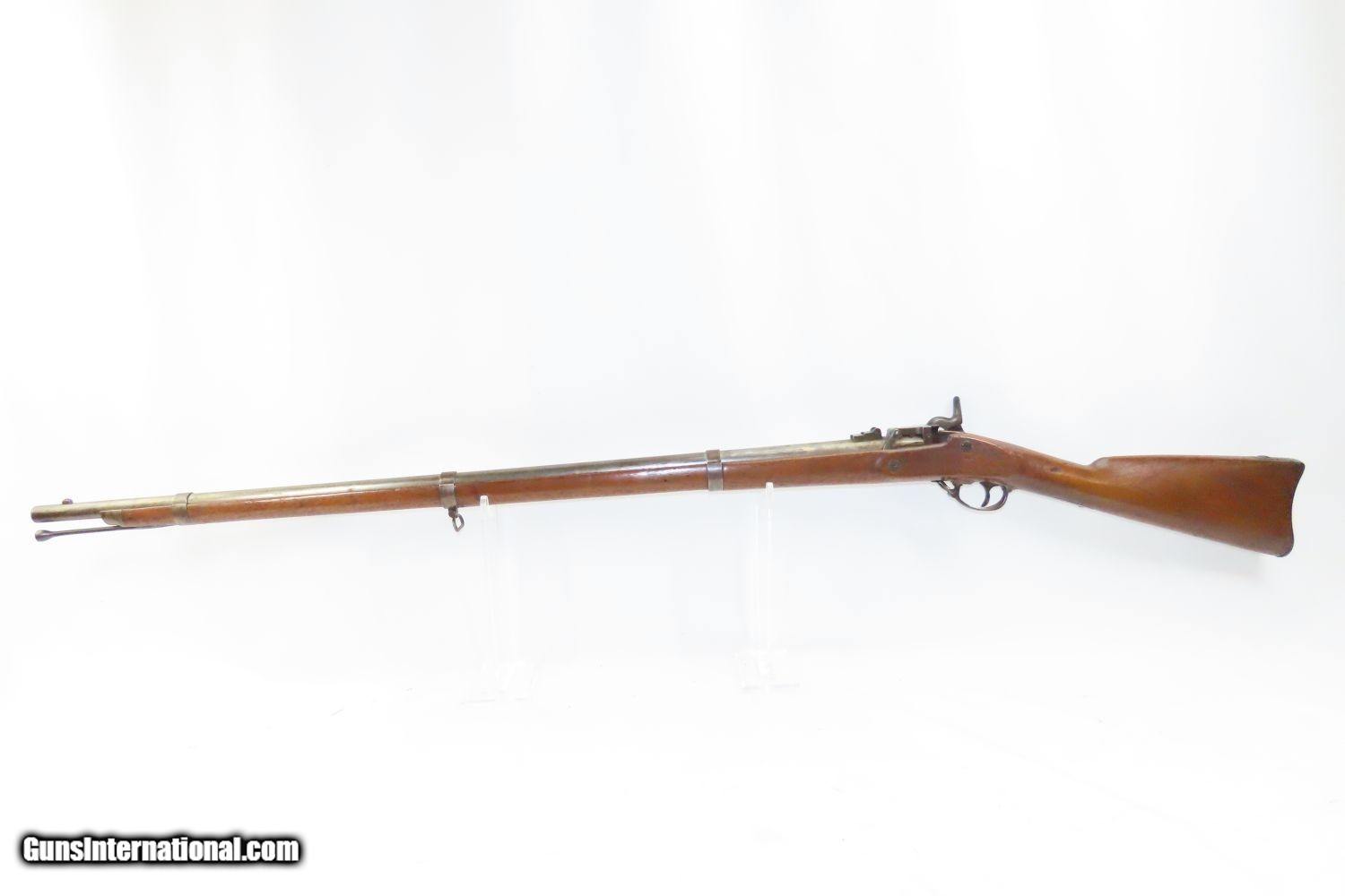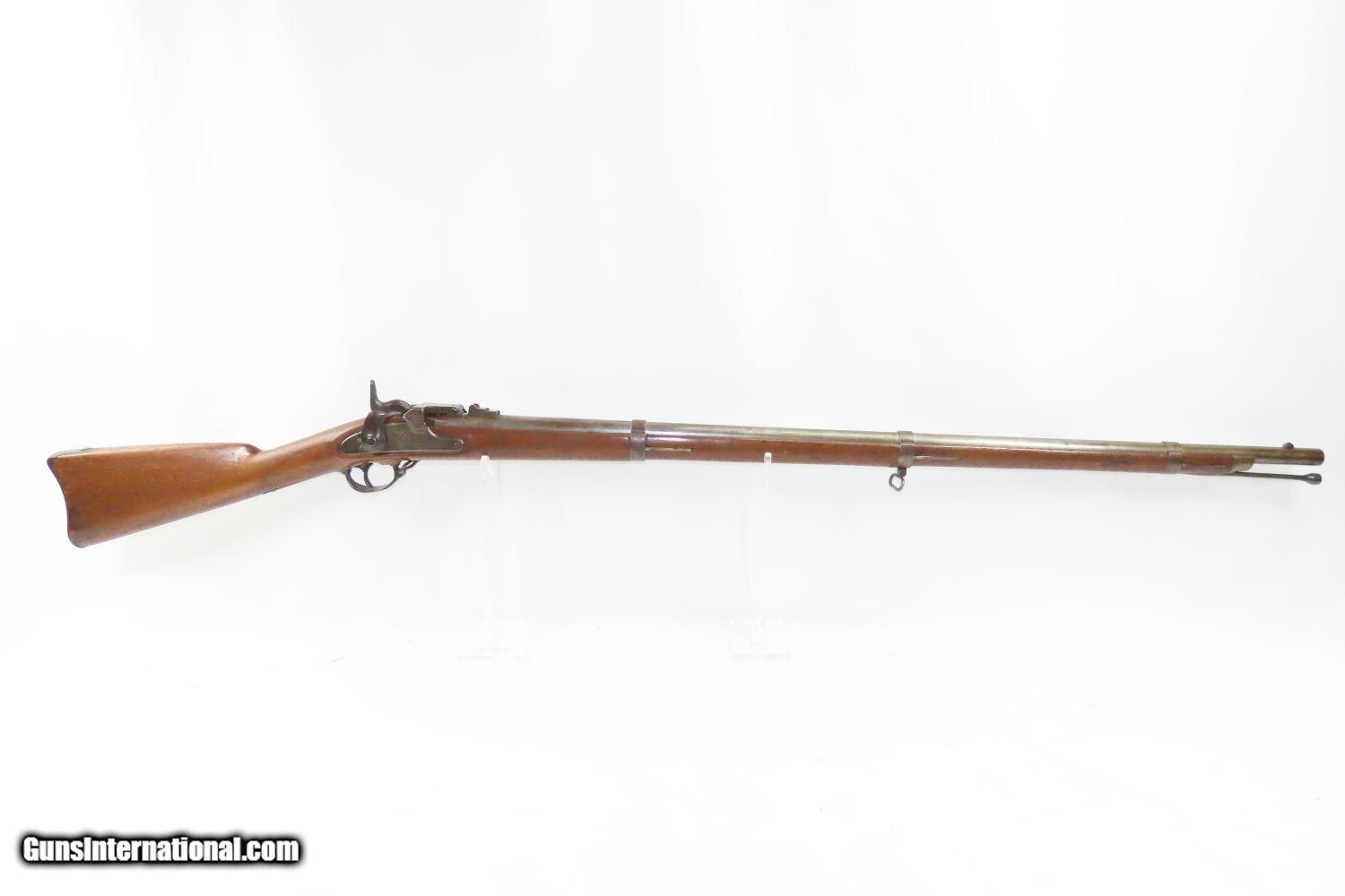 Description: Scarce MILLER CONVERSION MERIDEN Mfg. Company Model 1861 .58 RIMFIRE Rifle PARKERS, SNOW & CO. Percussion Rifle-Musket Here we present a Meriden Manufacturing Company Miller Conversion of a Model 1861 to a .58 Caliber Rimfire Breech Loading Rifle, made circa 1864 and converted circa 1865-67 in Meriden, Connecticut. Only about 2,000 are known to have been made. Production of the U.S. Model 1861/63 rifle musket was in excess of 1 million during the American Civil War between Springfield Armory, Harpers Ferry and about 20 different contractors. It represented a streamlined and, in some ways, technologically advanced musket capable of accurate fire when compared to previous generations of American muskets. Yet it was adopted during a period of rapid innovation that would make it obsolescent before the war drew to a close. Many conversions appeared toward the end seeking to take advantage of metallic cartridge technology for a faster rate of fire. Such examples were the Snider, Joslyn, Needham, Peabody, and the most successful, the Allin, and this was not even all of them. This conversion, undertaken by the Meriden Manufacturing Company of Connecticut, produced the “Miller Model 1861”. The conversion was named for the patent holders William H. and George W. Miller. In the system, a release catch found along the top of the barrel was used to brake the action open along a hinge, exposing the breech for inserting a cartridge. The patented arrangement was featured in Parkers, Snow & Company Model 1861 rifles. The Parker Snow Contract Model 1861 was the chosen host for this conversion. The lock is stamped with a large spread-winged eagle over “U.S.” and marked “PARKERS’ SNOW & CO. / MERIDEN, CONN” in front of the hammer. This rifle being dated 1864 is believed to be the product of the James Mulholland Contract of 1861 of which only 5,502 were delivered. According to Flayderman’s Guide to Antique American Firearms, “it represents the first venture in firearms manufacturing by Charles Parker of Meriden, Connecticut. Originally a manufacturer of hardware, he soon, after the Civil War, in 1866-1867 formed what was to become the most famous of all-American shotgun Manufacturers, the famous “Parker Brothers”. These are known to have been issued to New York and Maryland militias after the war. The overall condition is very good. Strong action. The bore is in good shape with nice rifling. Stock is solid with cartouche remnants on the left and a chip missing under the lock. Sharp markings. “1864” dated lock. Own the original! This is a legitimate antique and not a reproduction. Barrel is 39 inches. Caliber: .58 Rimfire Overall condition as seen in photos. Very Fast. Very Safe. FREE SHIPPING WORLDWIDE. Delivered directly to your door by express mail! Guaranteed AUTHENTIC & Includes CERTIFICATE OF AUTHENTICITY. ancestryguns $2475 #215113 SOLD Antique: Yes |