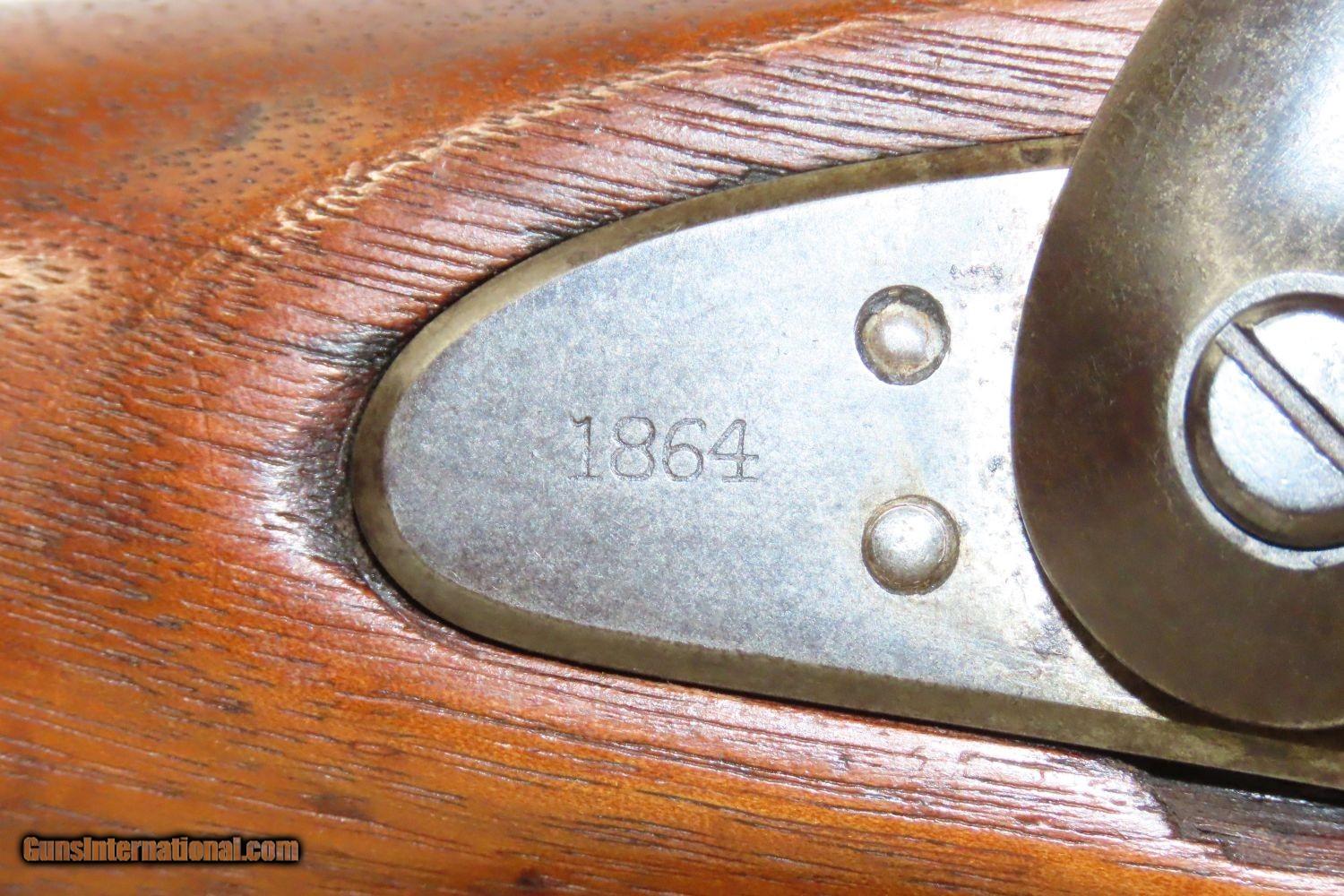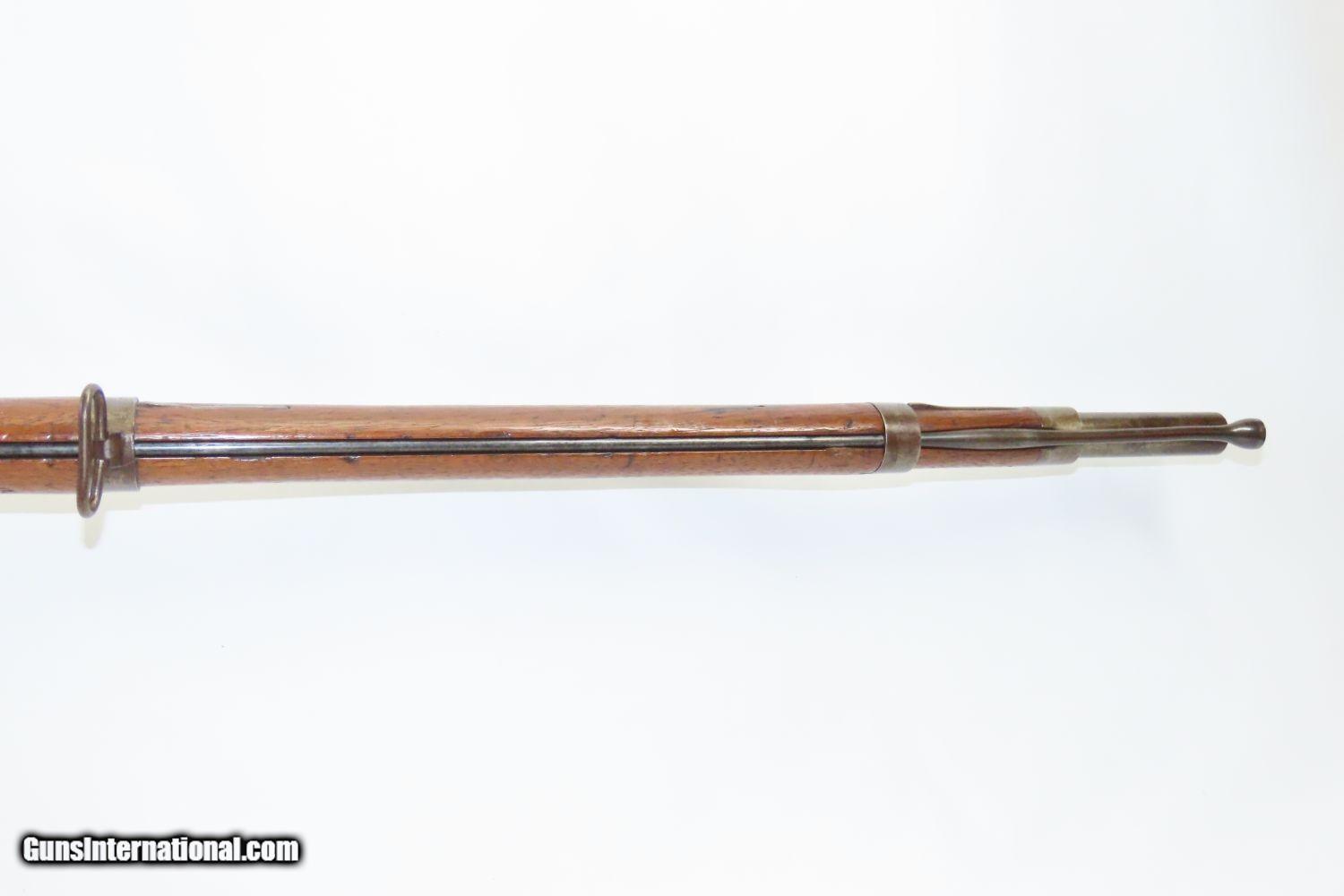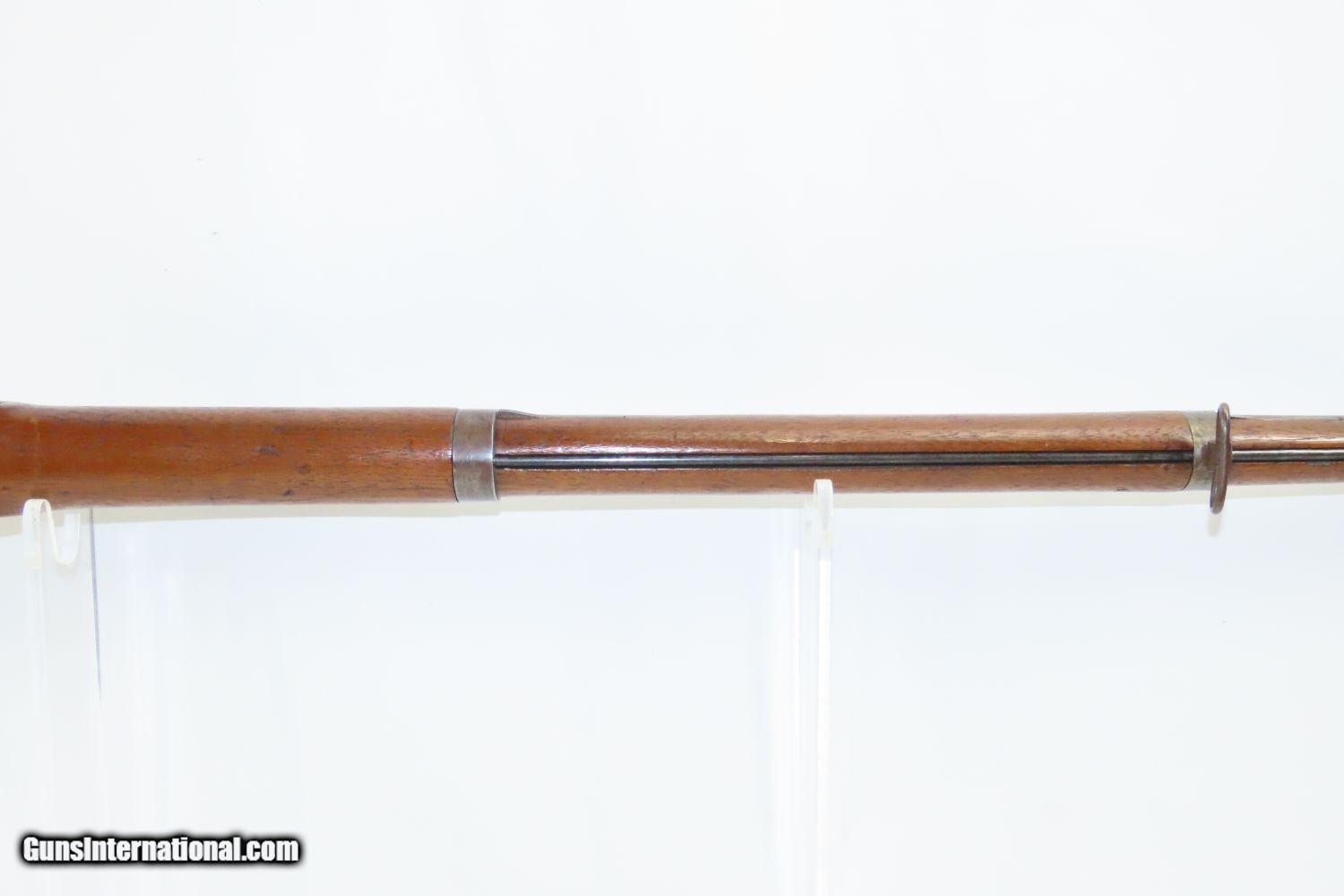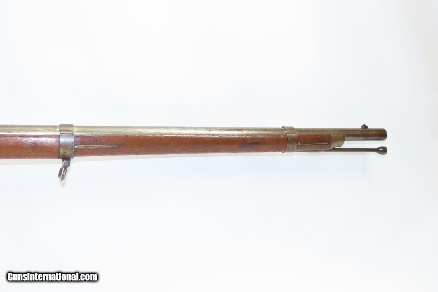 Description: Scarce MILLER CONVERSION MERIDEN Mfg. Company Model 1861 .58 RIMFIRE Rifle PARKERS, SNOW & CO. Percussion Rifle-Musket Here we present a Meriden Manufacturing Company Miller Conversion of a Model 1861 to a .58 Caliber Rimfire Breech Loading Rifle, made circa 1864 and converted circa 1865-67 in Meriden, Connecticut. Only about 2,000 are known to have been made. Production of the U.S. Model 1861/63 rifle musket was in excess of 1 million during the American Civil War between Springfield Armory, Harpers Ferry and about 20 different contractors. It represented a streamlined and, in some ways, technologically advanced musket capable of accurate fire when compared to previous generations of American muskets. Yet it was adopted during a period of rapid innovation that would make it obsolescent before the war drew to a close. Many conversions appeared toward the end seeking to take advantage of metallic cartridge technology for a faster rate of fire. Such examples were the Snider, Joslyn, Needham, Peabody, and the most successful, the Allin, and this was not even all of them. This conversion, undertaken by the Meriden Manufacturing Company of Connecticut, produced the “Miller Model 1861”. The conversion was named for the patent holders William H. and George W. Miller. In the system, a release catch found along the top of the barrel was used to brake the action open along a hinge, exposing the breech for inserting a cartridge. The patented arrangement was featured in Parkers, Snow & Company Model 1861 rifles. The Parker Snow Contract Model 1861 was the chosen host for this conversion. The lock is stamped with a large spread-winged eagle over “U.S.” and marked “PARKERS’ SNOW & CO. / MERIDEN, CONN” in front of the hammer. This rifle being dated 1864 is believed to be the product of the James Mulholland Contract of 1861 of which only 5,502 were delivered. According to Flayderman’s Guide to Antique American Firearms, “it represents the first venture in firearms manufacturing by Charles Parker of Meriden, Connecticut. Originally a manufacturer of hardware, he soon, after the Civil War, in 1866-1867 formed what was to become the most famous of all-American shotgun Manufacturers, the famous “Parker Brothers”. These are known to have been issued to New York and Maryland militias after the war. The overall condition is very good. Strong action. The bore is in good shape with nice rifling. Stock is solid with cartouche remnants on the left and a chip missing under the lock. Sharp markings. “1864” dated lock. Own the original! This is a legitimate antique and not a reproduction. Barrel is 39 inches. Caliber: .58 Rimfire Overall condition as seen in photos. Very Fast. Very Safe. FREE SHIPPING WORLDWIDE. Delivered directly to your door by express mail! Guaranteed AUTHENTIC & Includes CERTIFICATE OF AUTHENTICITY. ancestryguns $2475 #215113 SOLD Antique: Yes |