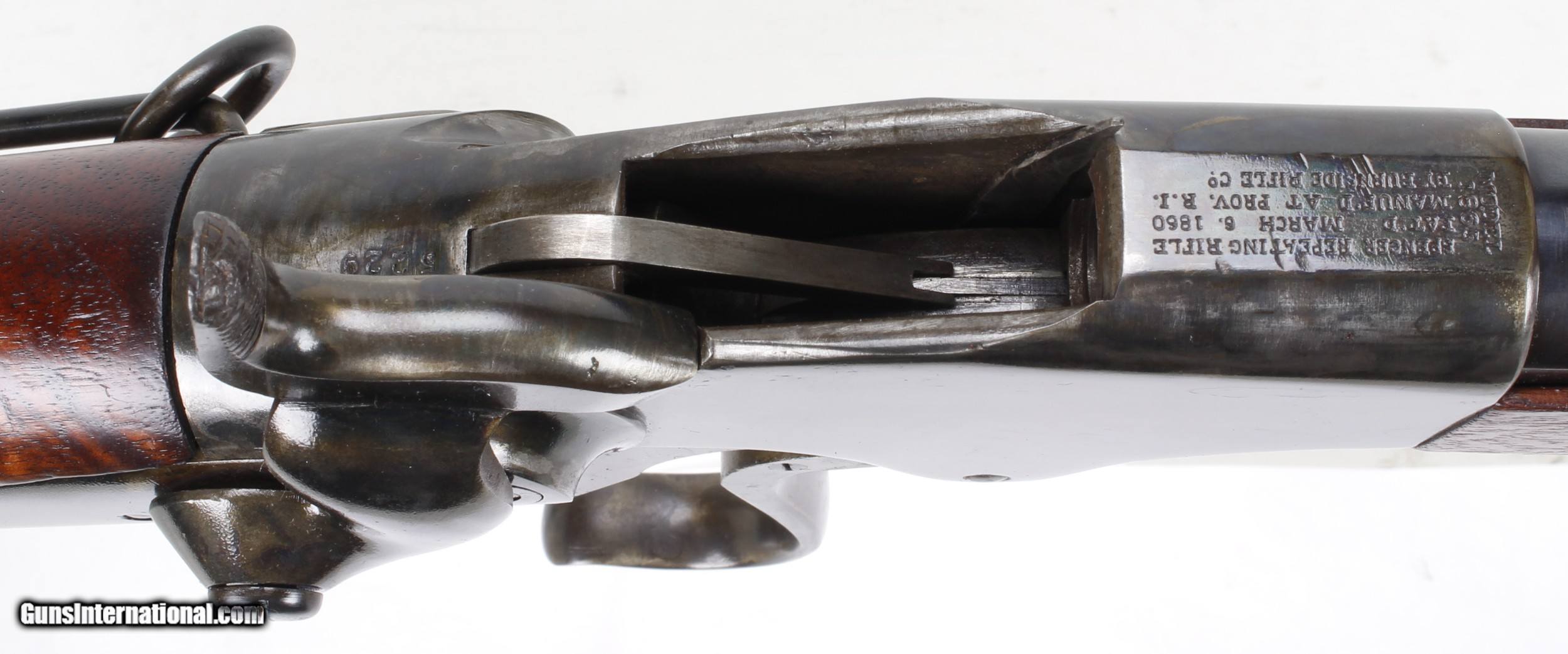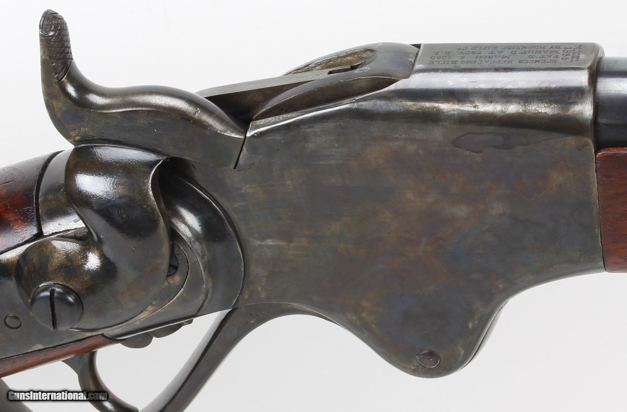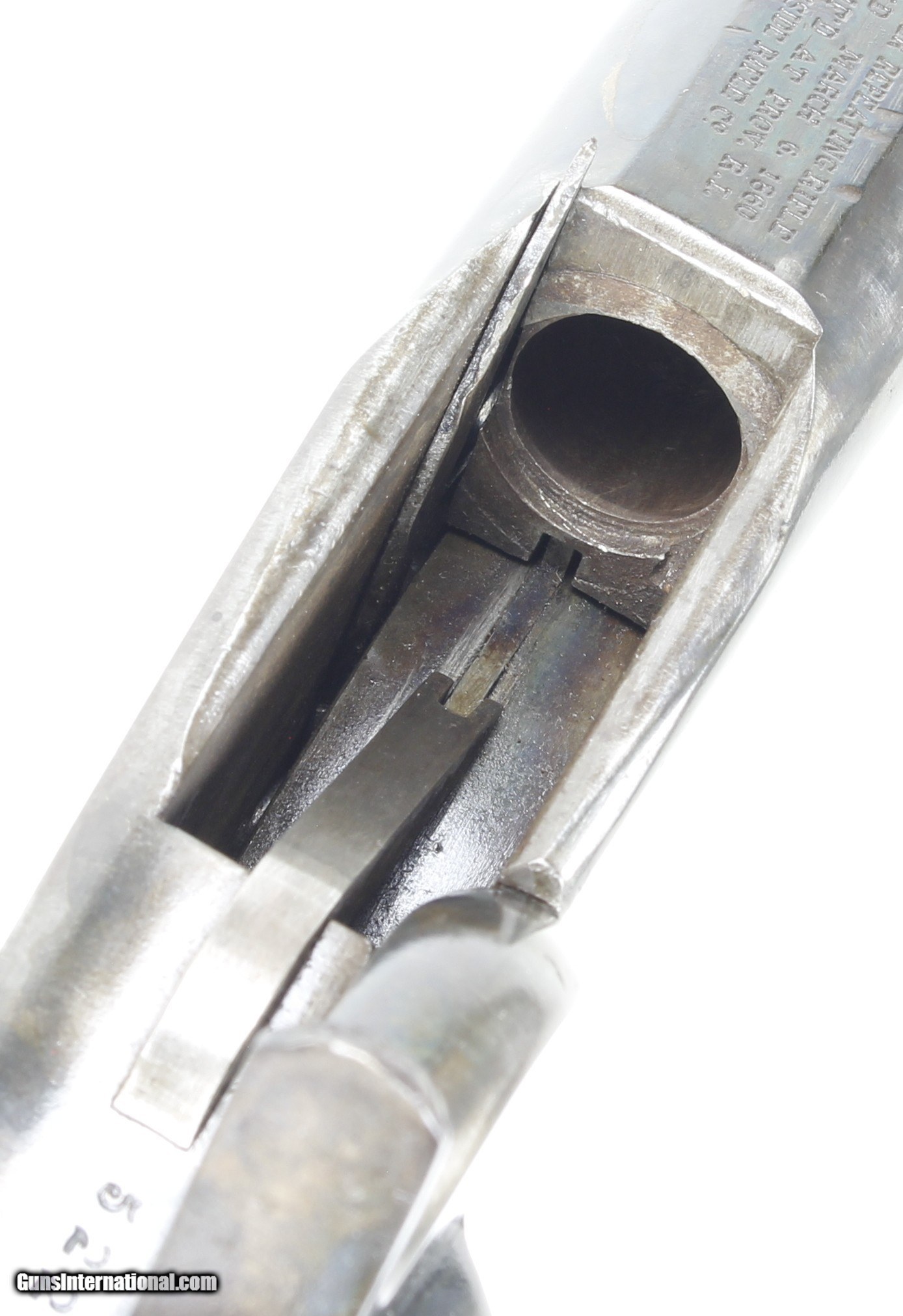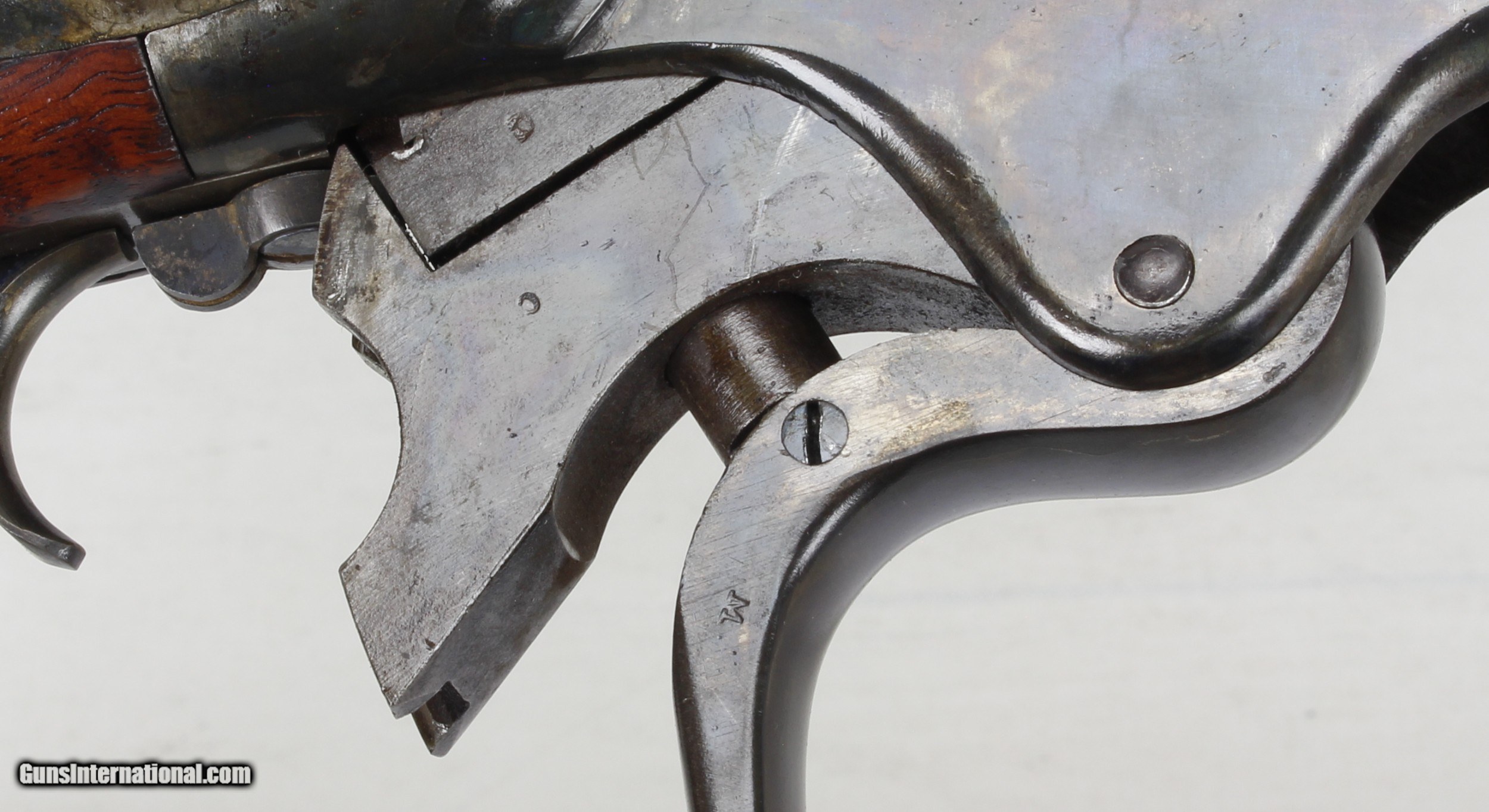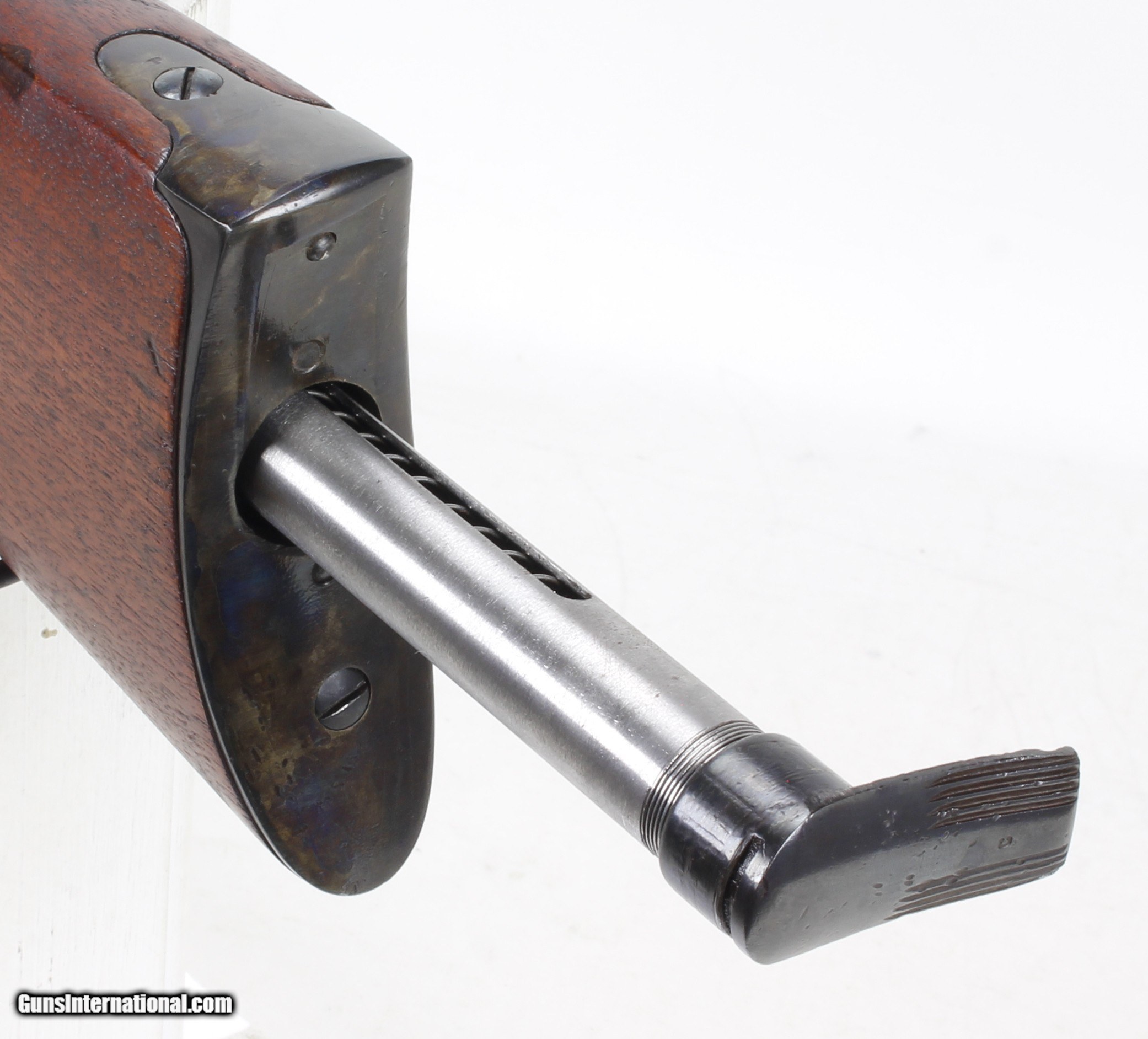 Description: This listing is for a very nice Spencer 1865 Saddle Ring Carbine in 56-50, 20" barrel, s/n: 5229, mfr'd in 1865. This gun is an antique and does not require an FFL. Barrel has been reblued and wood has been refinished. The bore is Very Good for its age, bright with clear rifling and some very minor scattered pitting. Blade front sight, folding rear sight, case colors on receiver, straight-grip walnut stock. Magazine tube has been replaced with a reproduction from S&S parts. Shipping to lower 48 is $50.00. NOTE: THIS IS A RIMFIRE 56-50. SOLD Antique: Yes Rifle Caliber: .50 Spencer |
