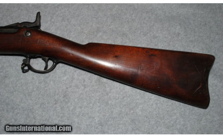 Description: ~ Springfield 1873 Trapdoor .45 ~ ~Important Information~*Firearms are subject to prior sale.* Please call 360-252-3511, instead of email.* Customers who call have a better chance of purchasing the firearm over those who email. * Although we strive for accuracy, we are not responsible for editorial or typographical errors. SOLD Antique: Yes Manufacturer: 1873 Caliber Info: .45 Metal Condition: Very good condition some handling marks. Wood Condition: Dings small scratches and handling marks. Bore Condition: Very good. Barrels: 32 Triggers: Wide smooth trigger. Stock: Walnut Stock Dimensions: LOP: 13 3/8 Fore End: Has all three bands. Butt Pad: Cresent steel butt plate. Weight: 9 1/2 Lbs. Sights: V notch ladder bar rear/Square blade front. Item Location: Lacey, WA |