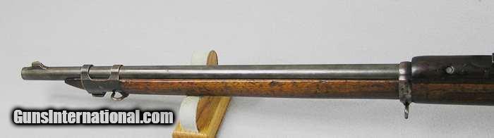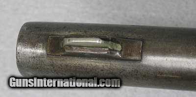 Description: The serial number is 11410 and is early 1898. The mechanical function is very good crisp and tight. The bore has very good rifling with light frosting from the corrosive ammo. The blue is 65% and no rust or pitting on the metal surface. The wood is fine, except for a grain crack repair at the wrist and that is a solid repair. No other cracks or damage to the wood. Most all of the U.S. inventory of the Model 95 made in 1898 and 1899 went to Cuba and Central America so when you find one they show very hard use. This one except for the wrist repair is in very fine condition. This is a legal pre 1899 antique rifle. I would consider trades for pre 1899 ANTIQUE PISTOLS and rifles on any of my items.. WHAT DO YOU HAVE TO TRADE? Ask about our 30-90 day lay-away program. We accept Bank Check, Money order, Personal checks or wire transfer. SOLD Antique: Yes Serial Number: 11410 |