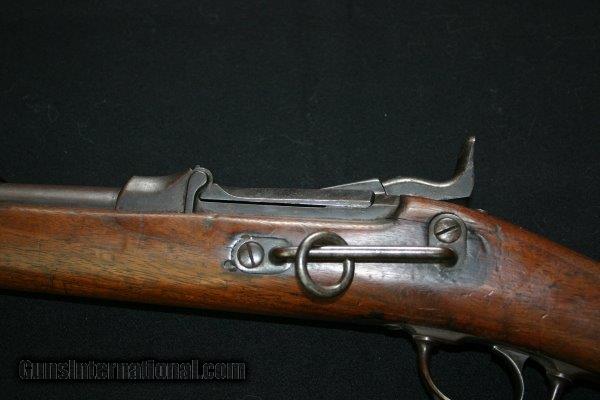This is an original 1884 model, not a cut down Cadet Rifle, complete with saddle ring and bar, Buffington rear sight, butt plate has cleaning rod trap, Barrel is 20- 1/2 ", good condition and good bore. Price