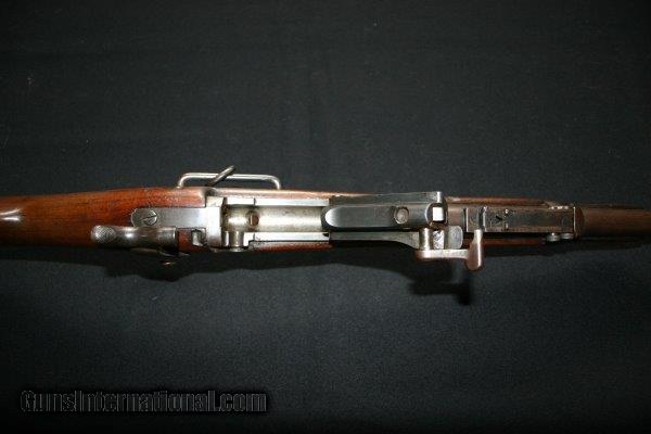 This is an original 1884 model, not a cut down Cadet Rifle, complete with saddle ring and bar, Buffington rear sight, butt plate has cleaning rod trap, Barrel is 20- 1/2 ", good condition and good bore. Price SOLD Curio/Relic: Yes Antique: Yes |