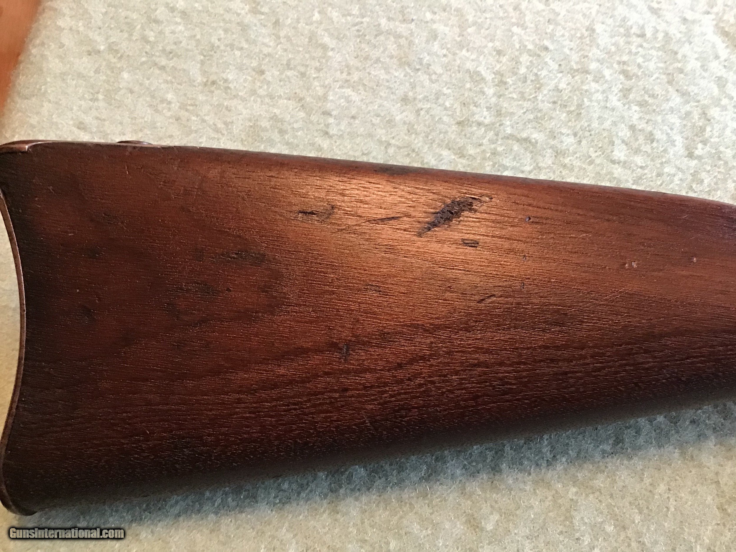 Description: ON HOLD SALE PENDING. US Springfield Model 1866 trapdoor 50-70 caliber also known as the second Allen conversion. Full length 3 band dark walnut stock is in very good condition. Full length barrel has both front and rear sights and a very good bore. The lock is marked US Springfield with the eagle and is correctly dated 1864 and functions fine. The breach block is marked 1866 with the eagle head. All metal parts have a light brown patina. This old Springfield is in very nice condition overall. Shipping will be actual cost not to exceed $50.00. Feel free to contact me with any question chriskobberdahl2gmail or 218-839-9272 On Hold Sale Pending SOLD Antique: Yes Manufacturer: US Springfield Model: 1866 |