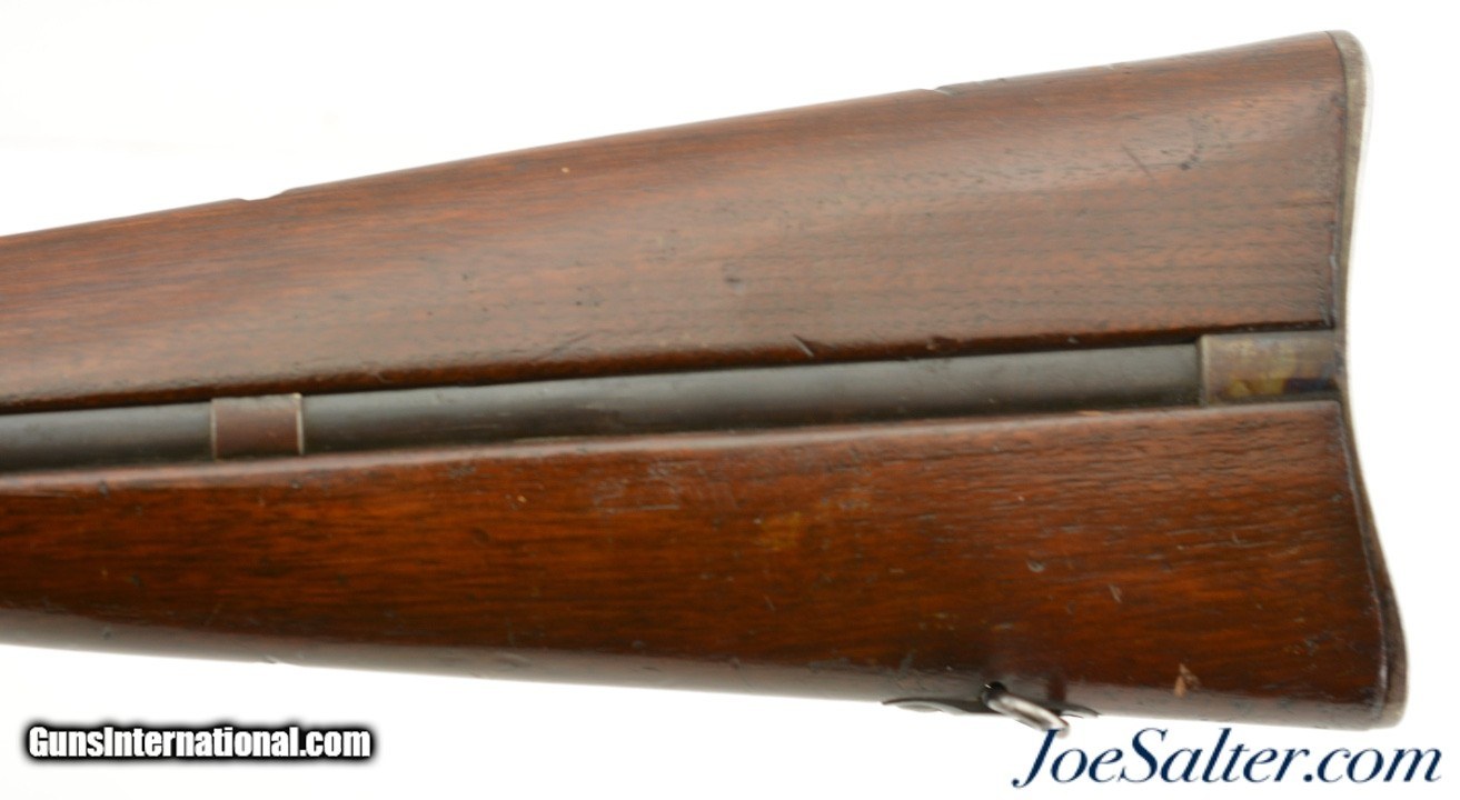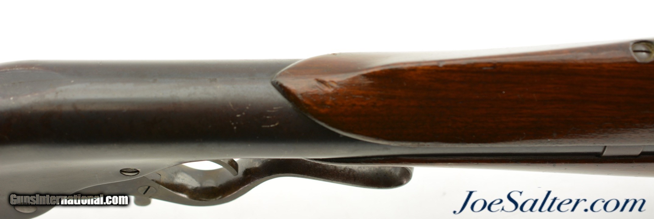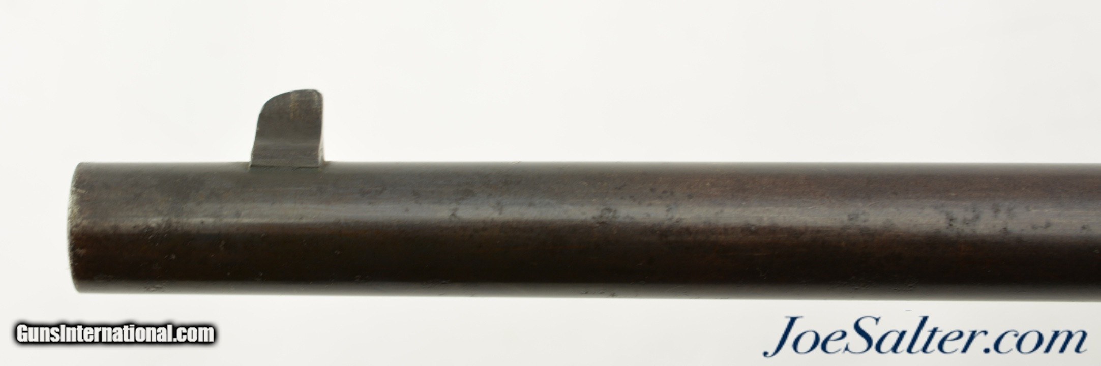 Description: NSN, .44 Evans, 22" barrel with an excellent, bright bore. This is a rare New Model Carbine, one of about 4,000 made, that retains about 90-92% of the original blue finish with mild fading and freckling along the edges and at the muzzle. The lever, hammer, and some of the buttstock fittings have retained a like amount of their original color case-hardening which has dulled slightly, but is still fairly bright. Additionally, some of the original bright, nitre blue is still present on the rear ladder sight base. The checkered walnut forend with schnabel tip and unique, two-piece buttstock are also in excellent condition with only some very minor handling marks in the original varnish finish. The mechanism is in excellent condition as well, and functions flawlessly. The Evans was the first firearm to be mass-produced in Maine and utilizes a helical magazine in the buttstock that originally held 34 rounds of ammunition, but by the time the New Model was released the capacity had been reduced to 28 rounds. This particular example retains an exceptionally high degree of original finish and is mechanically superb. It would make a fantastic addition to any collection of unusual firearms or early American repeaters. Antique; Antique: Yes Price: $2,995.00 Contact Seller |