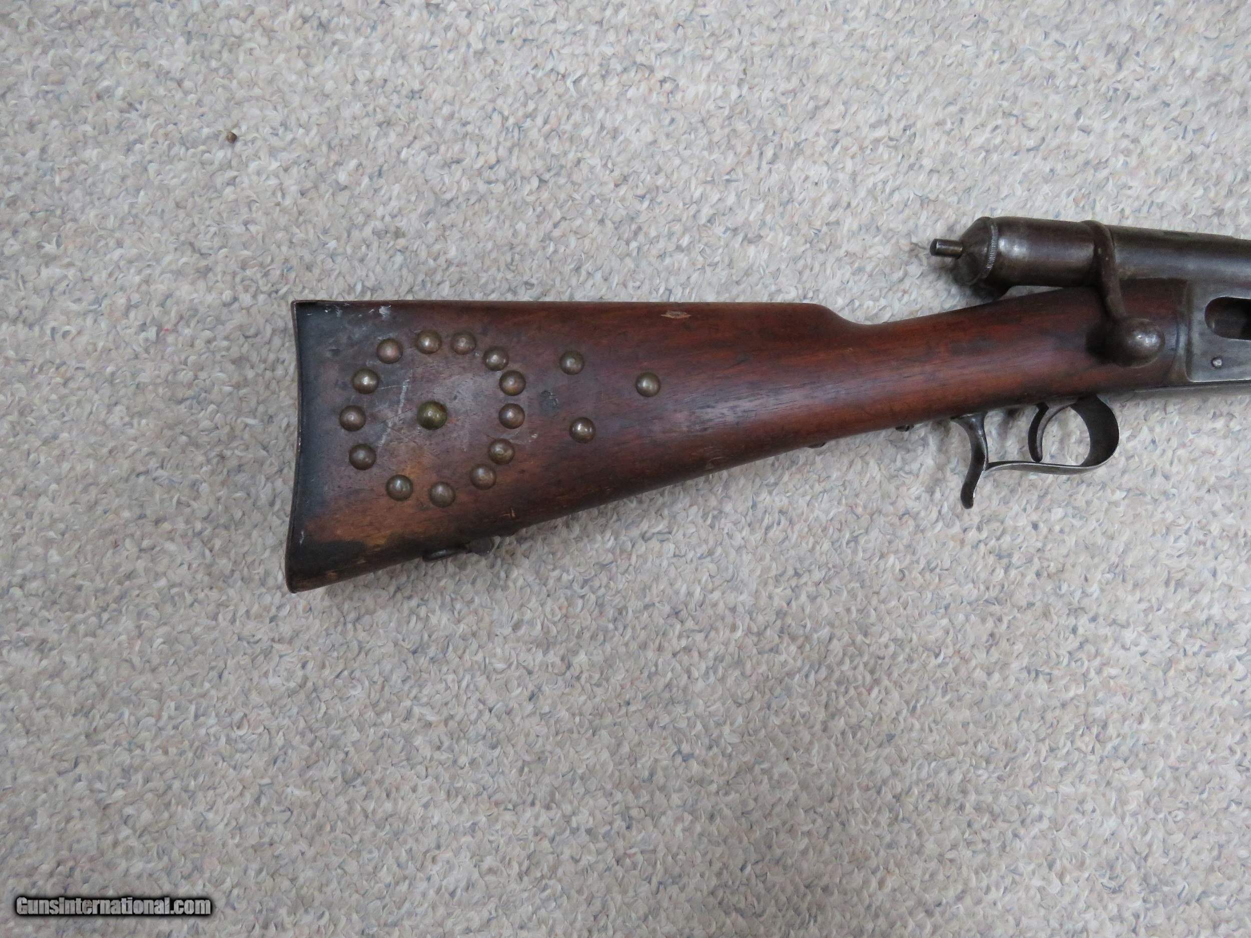 Description: Vetterli rifle, Model 69/71, made in Switerland, cal 41R or 10.4mm, 33" bbl, brass tacks on forearm and buttstock, possible Indian trade gun, all #'s match, $300.00, All reasonable offers considered. Photos show condition. Price Shown includes cash discount. Credit Cards add 3%. FFL must collect 8% sales tax from NY Buyers. $50 Shipping CONUS via USPS Priority Mail with tracking, Alaska Hawaii additional. Shipping Insurance, signature fees are additional cost. Used firearms are sold AS IS. SOLD Curio/Relic: Yes Antique: Yes Manufacturer: Vetterli Model: 69/71 Serial Number: 114270 Barrel Length: 33 |