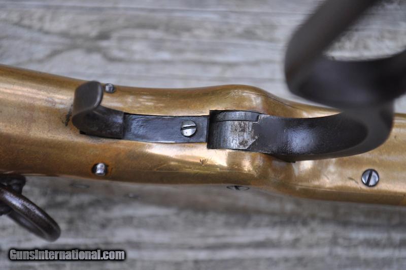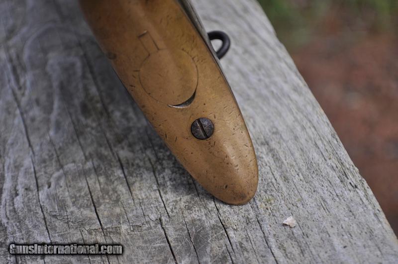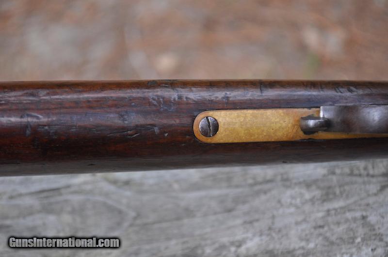 Description: I can just about guarantee that you don't have one of these. This 1866 was inspected by US Military arms inspector G.K.Jacobs who was an Army inspector for the Amoskaeg Musket from 1865-1875. No one I have talked to has been able to solidify the reason for the military inspection. As most of you know, Winchester never had a military contract in this time frame. There are some inspected rifles and carbines that went to South America in 1877 time frame. This one here however was made in 1871! This was right in the middle of the reconstruction period and the huge push to the frontier by civilians and Military. I've talked to the Cody Museum Currator and sent pictures with no luck but the fact that it was the only one he had seen. Speculations have ranged from a Winchester sampler that was sent to try and procure a contract, to a small number of guns that may have been inspected just for frontier soldiers establishing forts. The gun itself is a solid example with high and tight wood that any collector would be proud of even without the unique provinance. Wood is solid with no noticeable cracks. For whatever reason sling eyes were added back when it was made just based on the style and fit. Brass has not been cleaned and has a beatiful finish. ALL serial numbers match, so no this isnt a musket buttstock. Buttplate and stock screws look like they hadn't been removed much based on the shine still presnt on the shafts. Gun has a lot of uncleaned green verdigris inside as seen. The crease on the left side of the stock is NOT a crack as seen in pics under buttplate. Bore is still shiney with a little corrosion here and there! Blue on barrel and mag has turned but is original. There is still traces of case color on the base of the hammer as seen. Mechanics are great. I guarantee you can find a BETTER 1866 SRC. However, I don't think you will EVER have a chance to own another one like this! Give me a call with questions or an offer. Or email. FOR MORE PICS. 912-227-3007 Thanks. SOLD Antique: Yes Manufacturer: Winchester Model: 1866 Serial Number: 69681 Caliber Info: 44rf |