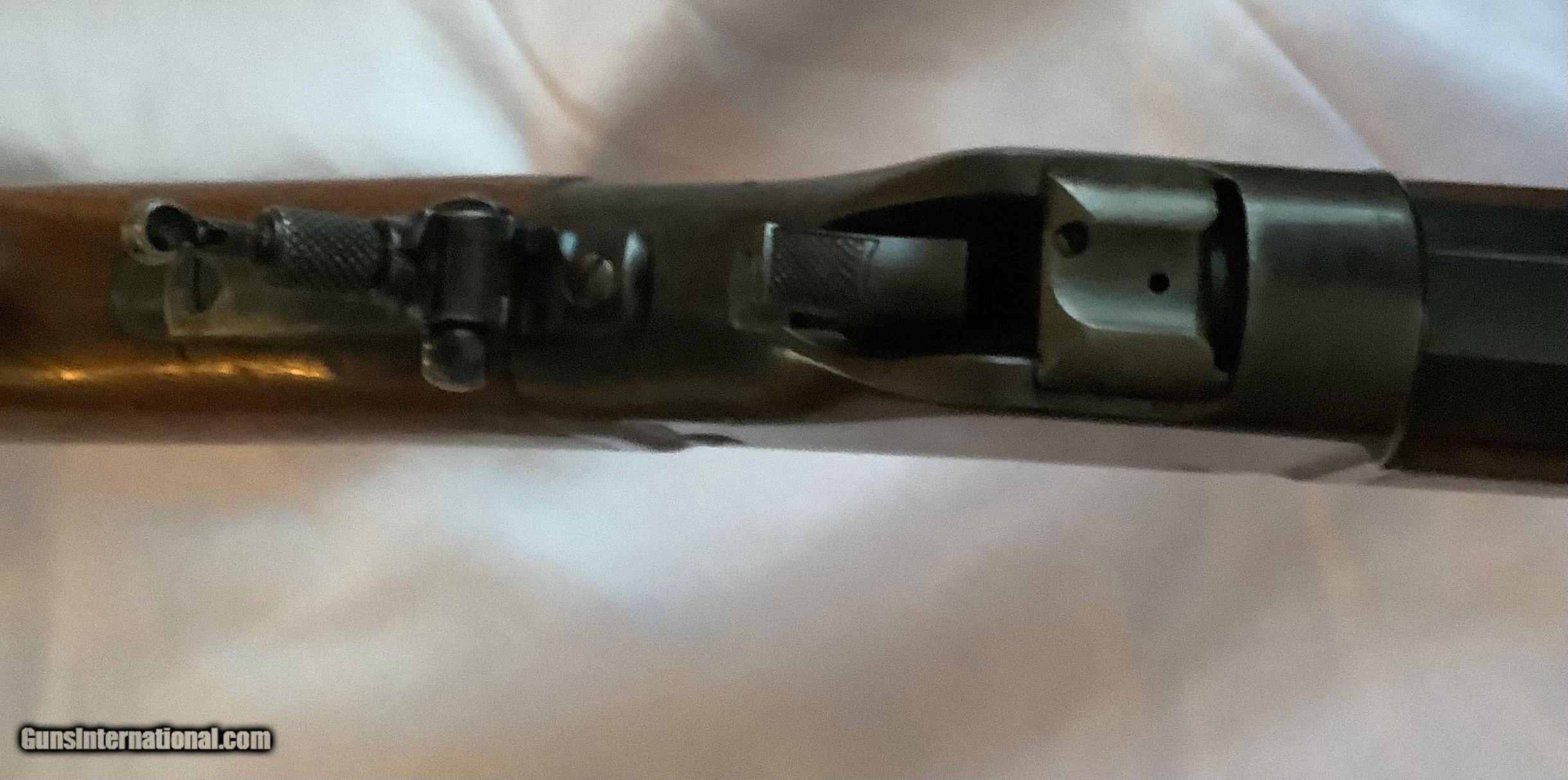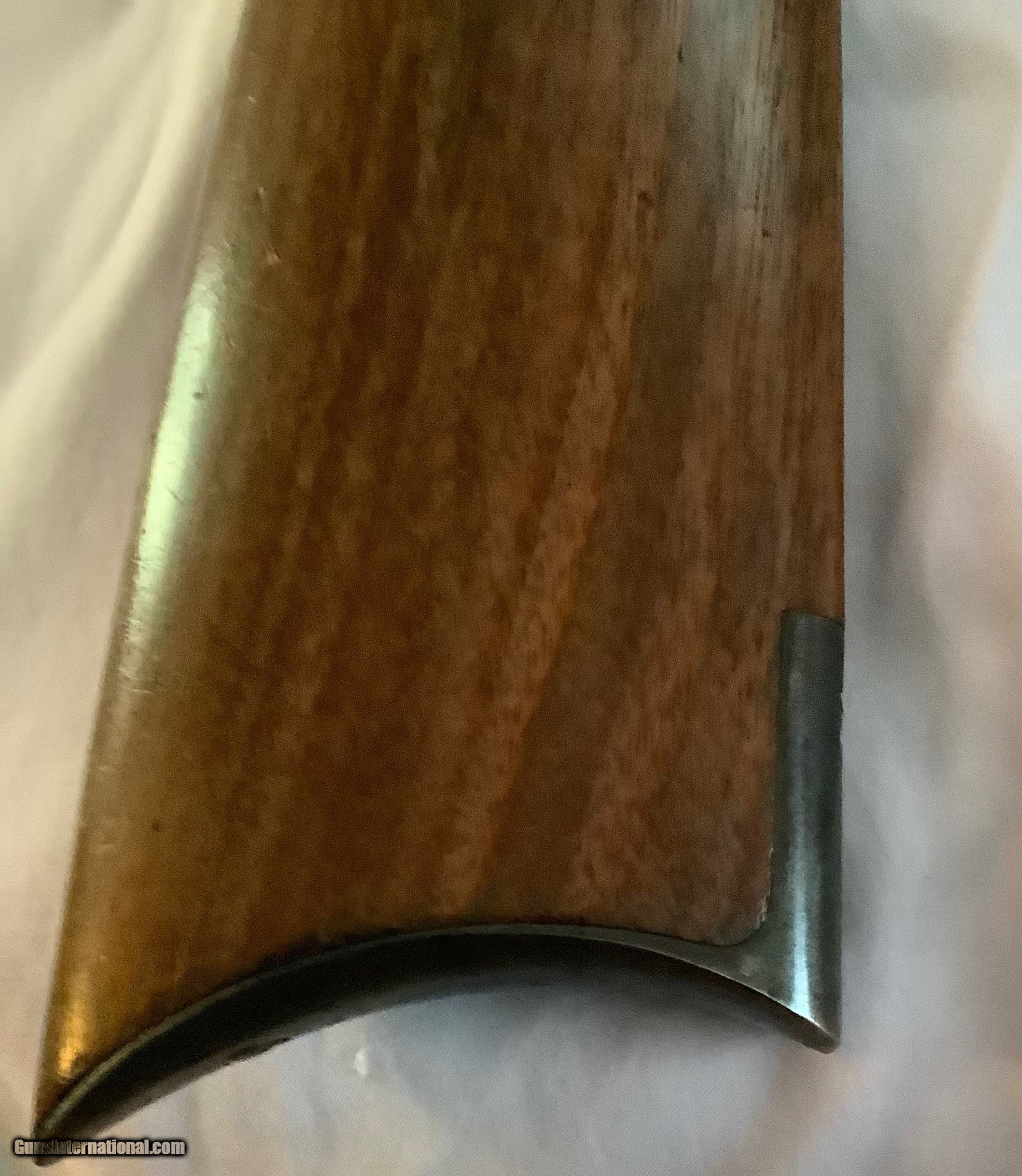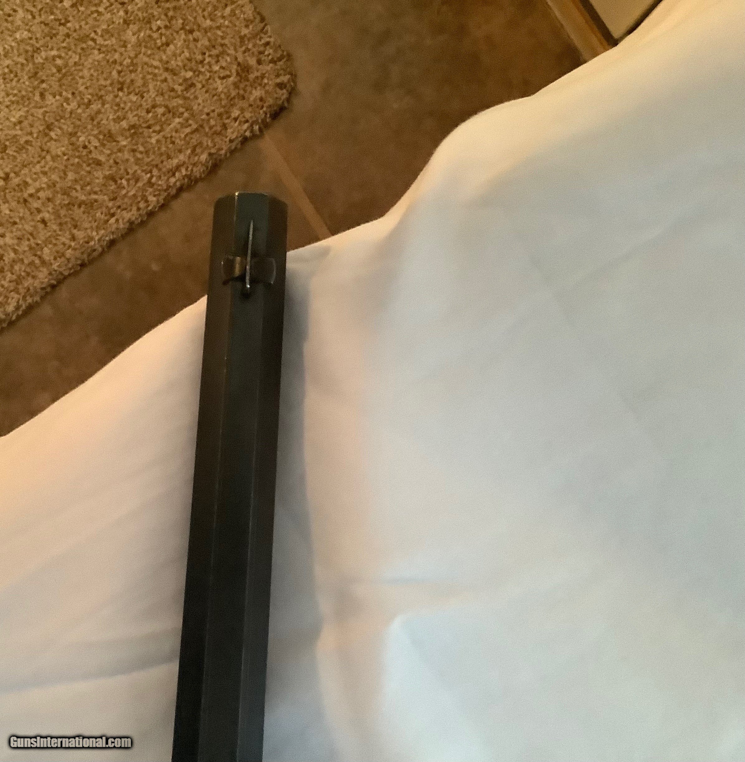 Description: 30" Octagon. Marbles tang site and open rear sight. Minor handling marks on wood. 80% Blue on barrel. Action faded. Bore fair to good. Buyer pays actual shipping. Antique: Yes Rifle Caliber: .45-70 Government Price: $4,200.00 Buy Now Contact Seller |