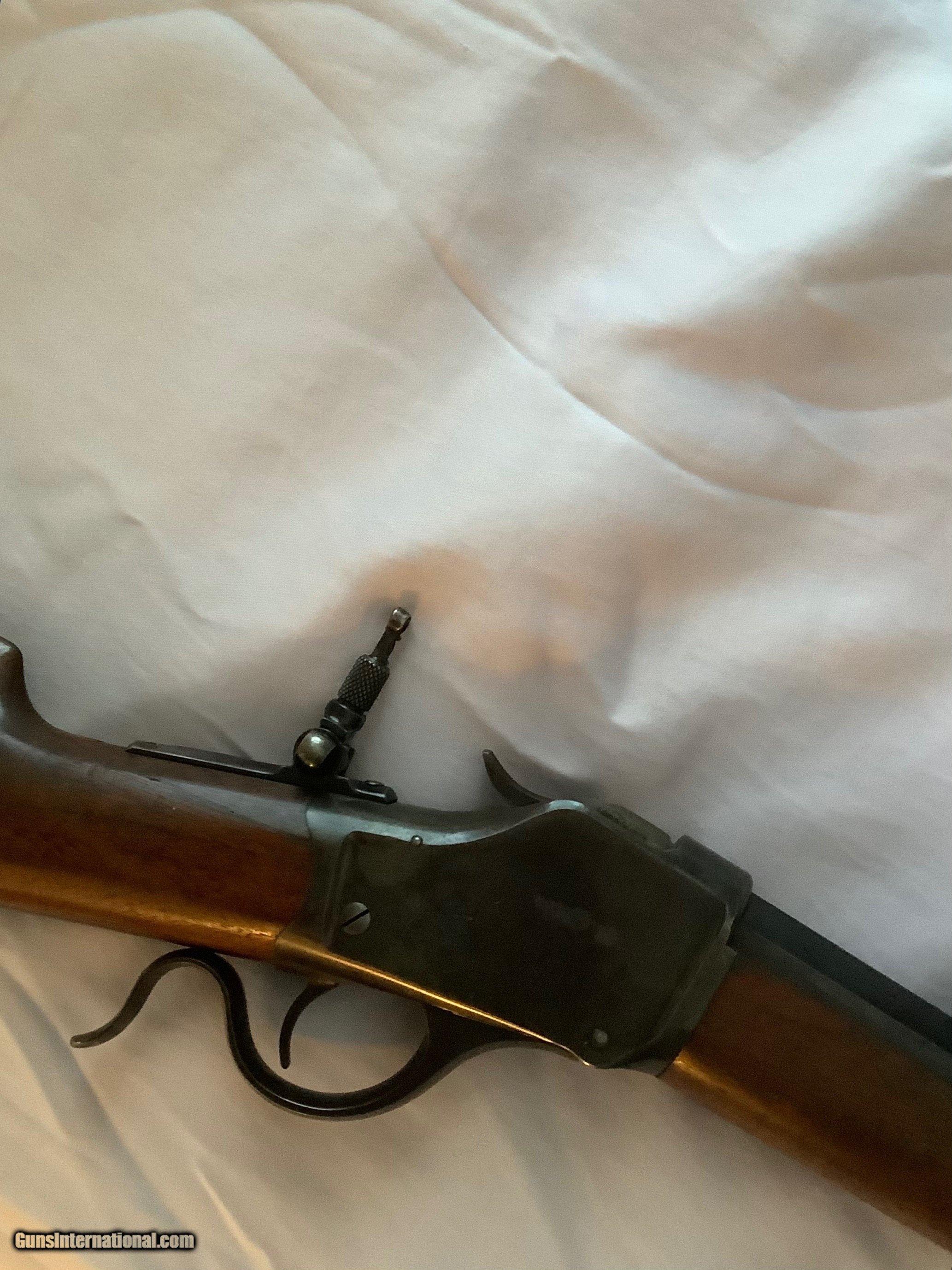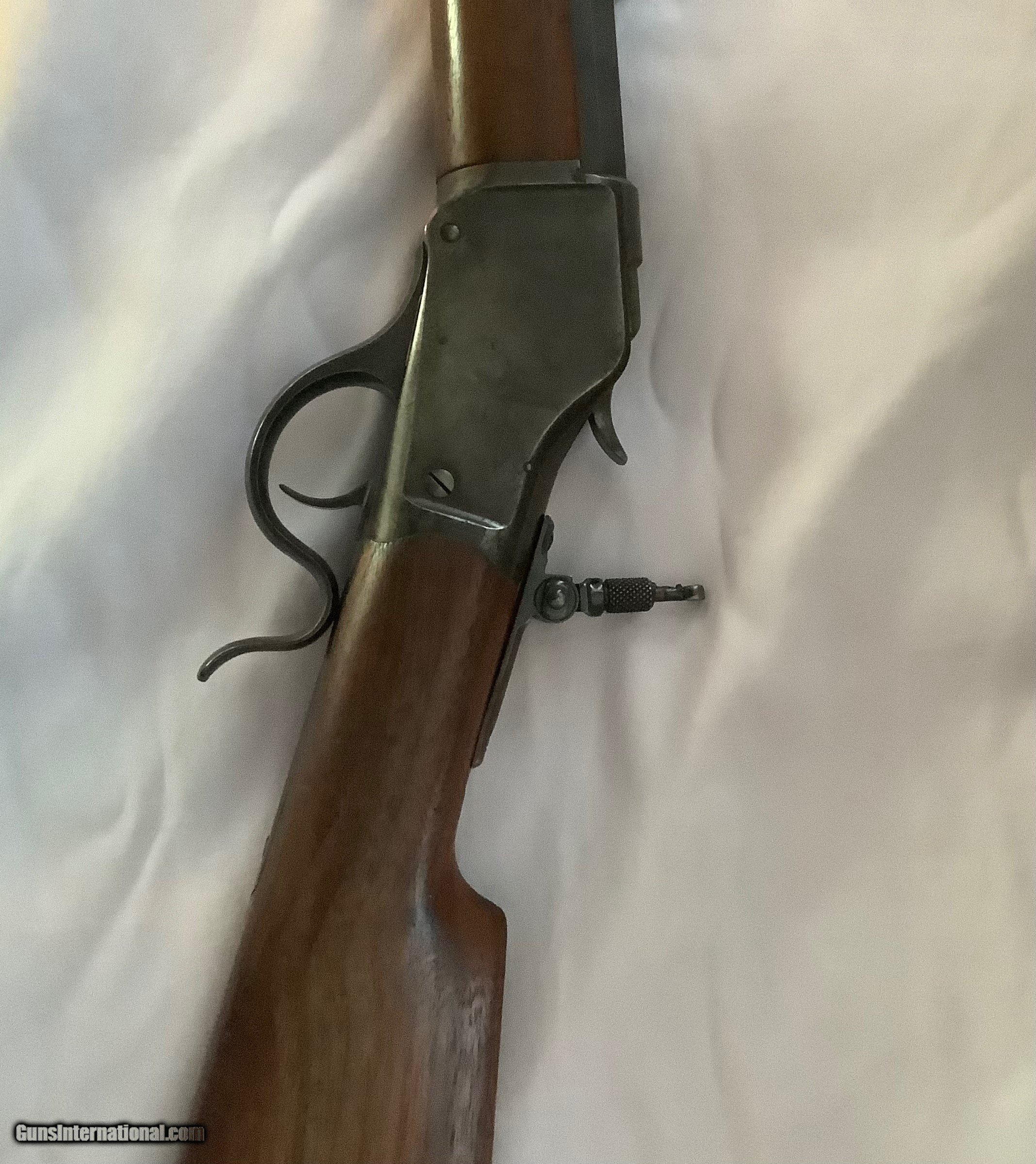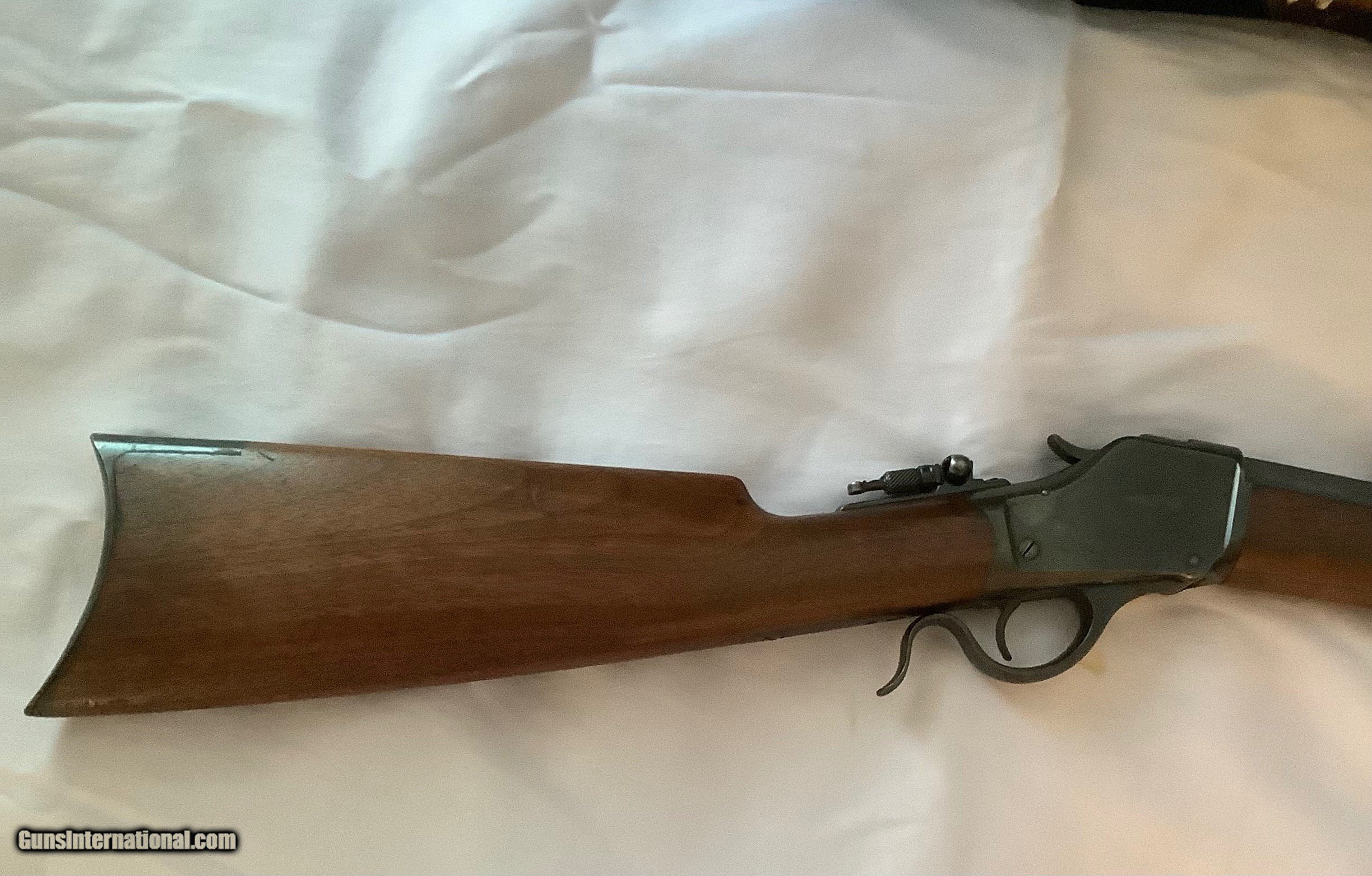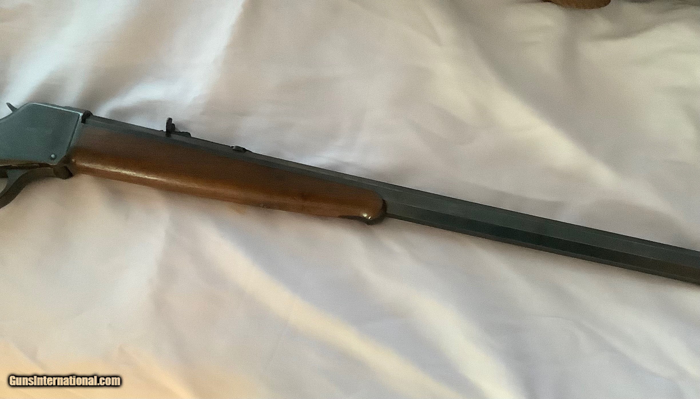 Description: 30" Octagon. Marbles tang site and open rear sight. Minor handling marks on wood. 80% Blue on barrel. Action faded. Bore fair to good. Buyer pays actual shipping. Antique: Yes Rifle Caliber: .45-70 Government Price: $4,200.00 Buy Now Contact Seller |