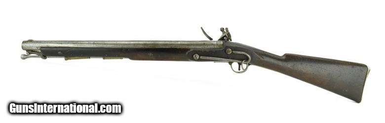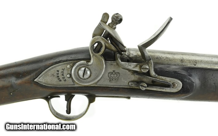 British Flintlock Cavalry Carbine with sling bar. Lock marked Tower proof and crown. Gun has a 20” barrel. Caliber approximately .75. Smooth bore. Overall length 35”. Gun has a captive ramrod. Overall condition is very good. Action works perfectly.