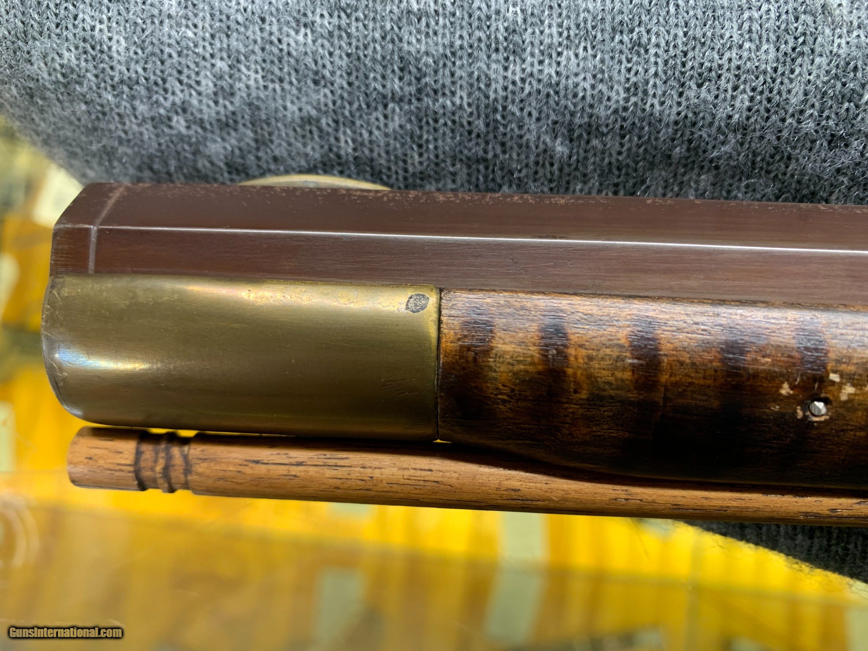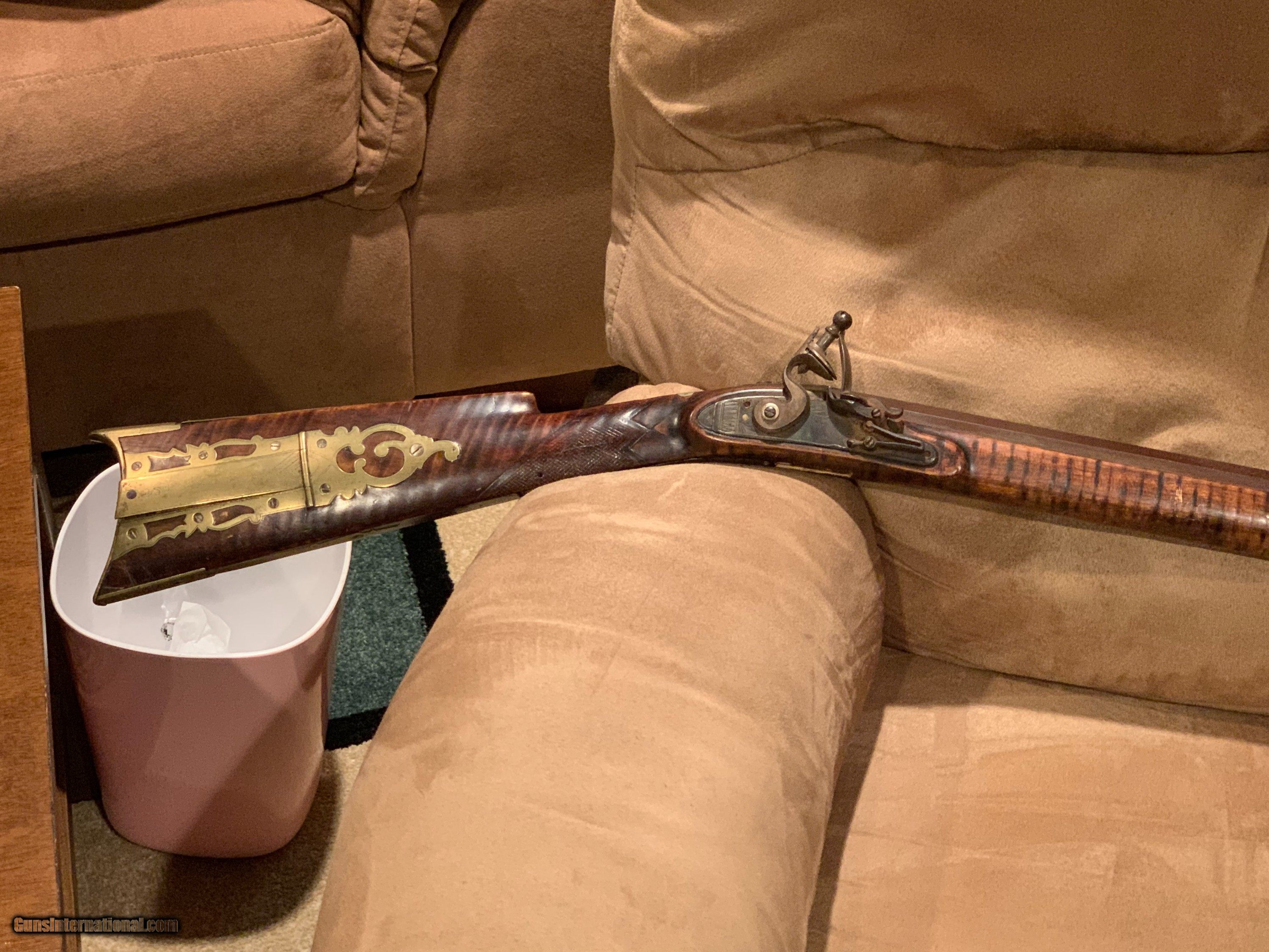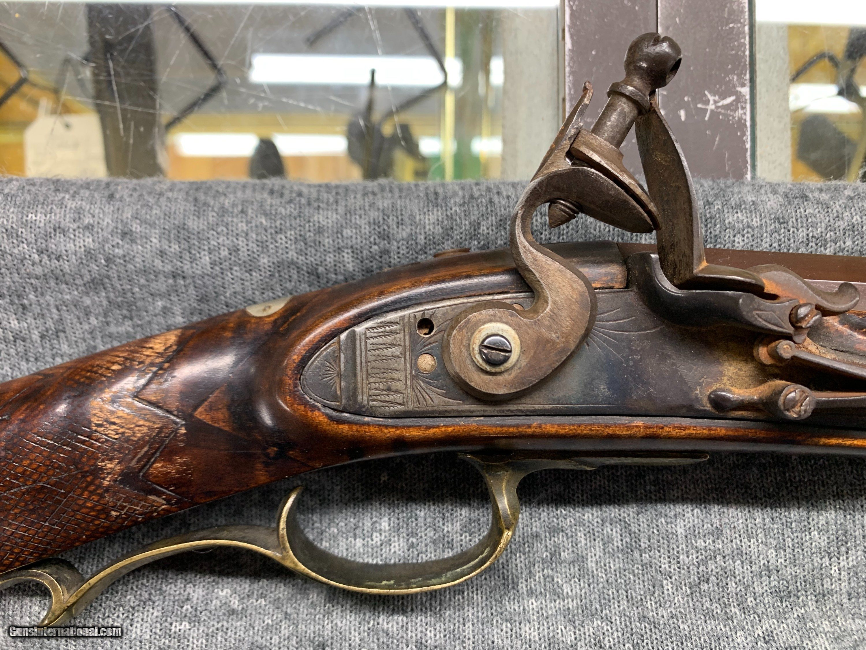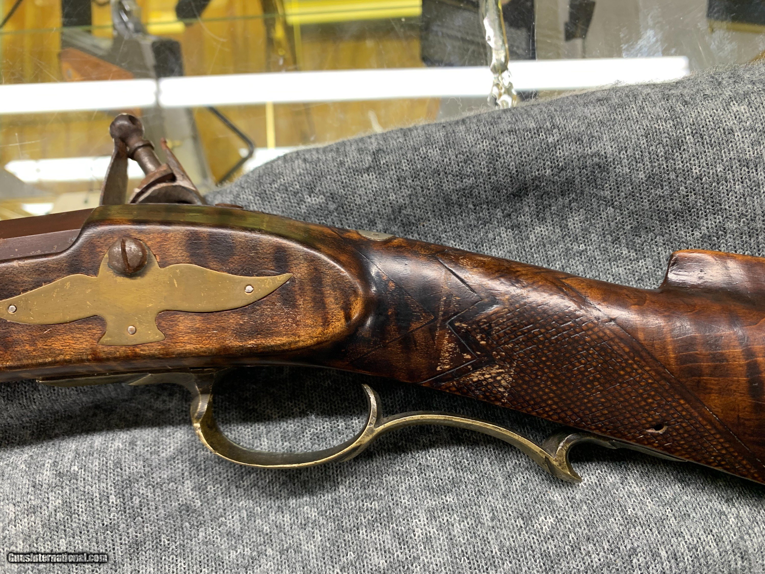 Description: "Henry Eckler Kentucky Flintlock Rifle" For sale is a Henry Eckler Kentucky Flintlock Rifle. Stock foreend and barrel have been replaced. Rear of the stock is supposed to be original. 40" barrel, believed to be .40 caliber. Trigger was removed during replacement of front of gun, and was not installed. Trigger guard remains intact and installed, however. SOLD |