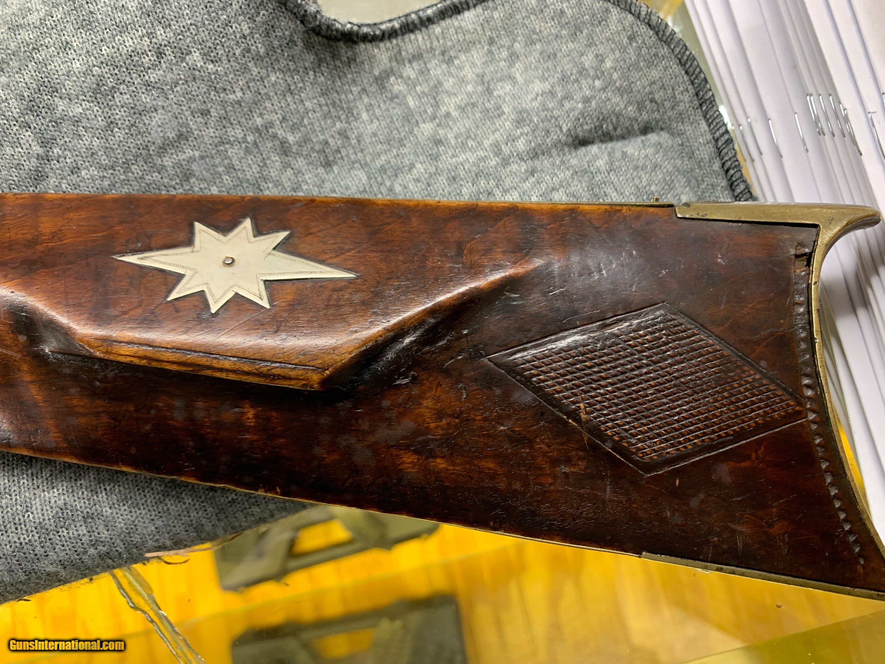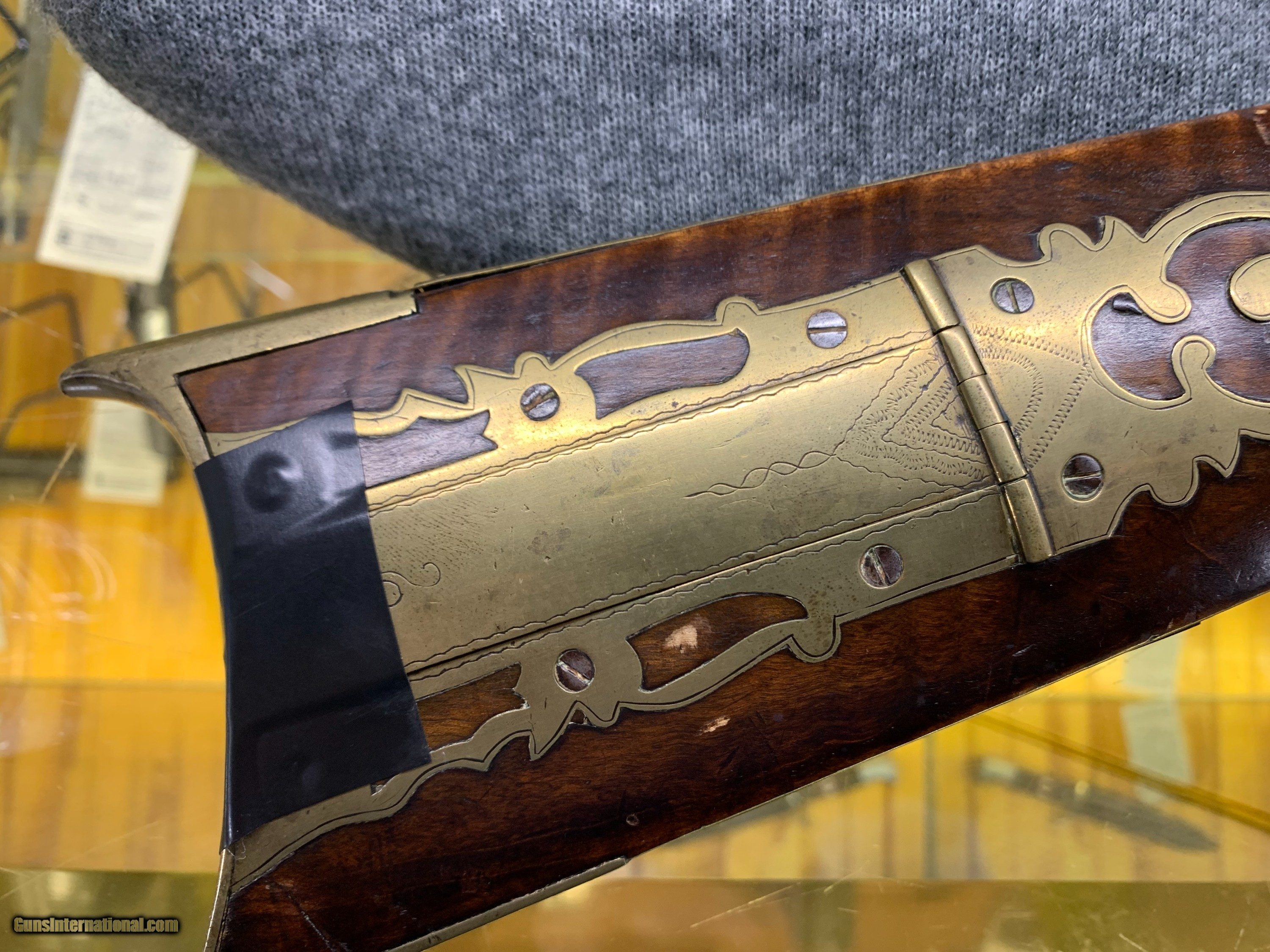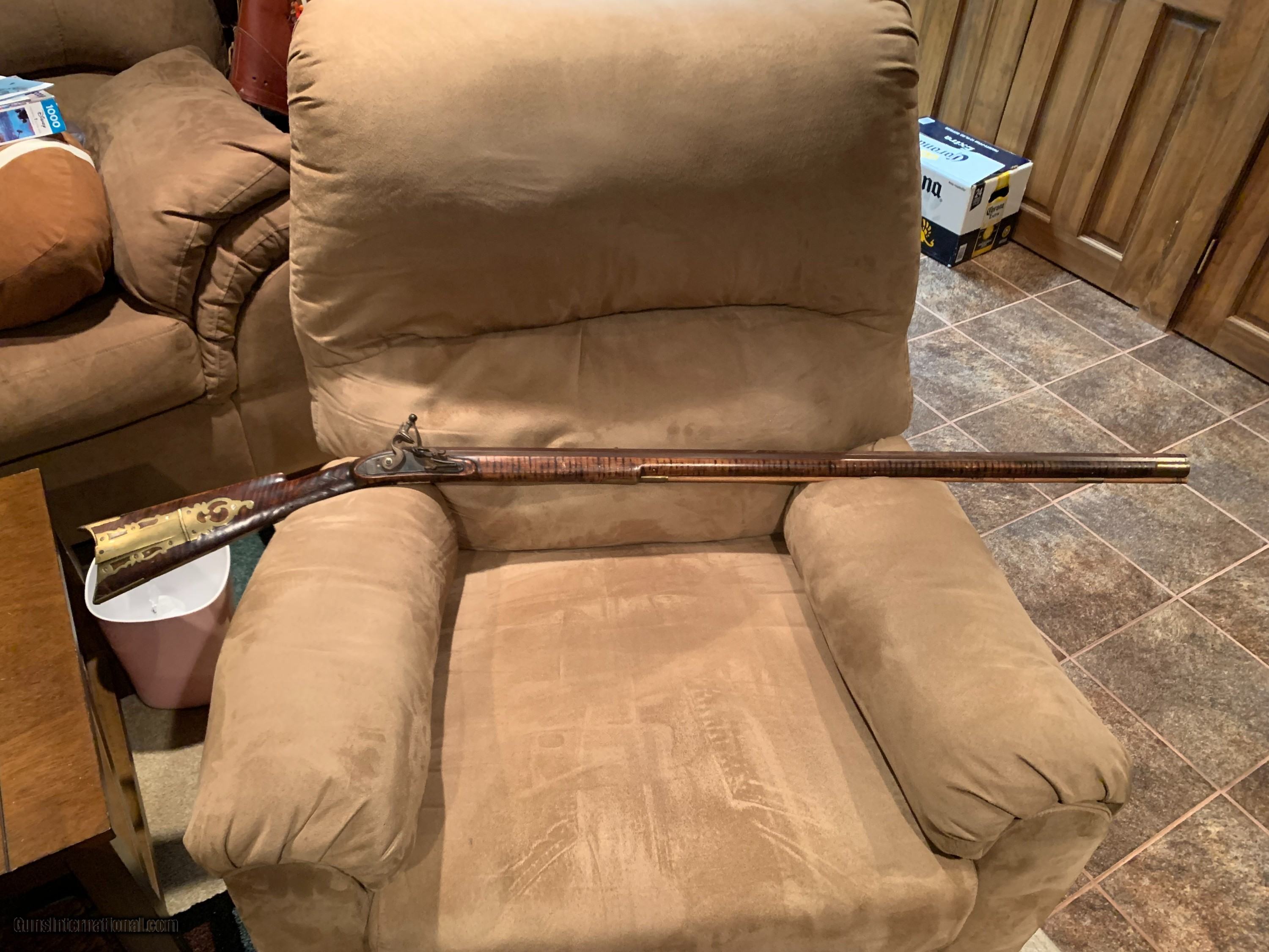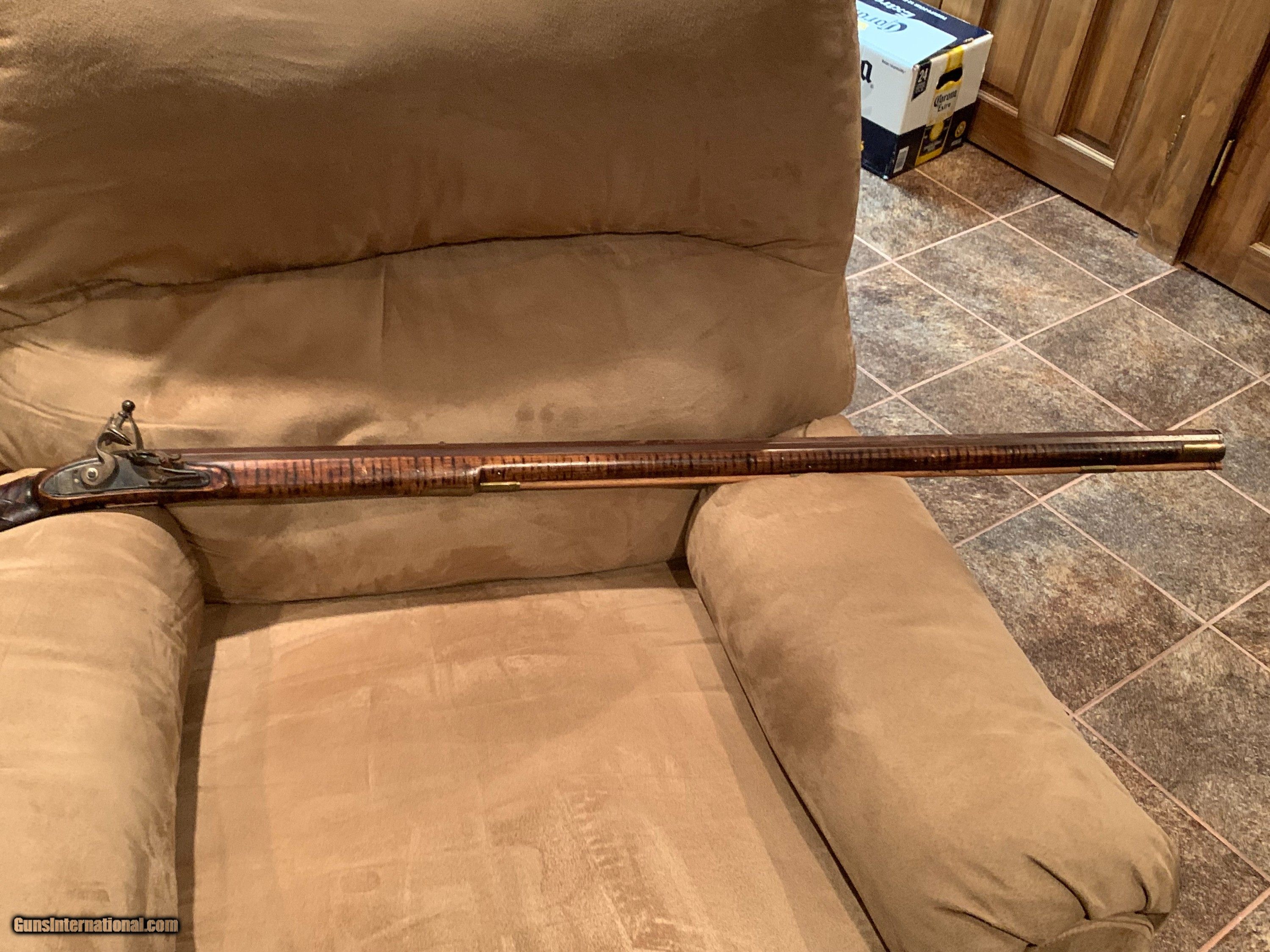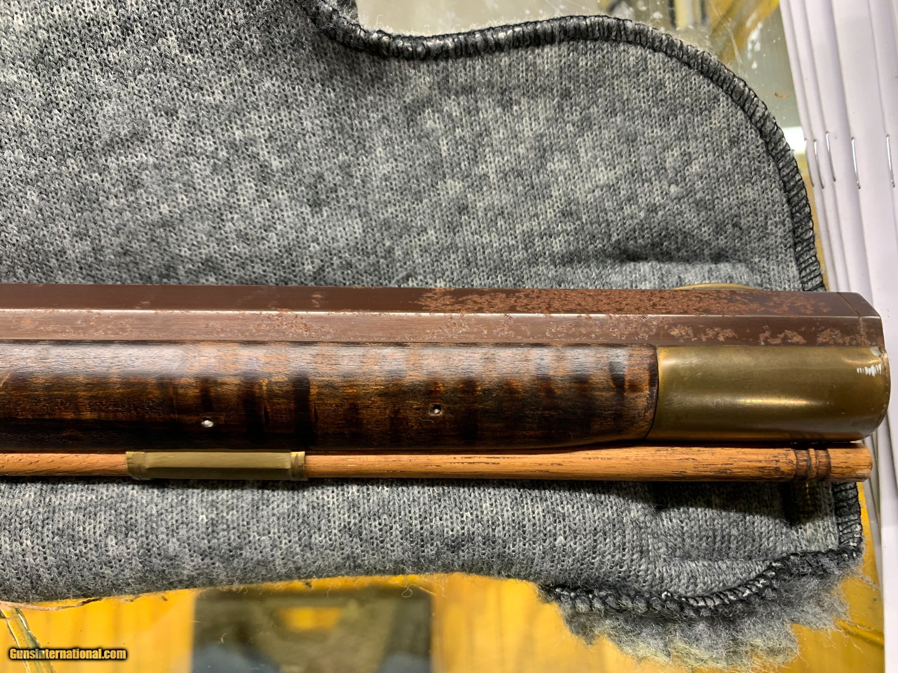 Description: "Henry Eckler Kentucky Flintlock Rifle" For sale is a Henry Eckler Kentucky Flintlock Rifle. Stock foreend and barrel have been replaced. Rear of the stock is supposed to be original. 40" barrel, believed to be .40 caliber. Trigger was removed during replacement of front of gun, and was not installed. Trigger guard remains intact and installed, however. SOLD |