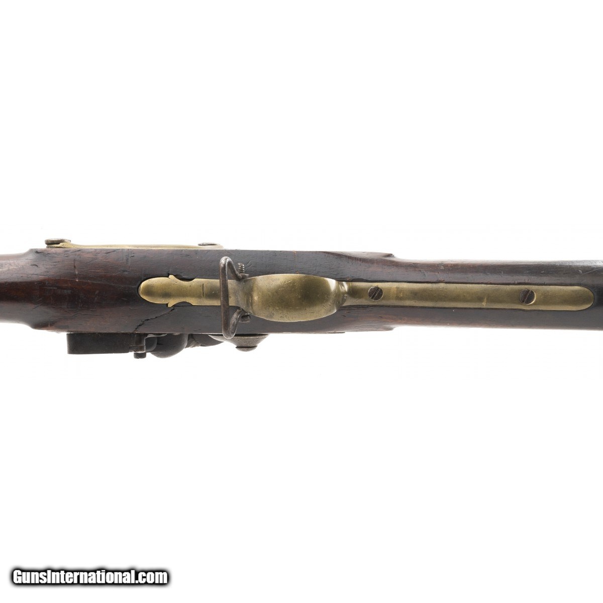 Description: "Made circa 1820. 38 ¼ Inches. Barrel as scattered pitting and a brown patina. Wood is good with some repaired cracks. Wood is nice and sharp overall. Gun comes with a bayonet that needs some pitting. SOLD Antique: Yes |