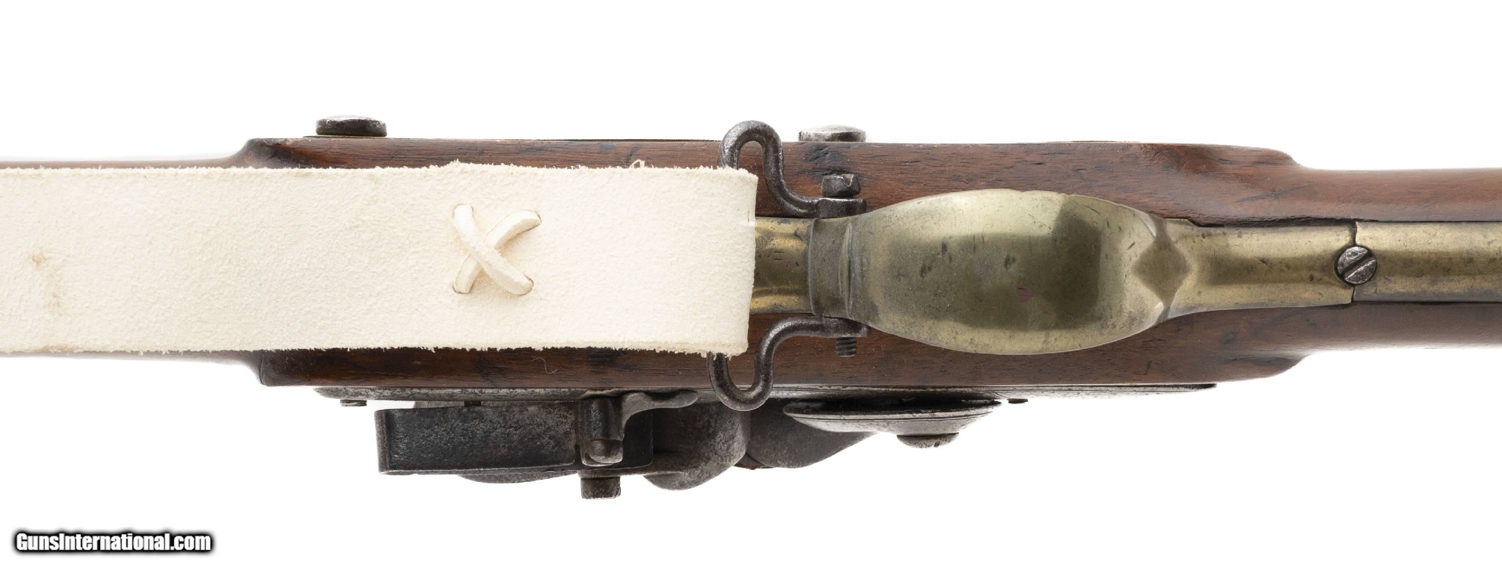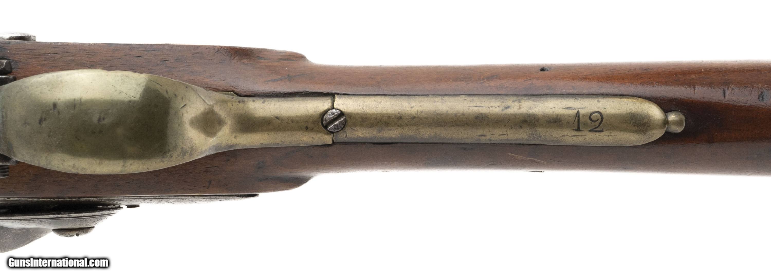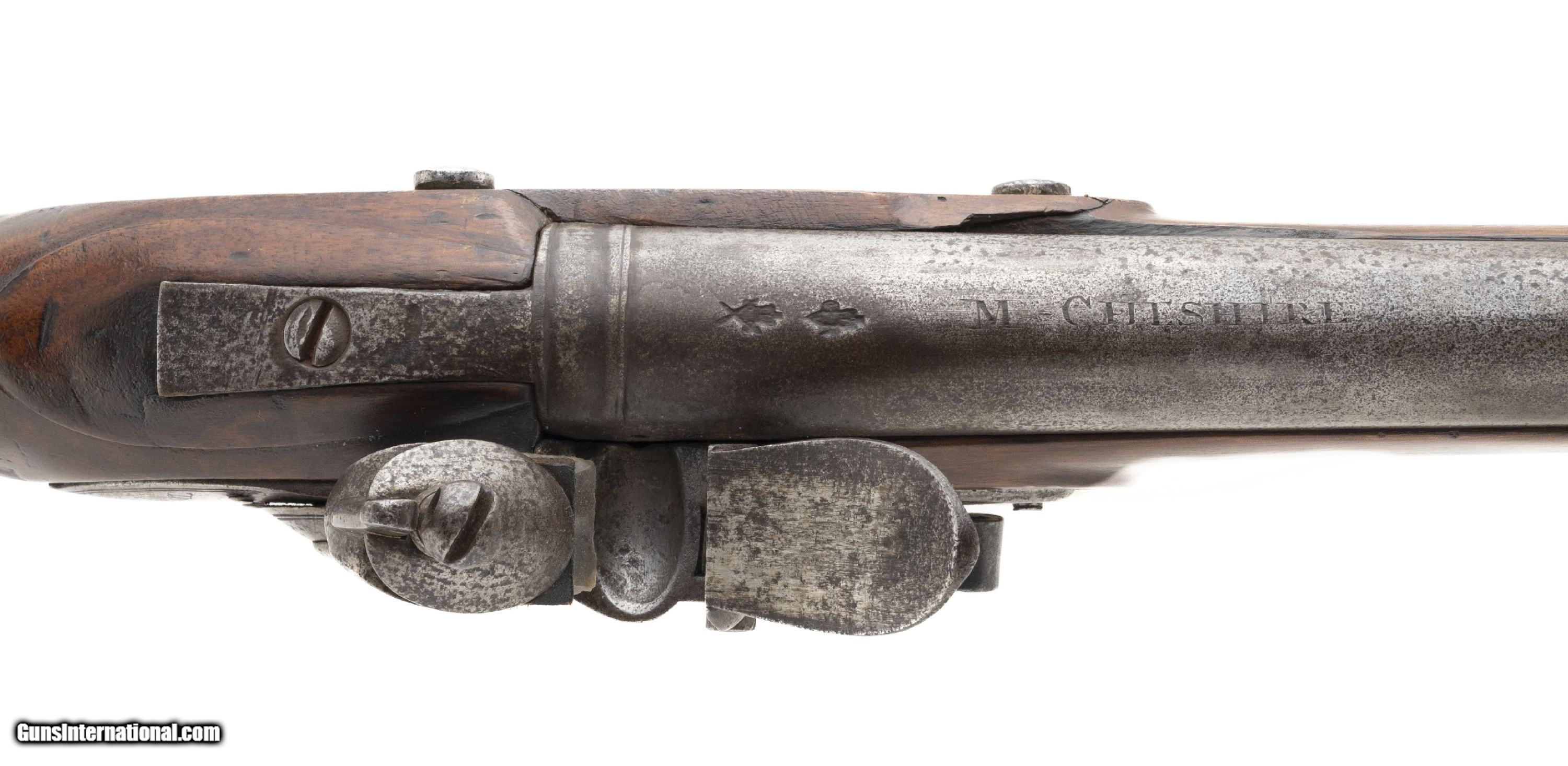 Description: "British Brown Bess Pattern 1777 Short Land Musket. Beautiful 1777 Short Land pattern Brown Bess musket. The tower and crown GR look to be engraved. Period of manufacture puts it between 1777-1782. Barrel has “M. Cheshire" engraved on top. Other Brown Bess musket have been noted with stamps like this one. Barrel could be tied to the 22nd Regiment of Foot. Metal locks to have been cleaned with pinprick pitting and has a gray patina. “12" is marked on the trigger guard. Unable to make out the marking on the thumb escutcheon. Stock shows handling and usage wear. Repair is noted on the right side. Small separation in the wood is noted in front of the lock plate. In The Brown Bess book, by Erik Goldstein and Stuart Mowbray it says, “the Pattern 1777 must be counted as a British weapon of the War of Independence until proven otherwise… However Revolutionary War service to any particular example remains problematical." Really neat piece of history! Antique: Yes Price: $14,500.00 Contact Seller |