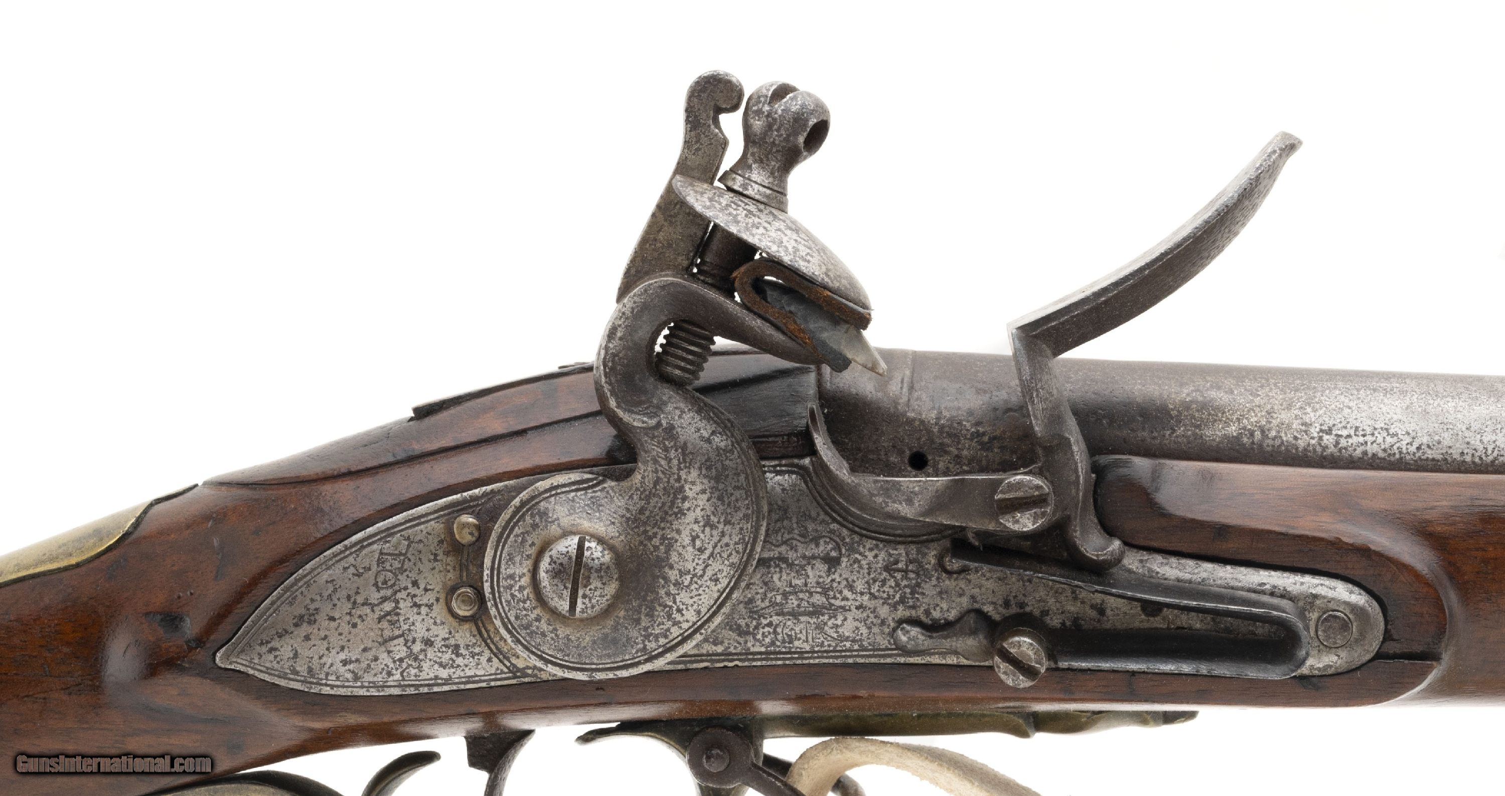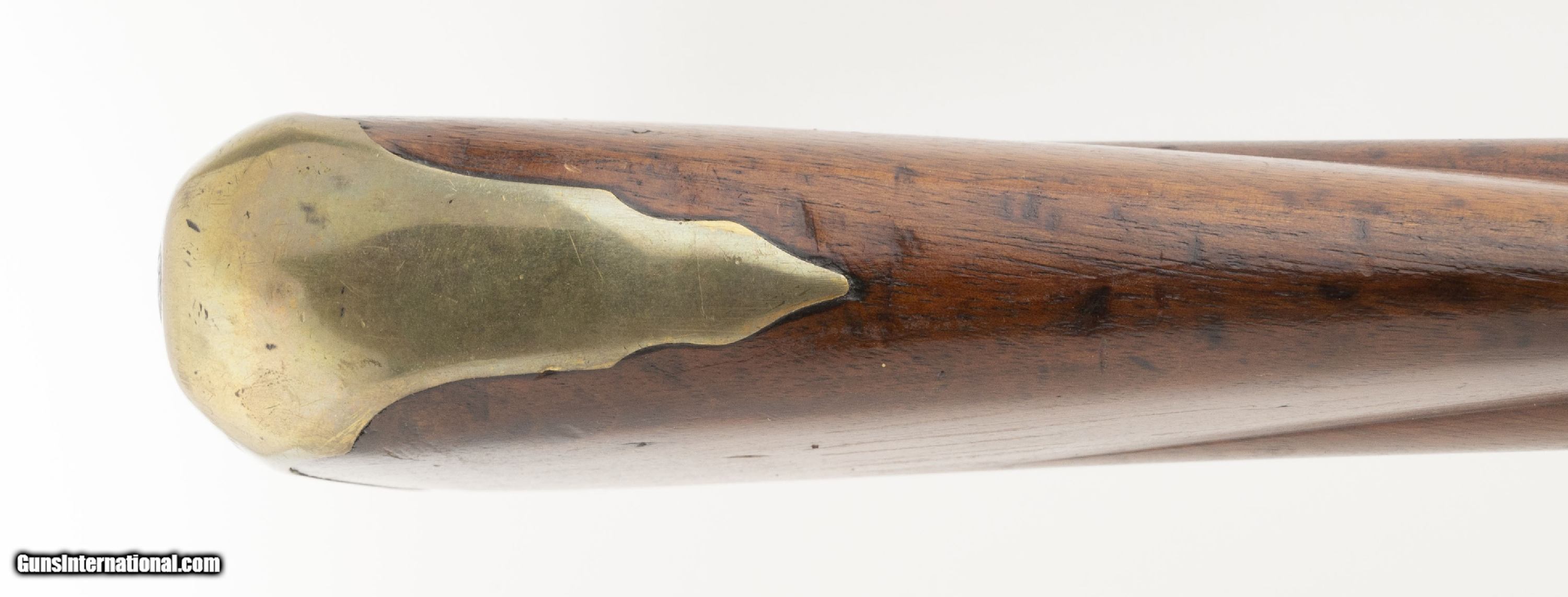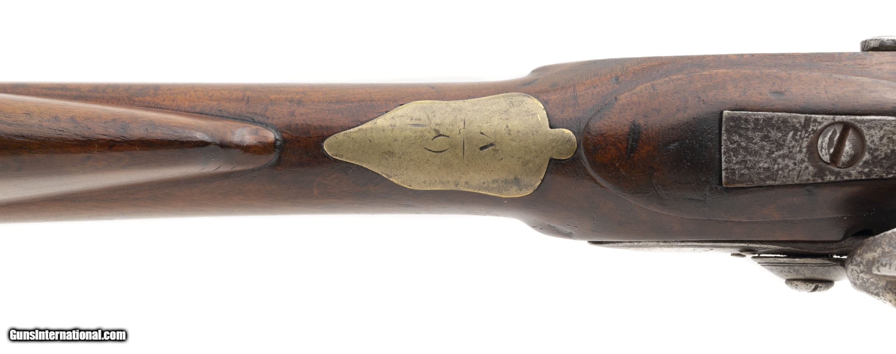 Description: "British Brown Bess Pattern 1777 Short Land Musket. Beautiful 1777 Short Land pattern Brown Bess musket. The tower and crown GR look to be engraved. Period of manufacture puts it between 1777-1782. Barrel has “M. Cheshire" engraved on top. Other Brown Bess musket have been noted with stamps like this one. Barrel could be tied to the 22nd Regiment of Foot. Metal locks to have been cleaned with pinprick pitting and has a gray patina. “12" is marked on the trigger guard. Unable to make out the marking on the thumb escutcheon. Stock shows handling and usage wear. Repair is noted on the right side. Small separation in the wood is noted in front of the lock plate. In The Brown Bess book, by Erik Goldstein and Stuart Mowbray it says, “the Pattern 1777 must be counted as a British weapon of the War of Independence until proven otherwise… However Revolutionary War service to any particular example remains problematical." Really neat piece of history! Antique: Yes Price: $14,500.00 Contact Seller |