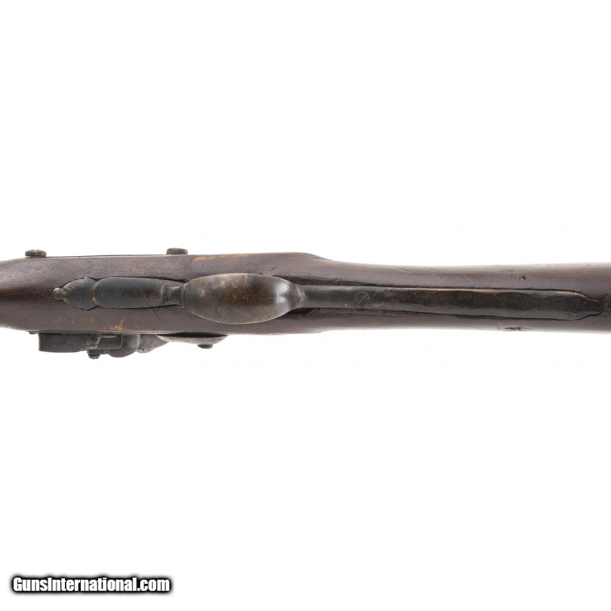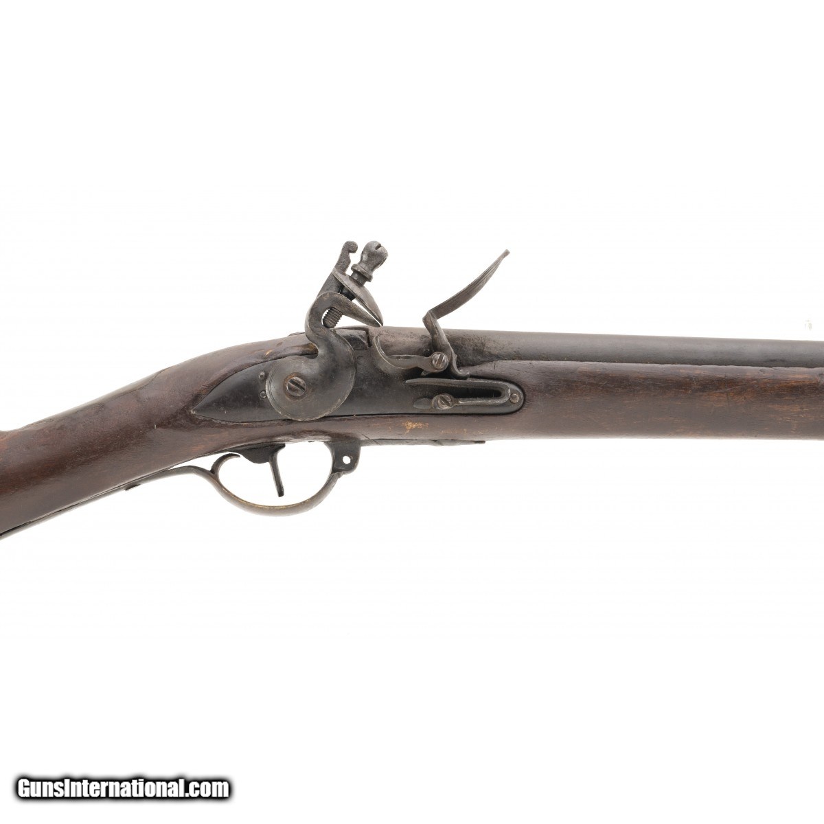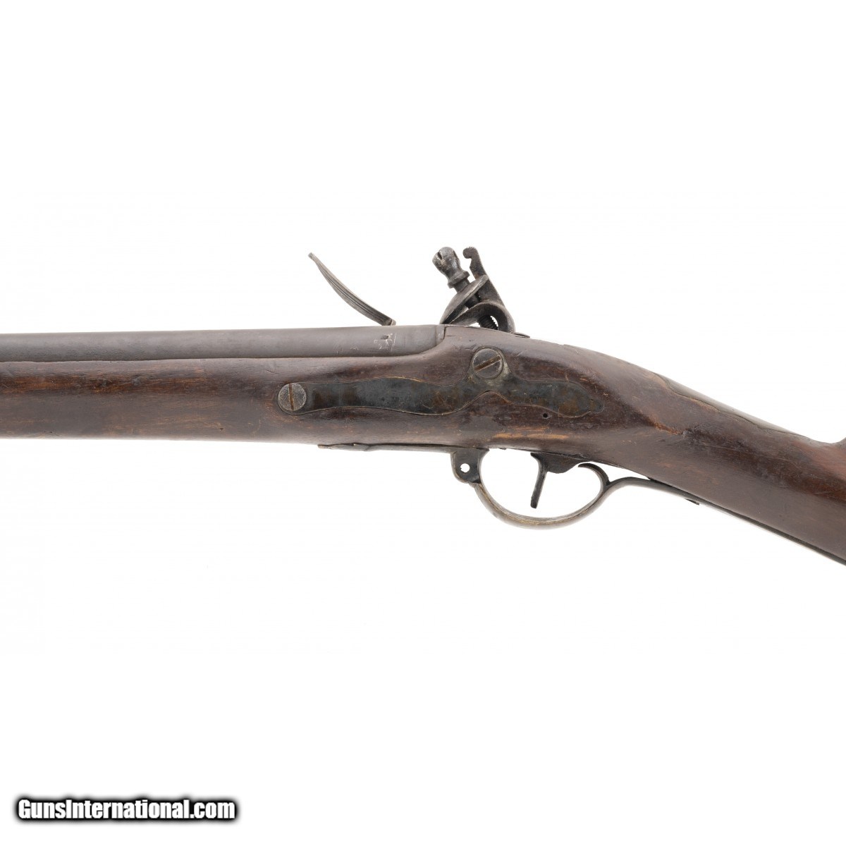 Description: "Made circa 1820. 78 caliber with a 42" barrel. Metal has a brown patina on both barrel and the lock. This gun is a reconversion. The wood has been repaired at the wrist. The furniture is similar to a 2nd model musket. This could be a Belgian copy. SOLD Antique: Yes |
