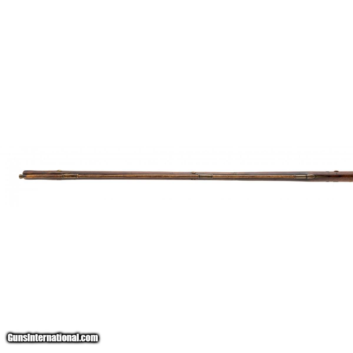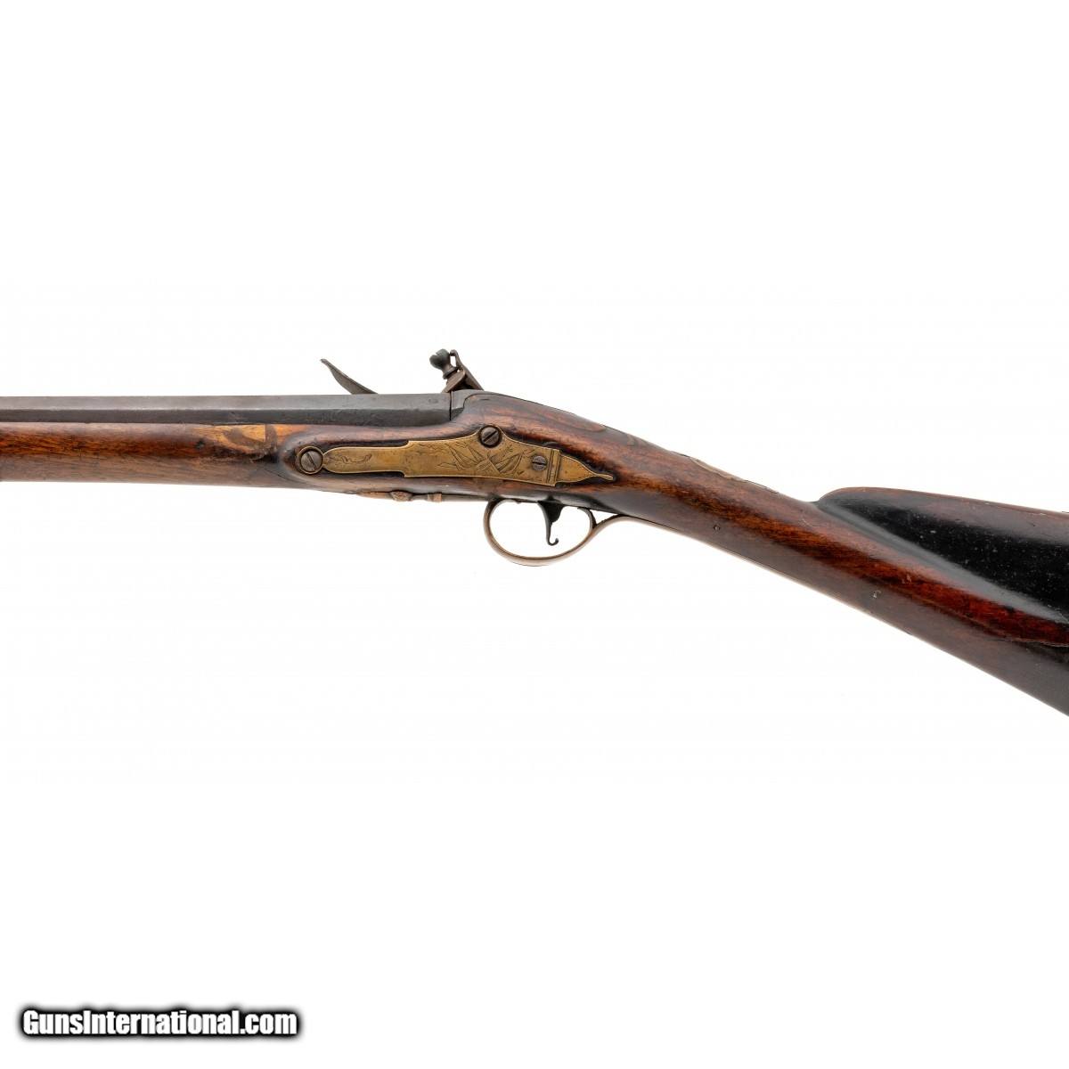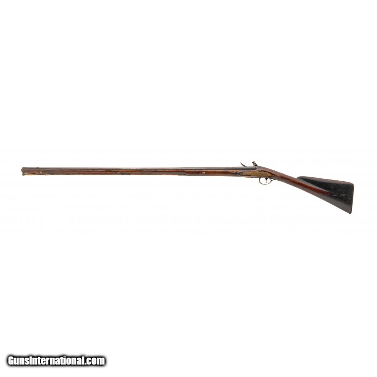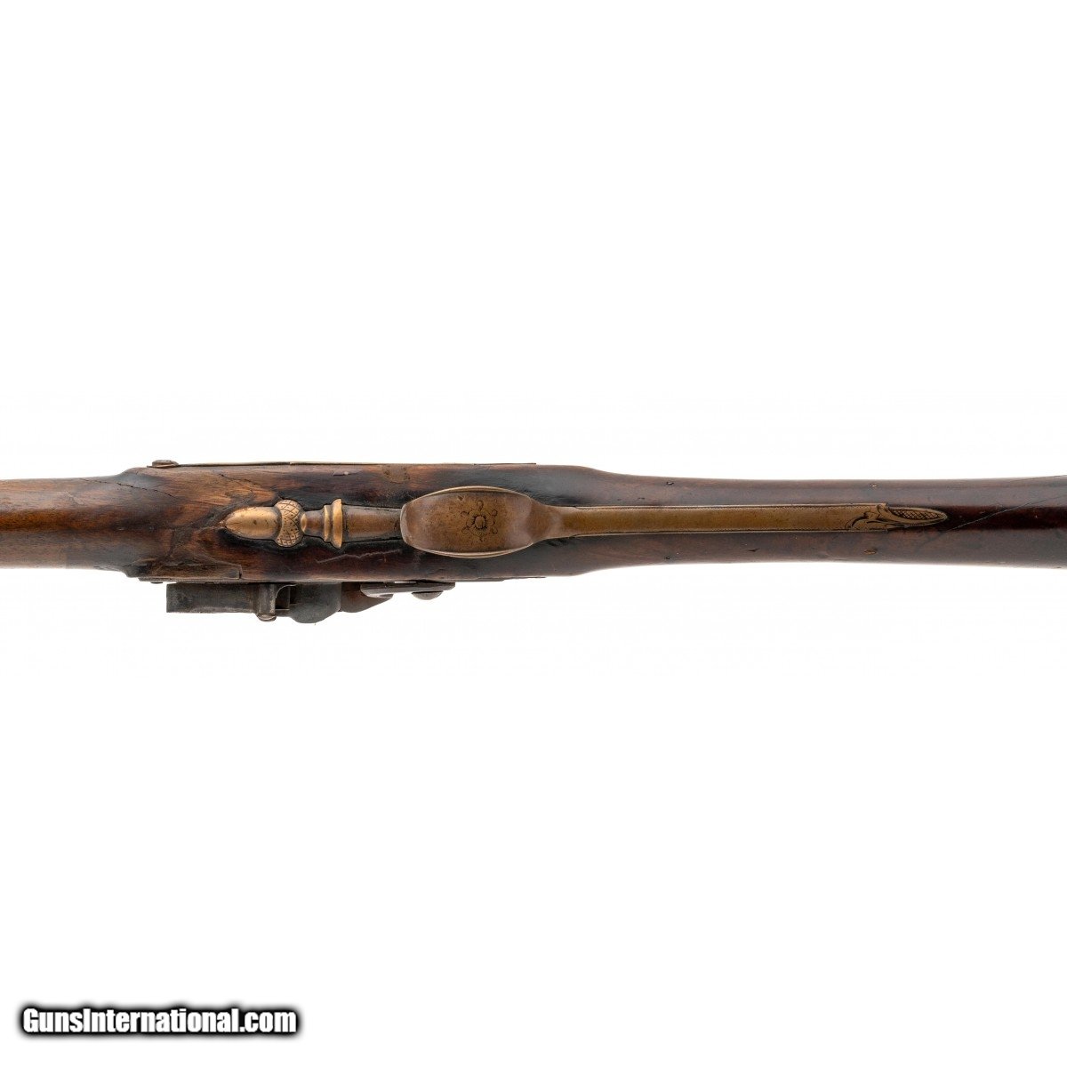 Description: " NSN, circa 1780's-1790's, .75 caliber, 39.25"" octagonal to round smooth bore barrel. Barrel and lock plate are a dark grey patina, lock is marked ""Ketland /& Co."" . Roughly 20"" of the stock was replaced with a period repair, scattered nicks, dings and scratches are visible throughout. Action holds at half and full cock. SOLD Antique: Yes |