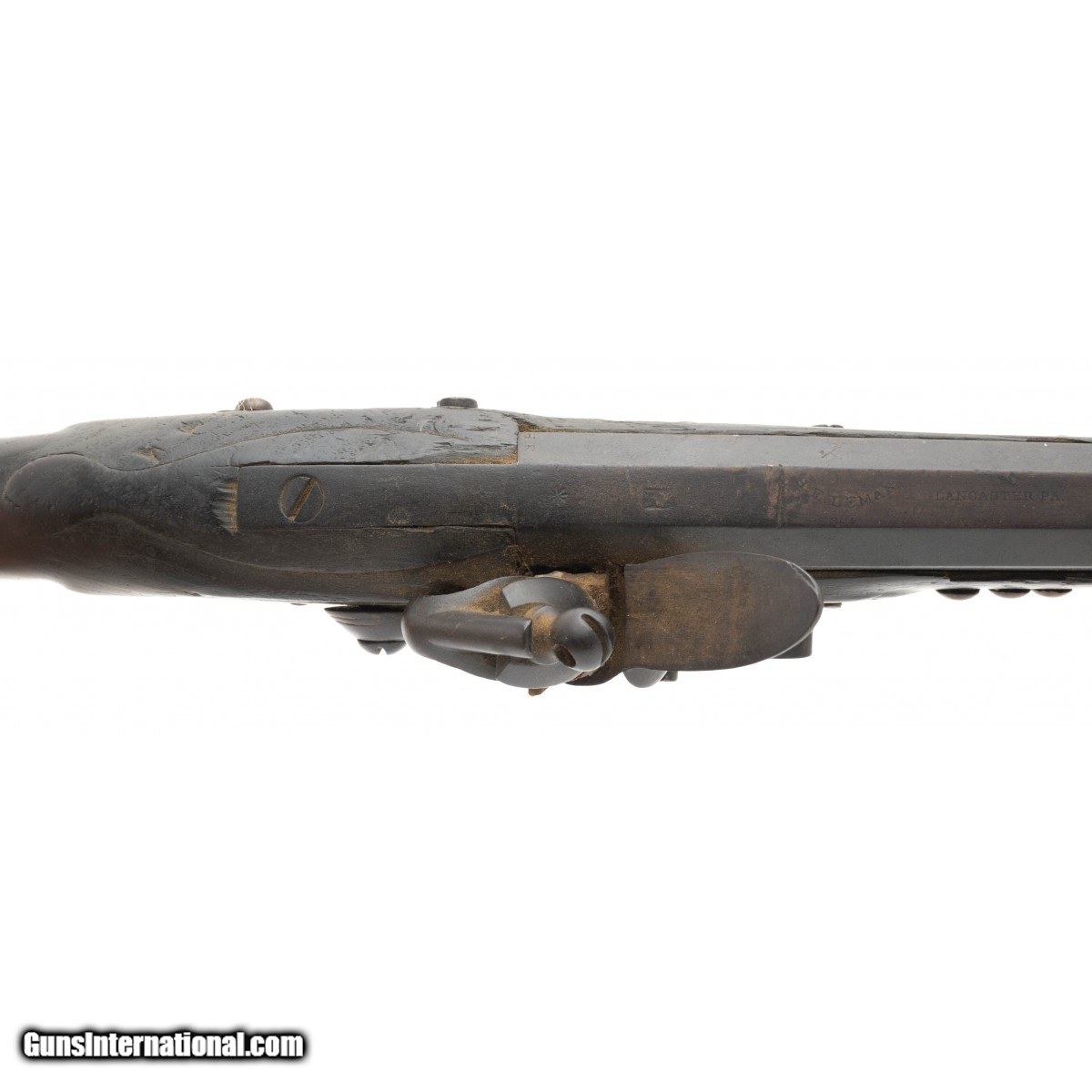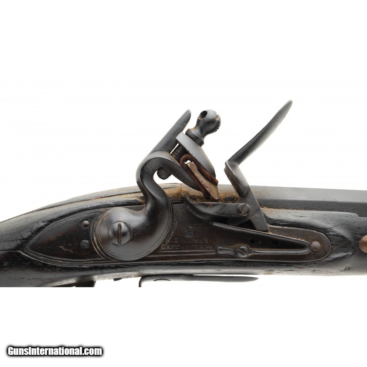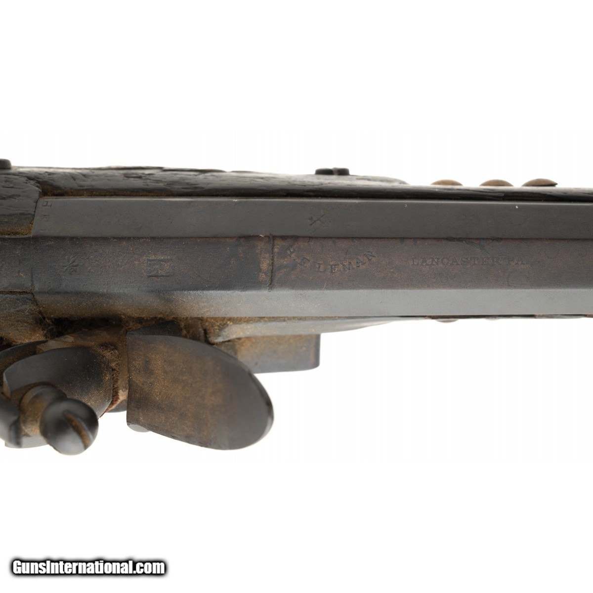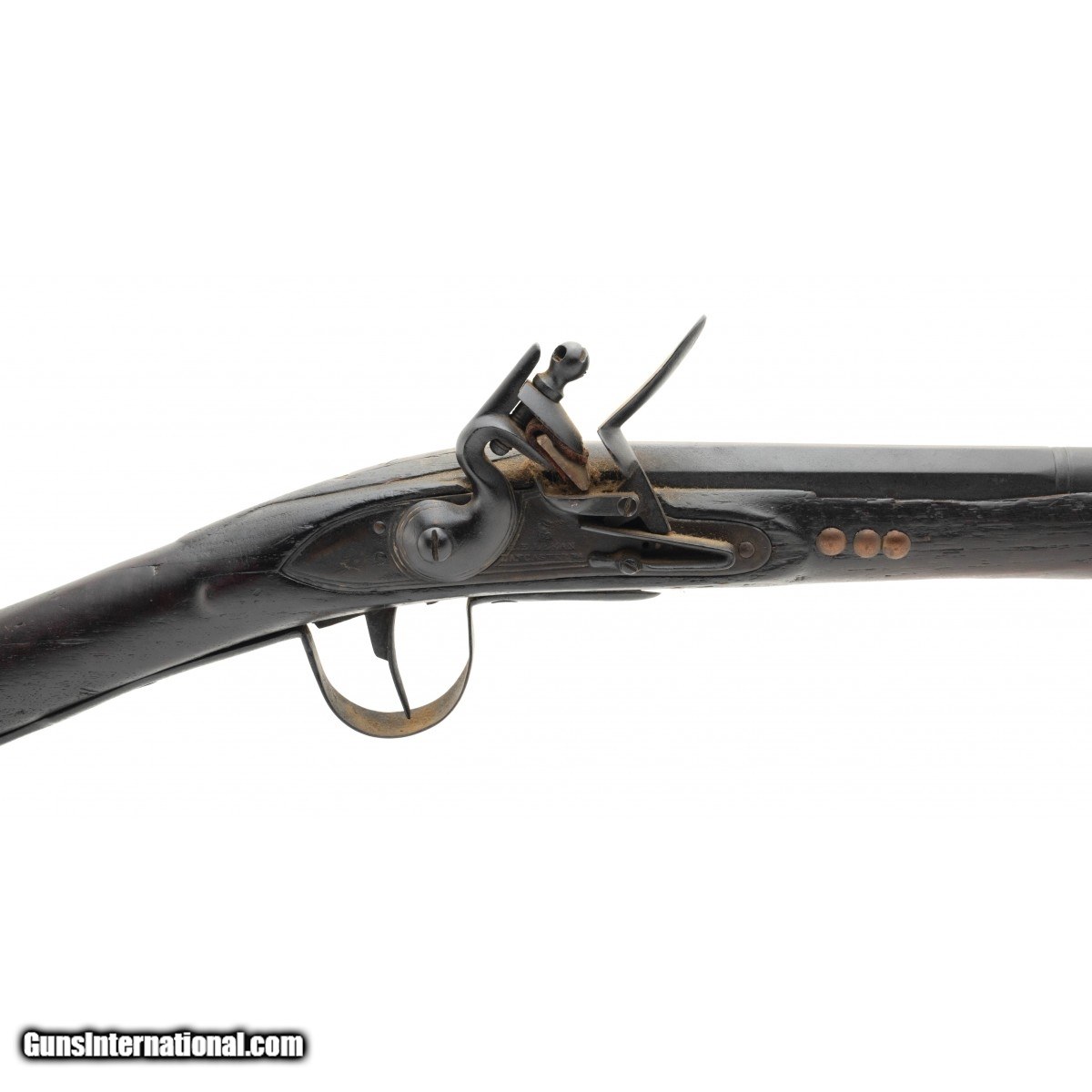 Description: "Made 1860s. 70 caliber with a 29 ½" barrel. This gun is in Flintlock configuration despite being made later than the traditional flintlock period. This is a real deal Indian trade musket that has all the signs of Indian use. The metal is untouched and in “attic condition with a dark brown patina. Wood shows heavy use. The stock has been decorated with brass tacks. The butt plate is missing which was common on Indian guns as they used the butt plates for hide scrapers. This gun has the typical enlarged trigger guard and serpentine side plate of trade muskets. Both the lock and barrel has the H. E. Leman markings. Very neat Indian used trade musket! SOLD |