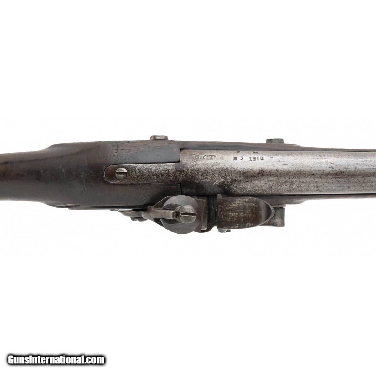 Description: " L. Pomeroy Model 1808 .69 caliber flintlock musket. Musket is in overall good condition. Metal has a grey patina with mottled oxidation. Lock plate is marked ""S.N.Y"" only. Barrel is unique, being marked ""S. CT 1812"". Stock is good with handling wear. Two initials and dates are carved into the butt stock left side. Great example of a War of 1812 shoulder arm that saw services in to the late 1820's SOLD Antique: Yes |