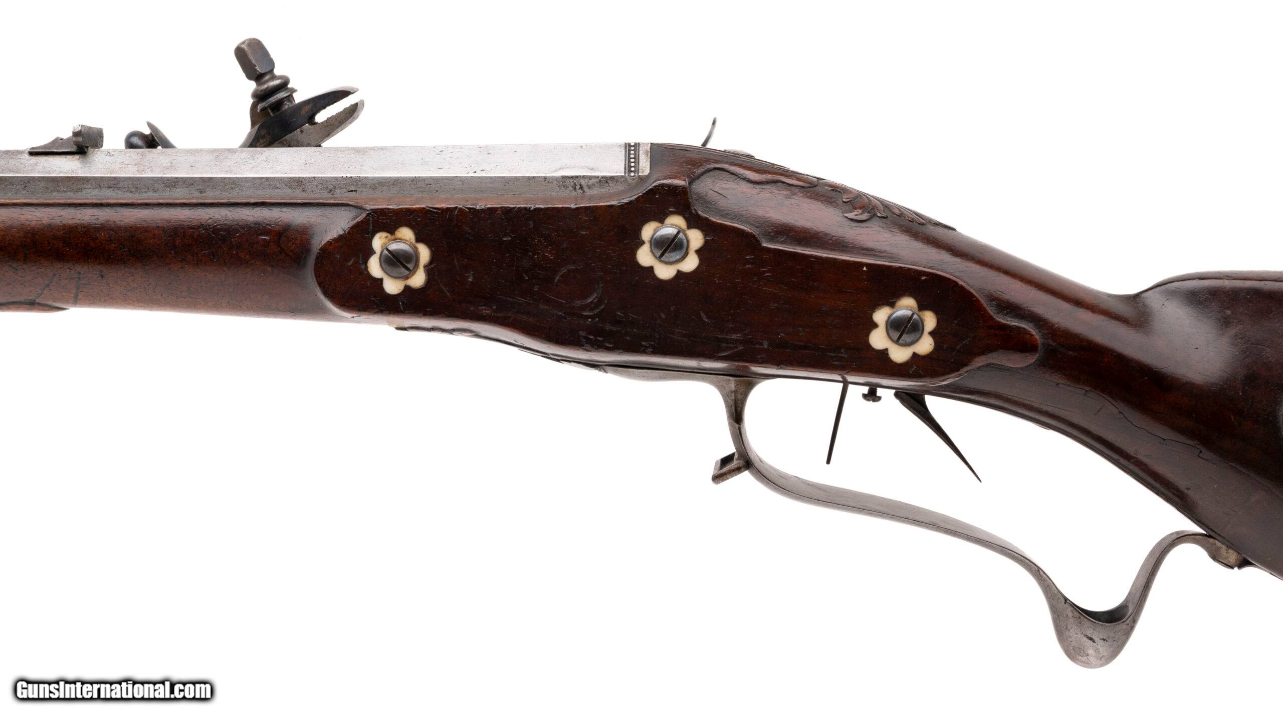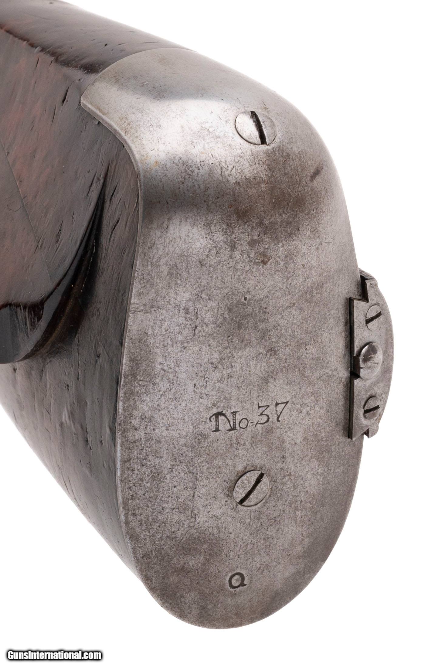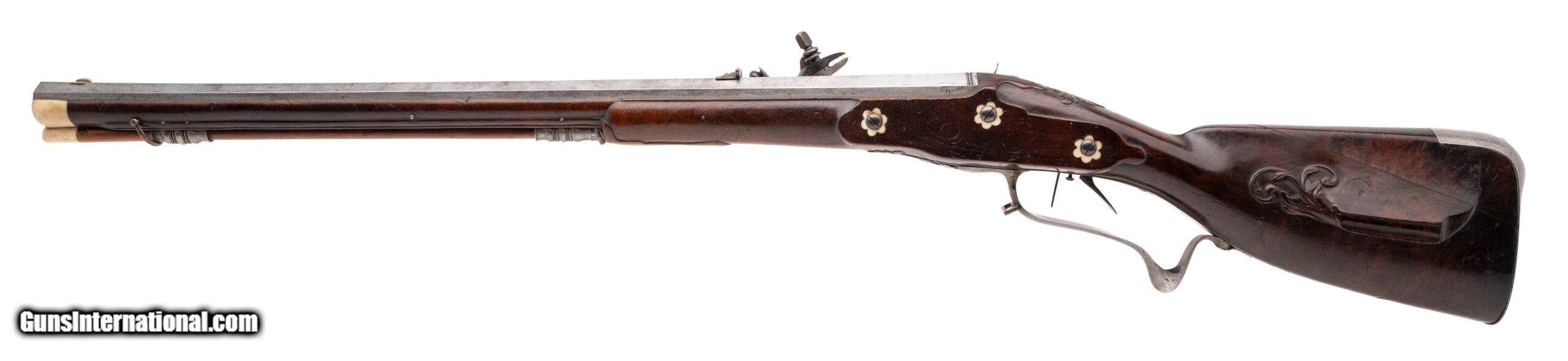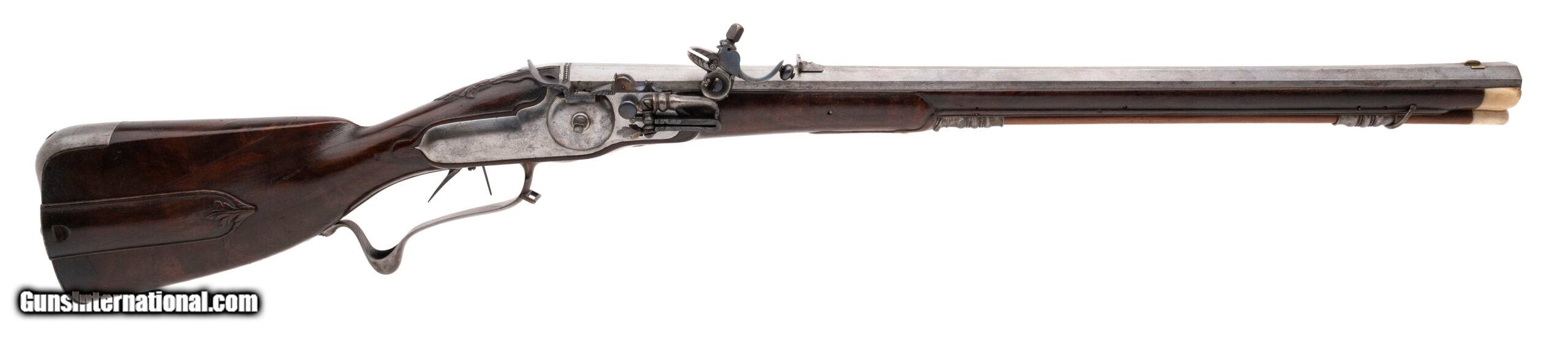 Description: "NSN. Made circa 1660-1670. 57.5 caliber with a 26" barrel. This is a very fine example of a Dutch or German military Wheellock carbine. While it is military, there are still embellishments such as the bone tips on the forearm and ram rod tip as well as the screw collars opposite of the lock plate. The stock also has relief carved scrolls near the cheek piece and near the upper tang. This is a very sharp gun in the white. There is a repair from near the comb to midway through the butt of the stock. It is almost indetectable. Engraved on the butt plate is “No 37" indicating a military gun and this is the rack number. This is a later gun being made around 1660. At this period, the stock design and shortness of the barrel as well as a swamped muzzle give this a Jaeger Rifle appearance. Very Fine unique Dutch Wheellock Military Carbine! Antique: Yes Price: $12,500.00 Contact Seller |