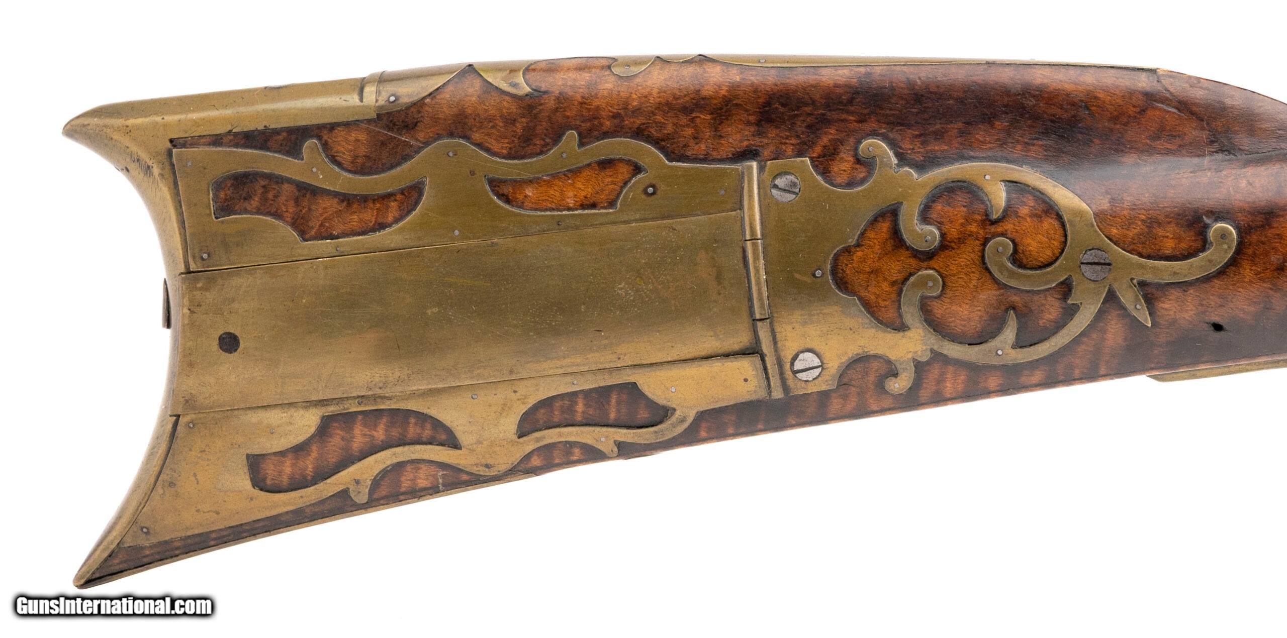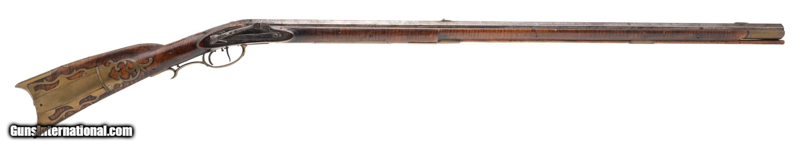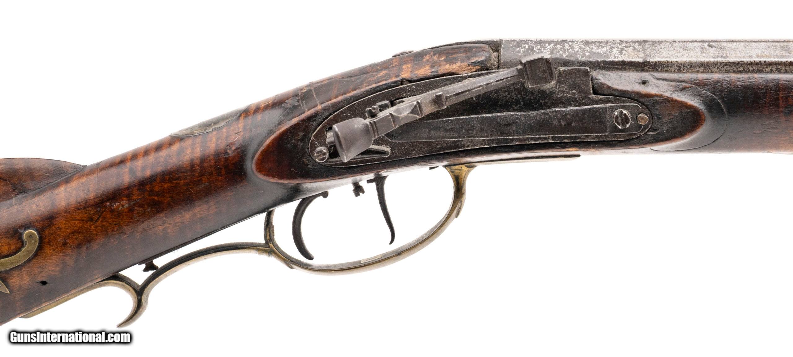 Description: "Made circas 1840s. 50 caliber with a 36.5" barrel. This is a scarce Kentucky style rifle. The barrel has a light gray patina on the barrel. This gun has an attractive pierced metal patch box. There are no markings on the barrel or lock. Very fine Mule Ear Rifle! Antique: Yes Price: $3,995.00 Contact Seller |