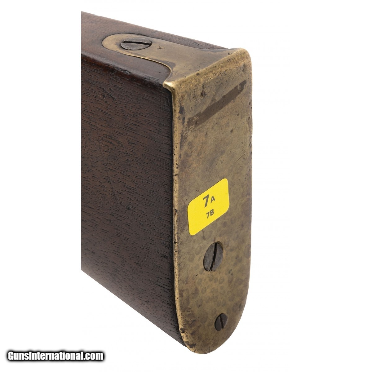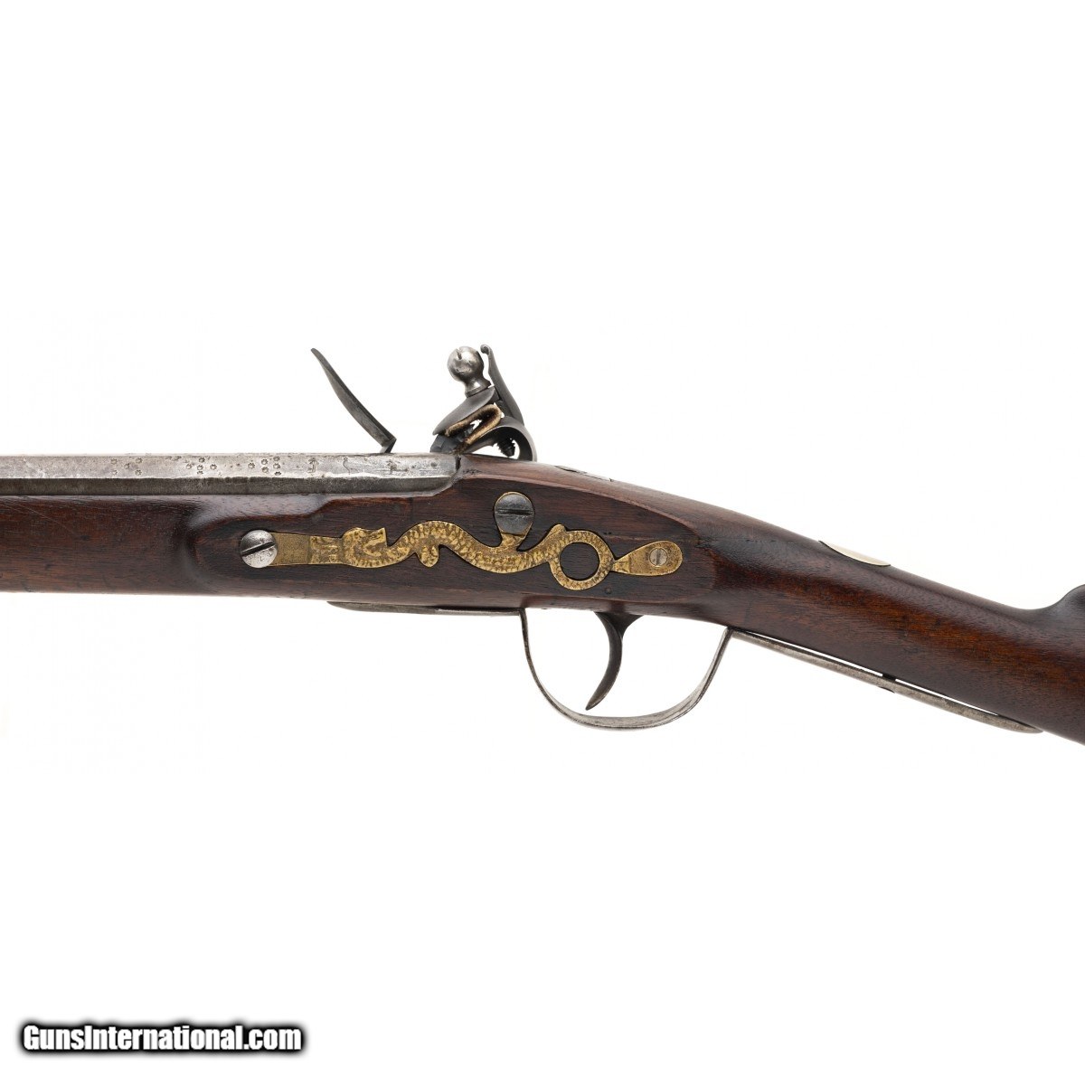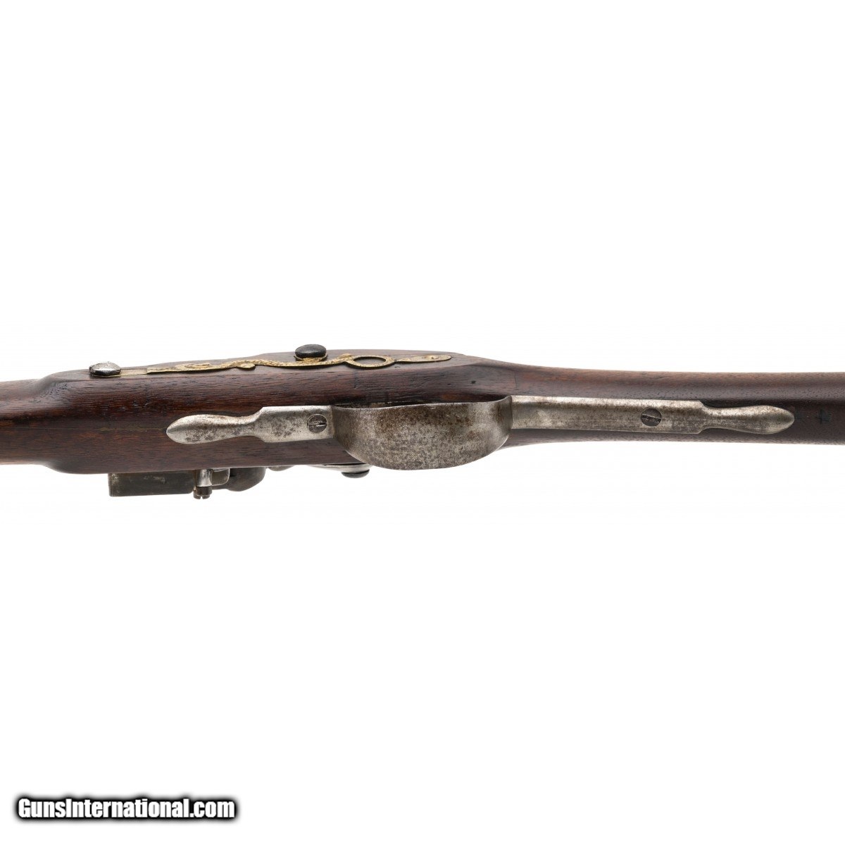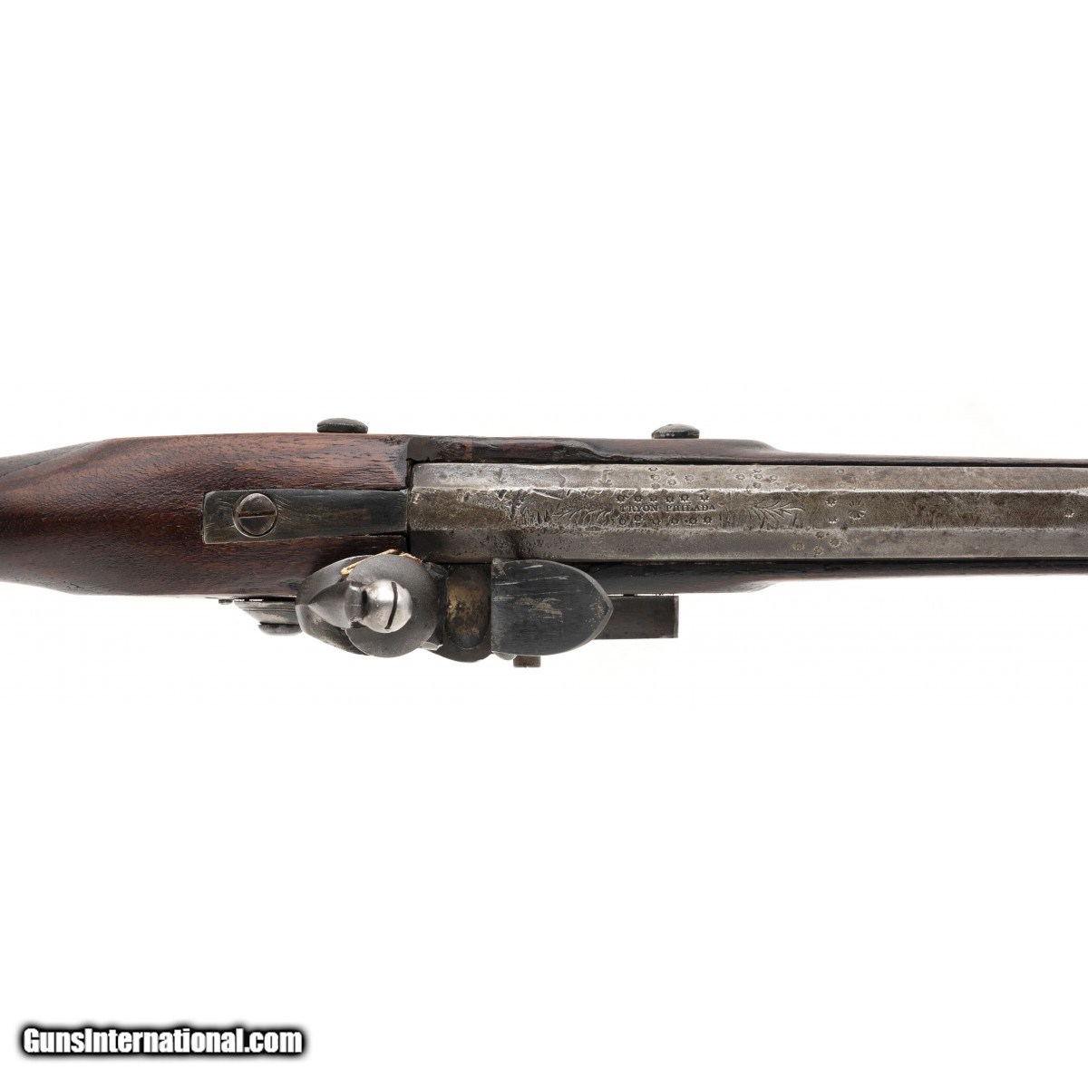 Description: " NSN, circa 1830-1840, .62 caliber, 36"" octagonal to round pinned barrel. Barrel is a light grey patina with most surface oxidation noted at the breech. Barrel is marked ""Tryon Philada"", lock is marked ""Tryon Philada"" Action holds at half and full cock. Walnut stock is very good with light handling wear visible, six silver oval inlays are on the stock, wrist and toe. Serpent side plate and large Iron trigger guard are classic characteristics of trade guns. Action holds at half and full cock. SOLD Antique: Yes |