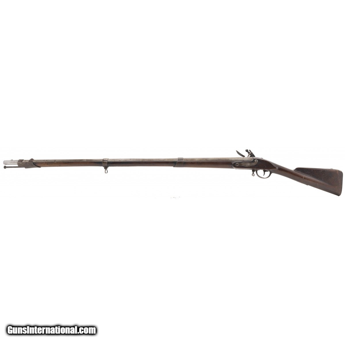 NSN .69 caliber flintlock contract musket with a 43"" round smoothbore barrel. Metal is a smooth light grey patina, barrel is marked ""P"" ""M"" /IM 1808. Stock is good with some dings, scratches and mars visible. Some wood loss is noted between the middle and front barrel band. ""NC"" is marked on the right side under the butt plate. Action functions correctly and lock is unmarked.