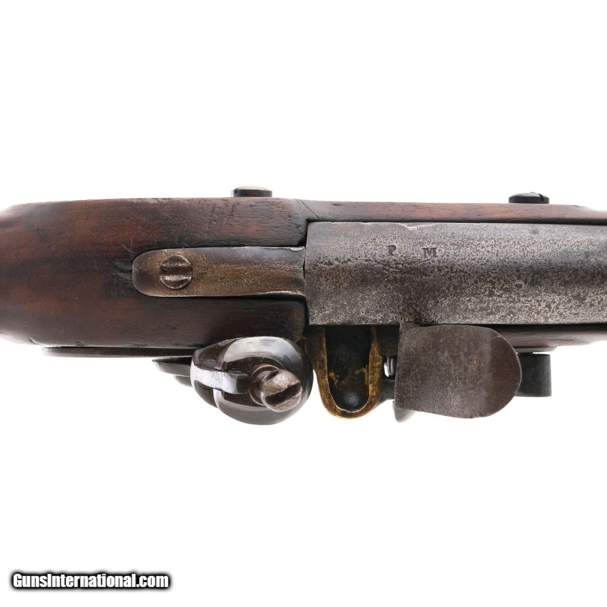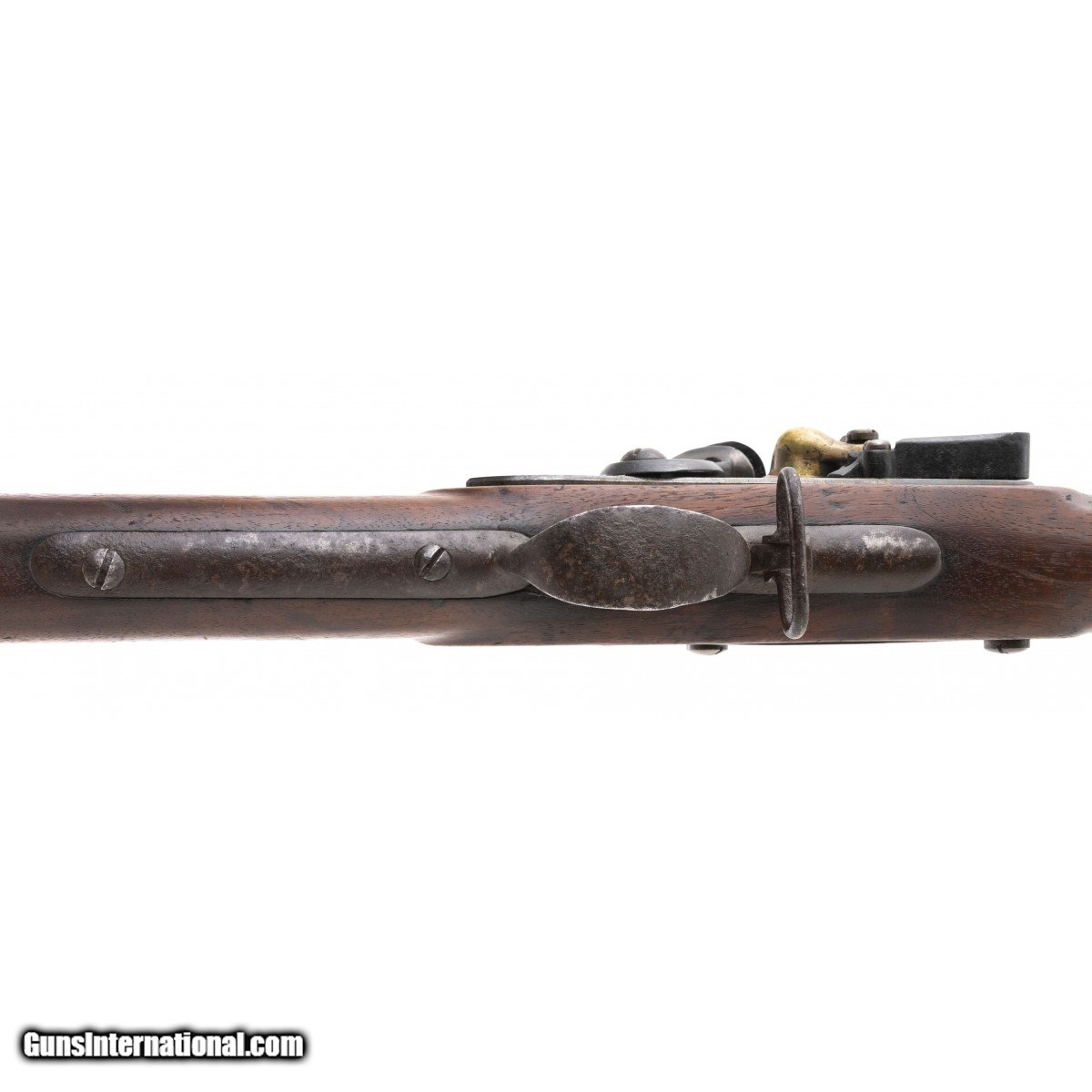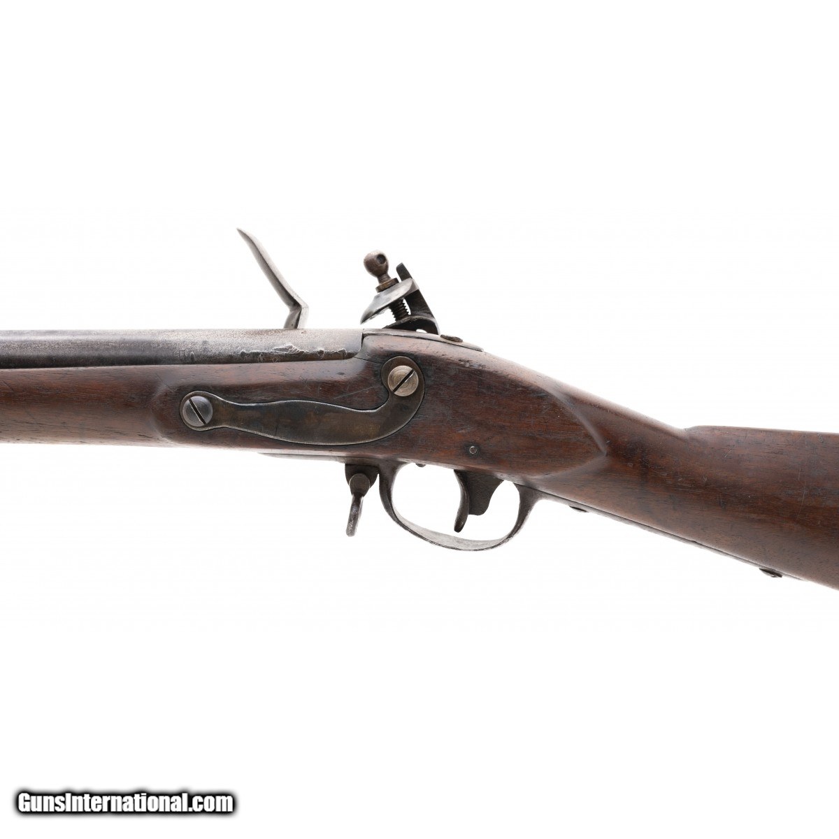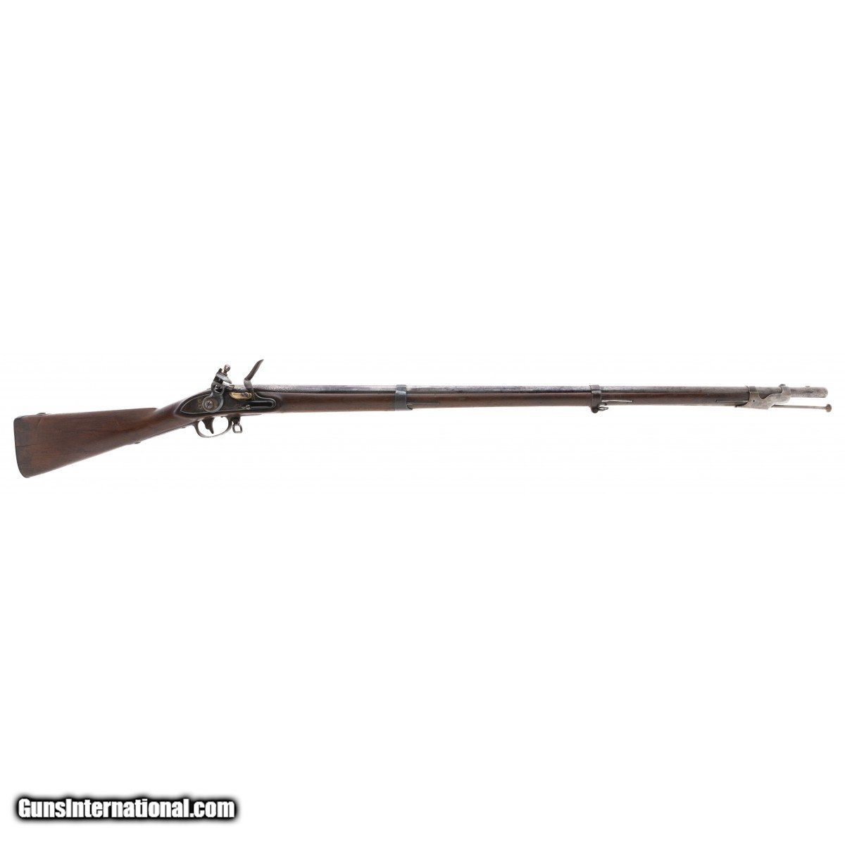 Description: " NSN, .69 caliber, 42"" round barrel circa 1820's flintlock musket with a Whitney lock plate. Internals are original and most external parts are aged replacements. Metal is a light smooth grey patina with oxidation noted by the pan. Stock is good with minor handling wear noted. Action functions correctly. SOLD Antique: Yes |