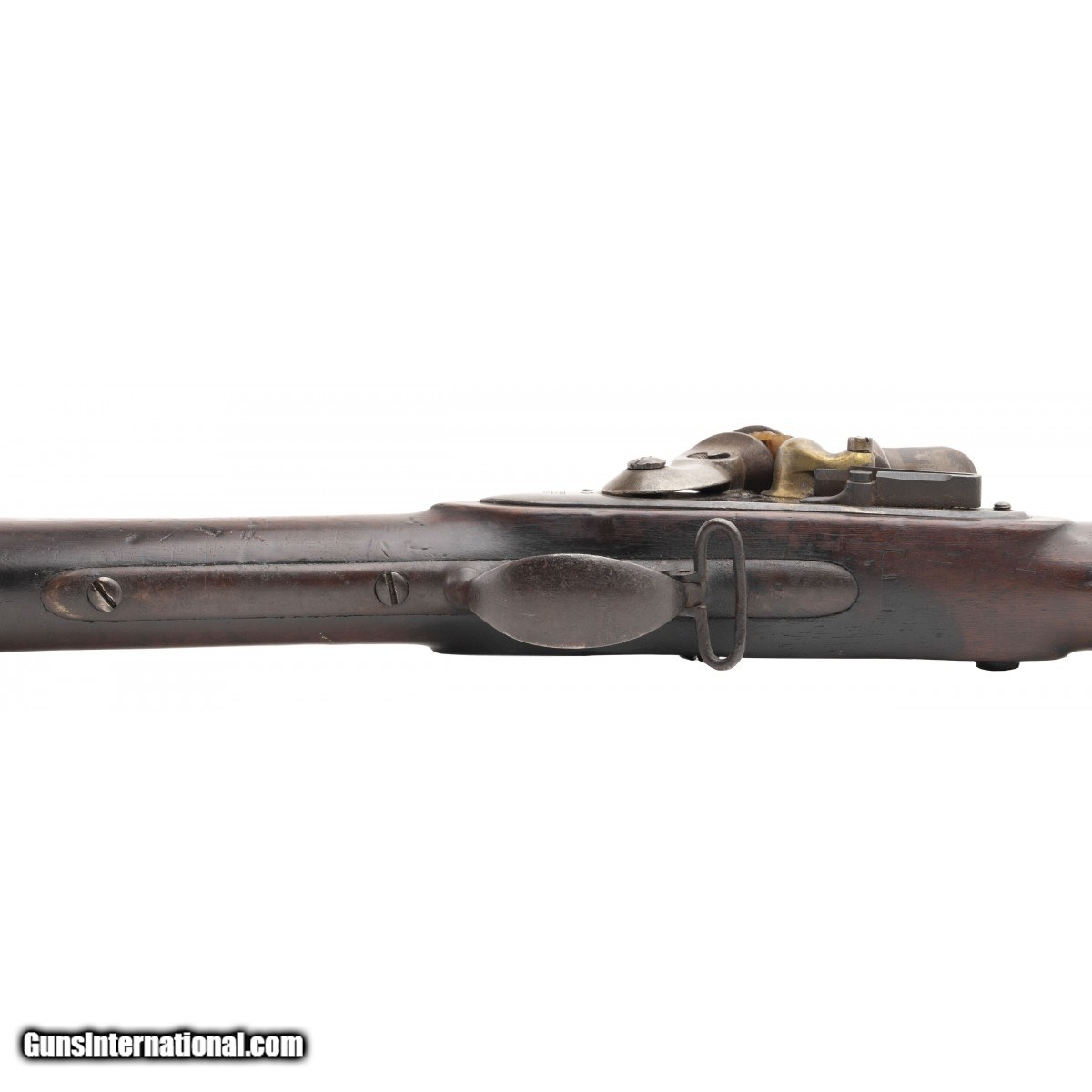 U.S. Springfield model 1816 Type III musket that has been reconverted back into its original flintlock configuration. Metal is a smooth dark brown patina. Wood is good with initials carved on the butt-stock, wood loss is noted by the barrel tang. Lock plate is dated 1835. Action functions correctly.