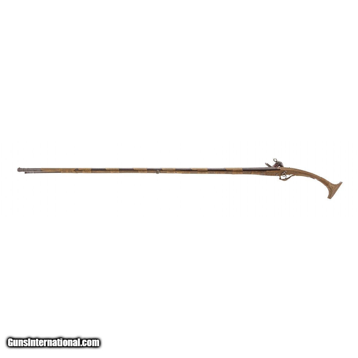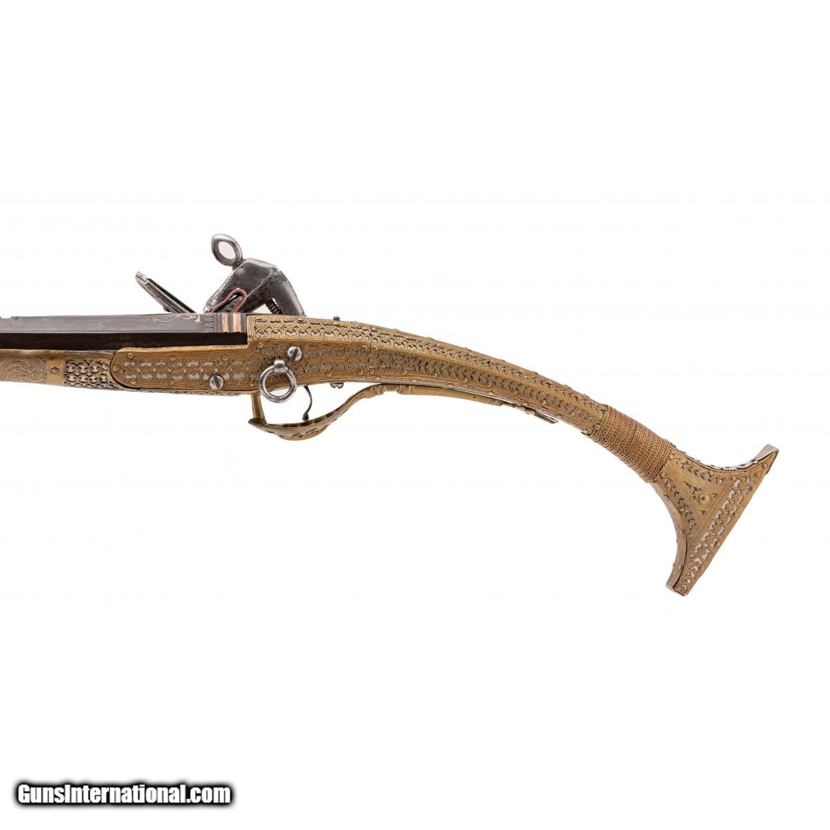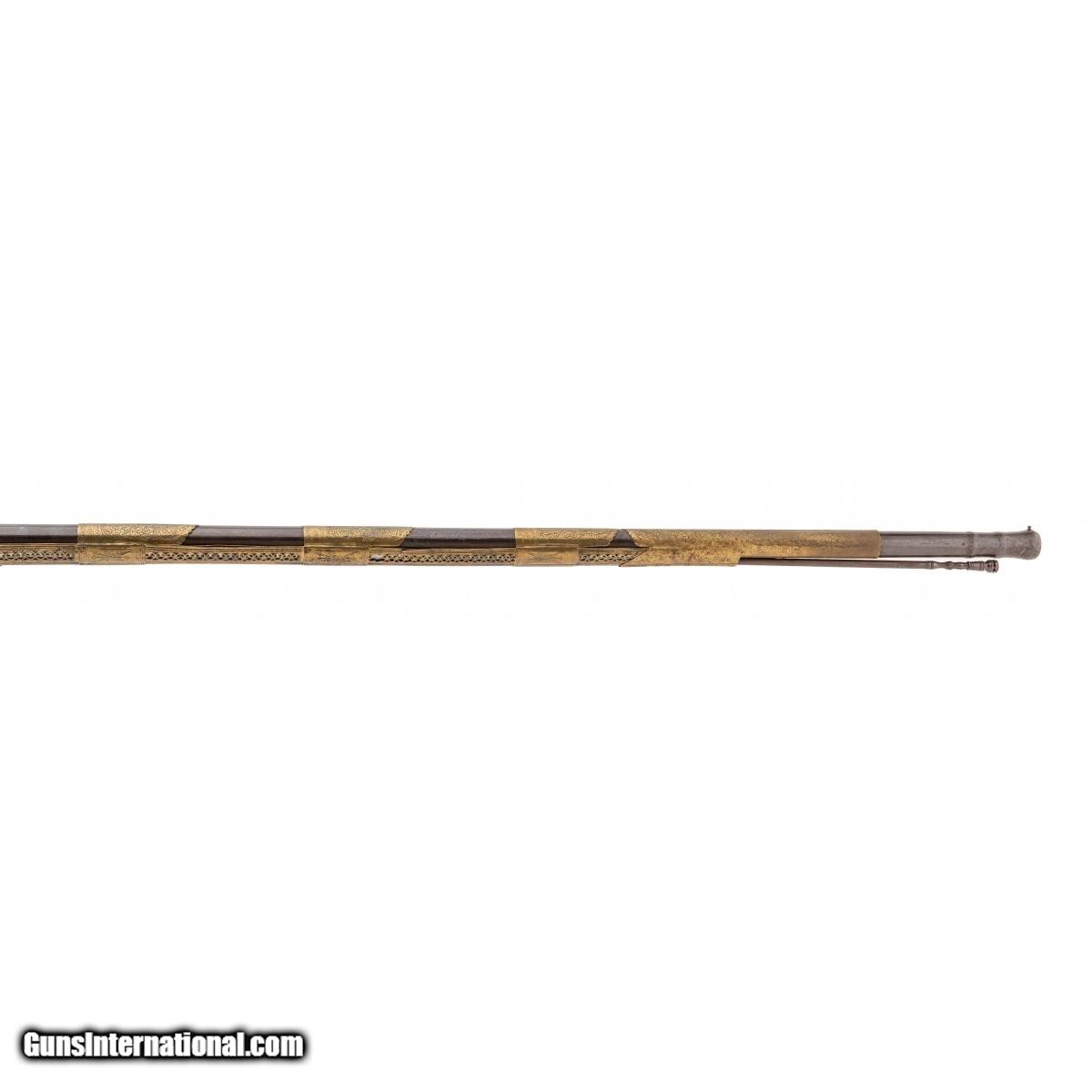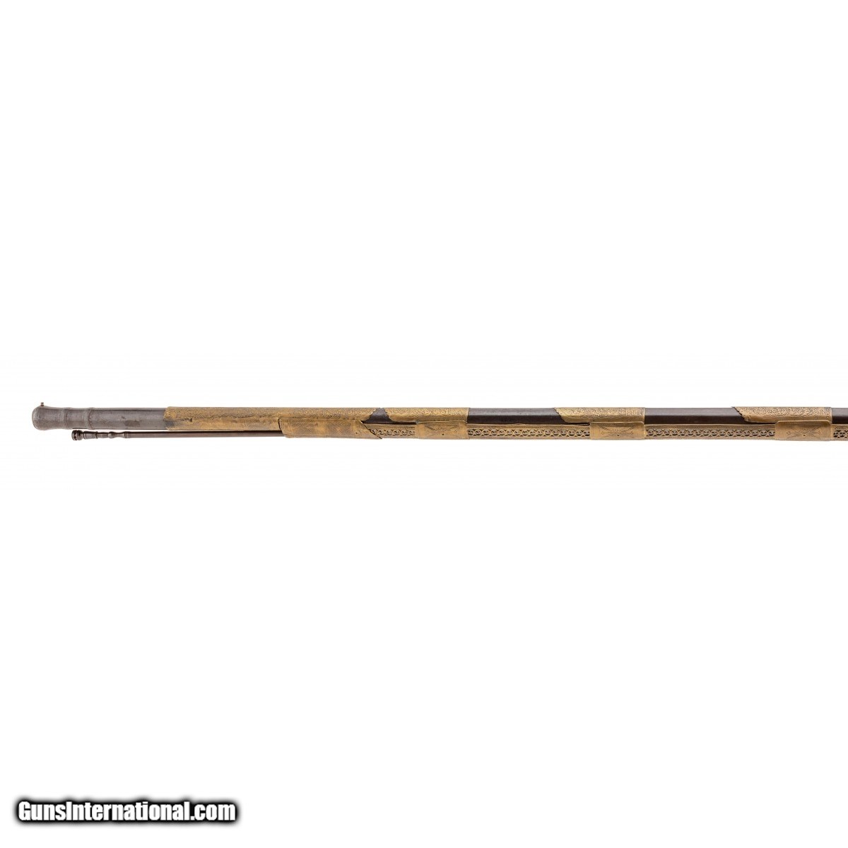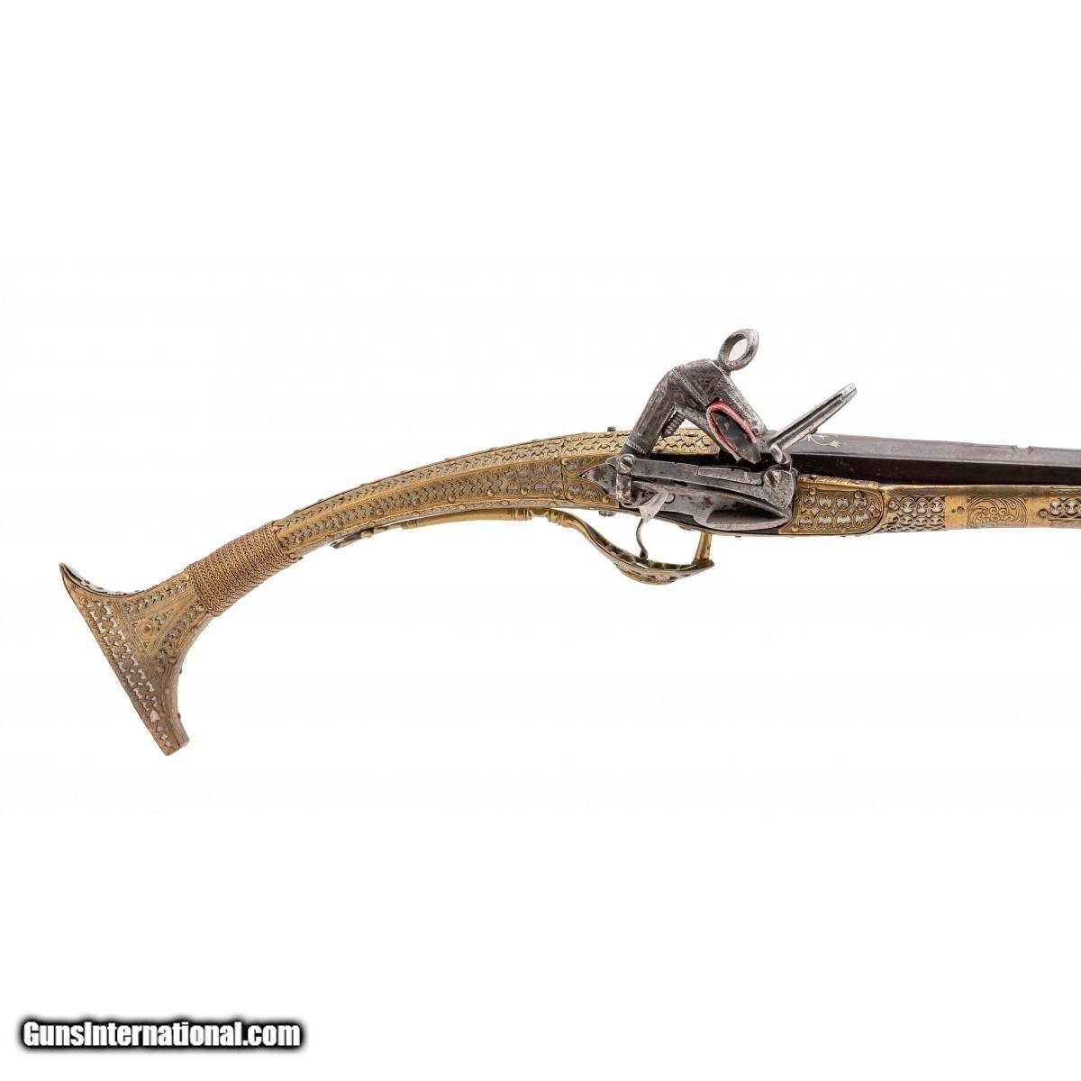Description: "Made circa 12800. This is an exceptional example with first class adornment. The pierced metal stock is superbly made with very fine engraving. The grip ia wrapped in a brass rope. The barrel is Italian with a flared muzzle. The tang is inscribed and dated 1837. Extremely fine Balkan Arnautka Musket! SOLD Antique: Yes |