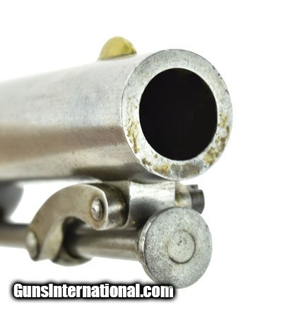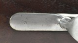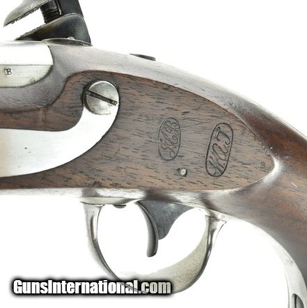 Description: U.S. Model 1836 Flintlock Pistol. Dated 1842 by R. Johnson, Middletown Connecticuter. This pistol in new, unfired condition. The metal parts “in the white” are perfect. The stock is crisp with raised grain. The lock has 100% of its case colors, as does the frizzen and cock. Inspector cartouches are perfect. If you want a top condition 1836, this is it! The Model 1836 has long been considered the most eye appealing U.S. martial flintlock pistol by many well respected collectors. SOLD |