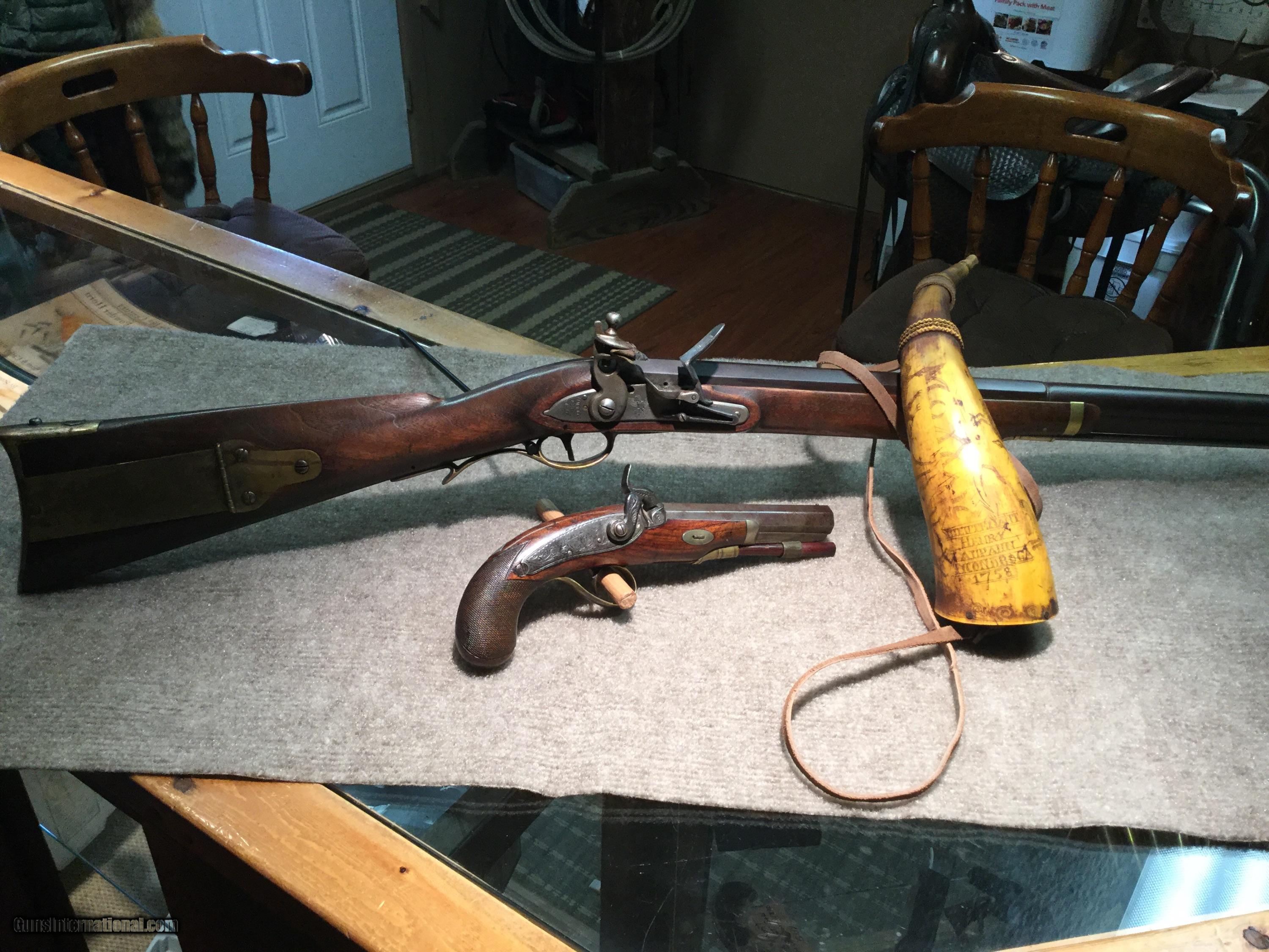 Description: This is a 1803 Harpers Ferry .54 cal US flintlock Rifle . This Rifle was hand made copy 1803 Harpers Ferry . This .54 cal 33” barrel Rifle was made in 1969 by Larry Janoff very well known Artist , and frontiers man , Trapper. Gun maker . This 1803 Harpers ferry is an exact copy of the Original 1803 US Harpers Ferry ,Lewis & Clark Received around #15 1803 Harpers ferry Rifles for there over 2 year Expedition. Please see all pictures ,call for Questions 406-407-0698. NO. 3 day Inspections , All sales are final. Please call and look at all pictures. Rifle only $1899.00 . If you would like Rifle ,Flask, & Pistol .50 cal all three $3799.00. Free Shipping if you buy all three. Call Richard 406-407-0698 SOLD Antique: Yes Manufacturer: 1803 Harpers Ferry Model: Harpers Ferry Caliber Info: .54 Cal Barrels: 33” |