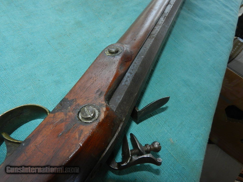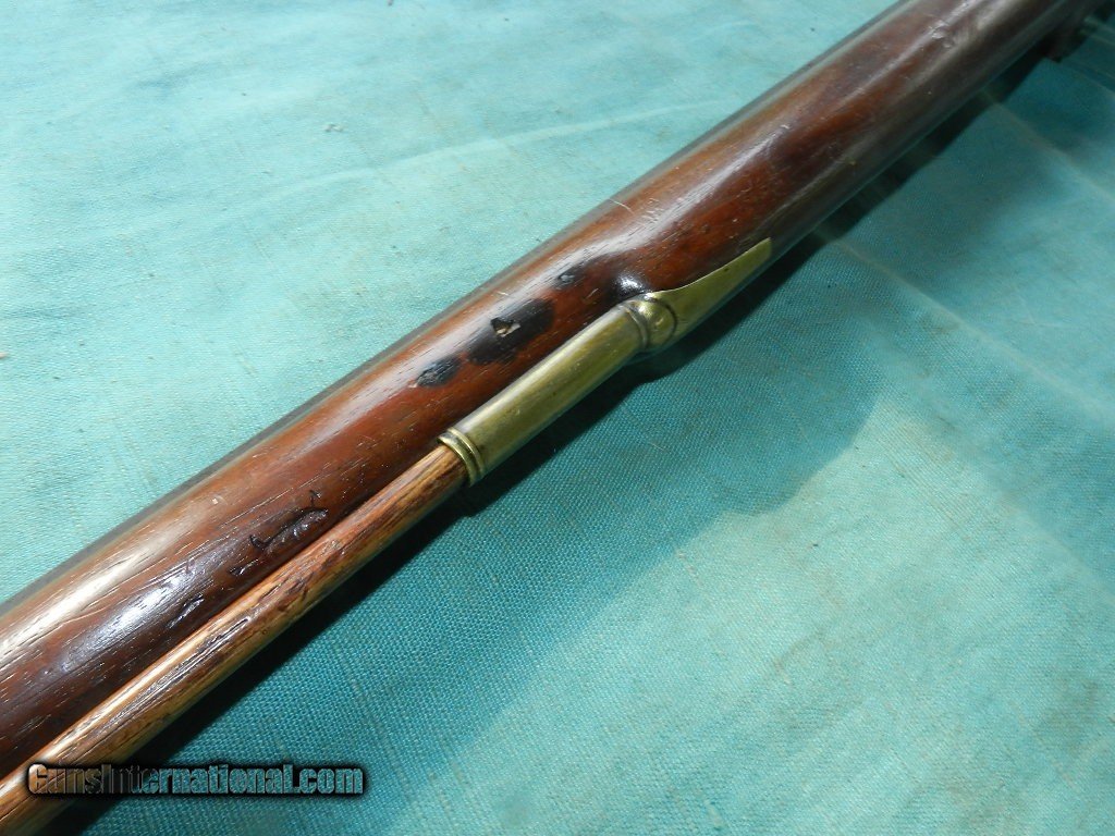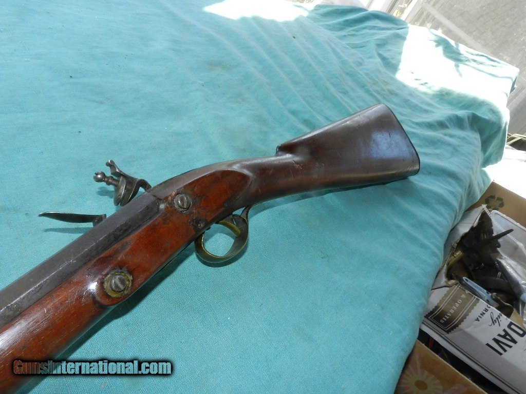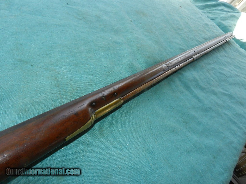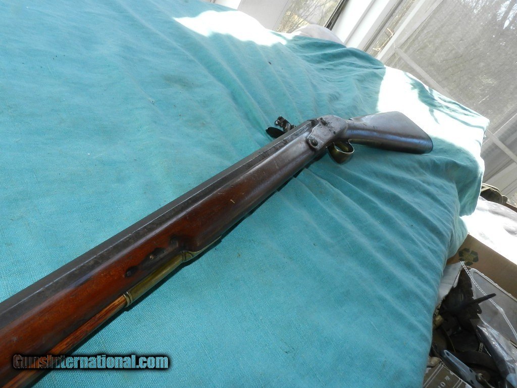 Description: An America made flintlock musket with a muzzle of about .56 cal.and a 41" octagonal barrel browned with age . The lock has no name , and no proofs on the barrel. the smooth bore is dark and dusty but doesn't look like a mess. Lock works but main spring is a little weak, and the tumbler shaft is narrow so the hammer is a little loose. The American walnut full stock is good and has brass furniture, comes with an aged oak ram-rod. Check my inventory of rare grips, unusual gun parts, Check my inventory of rare grips, unusual gun parts, barrels and holsters. Shipping may be higher than stated as shippers raise their prices twice year without notice! When buying a gun always have it examined by a competent gunsmith before shooting. To buy a gun from me you must get a direct email for me, with details, and shipping cost. We don’t have a web site .I prefer money orders or a check. Item ships when funds come in. If you can only pay with a card let me know. I try to keep guns affordable, which means I make less money than most dealers. You won’t get altitude sickness, or nose bleed, with my prices! I consistently have the best selection of older guns If you attempt to buy, you must still contact us for details . Best to email to buy. Sometimes a local person can stop buy and purchase before the gun is removed. Sometimes not home to get calls. Some guns are required shipment to a gun dealer near you for a transfer to you when it arrives. Otherwise many older or black powder guns ship to your door. With the widest selection of older guns at great prices, We don’t have a store, and sell on the internet only. I’m easy to get along with. Thank You. SOLD Antique: Yes |