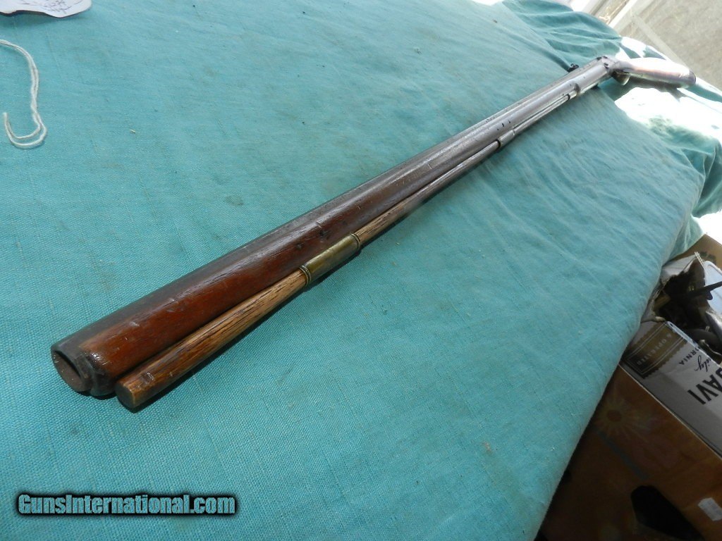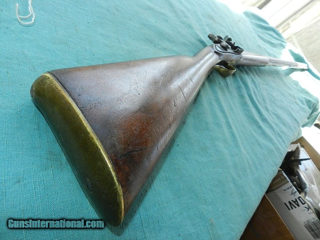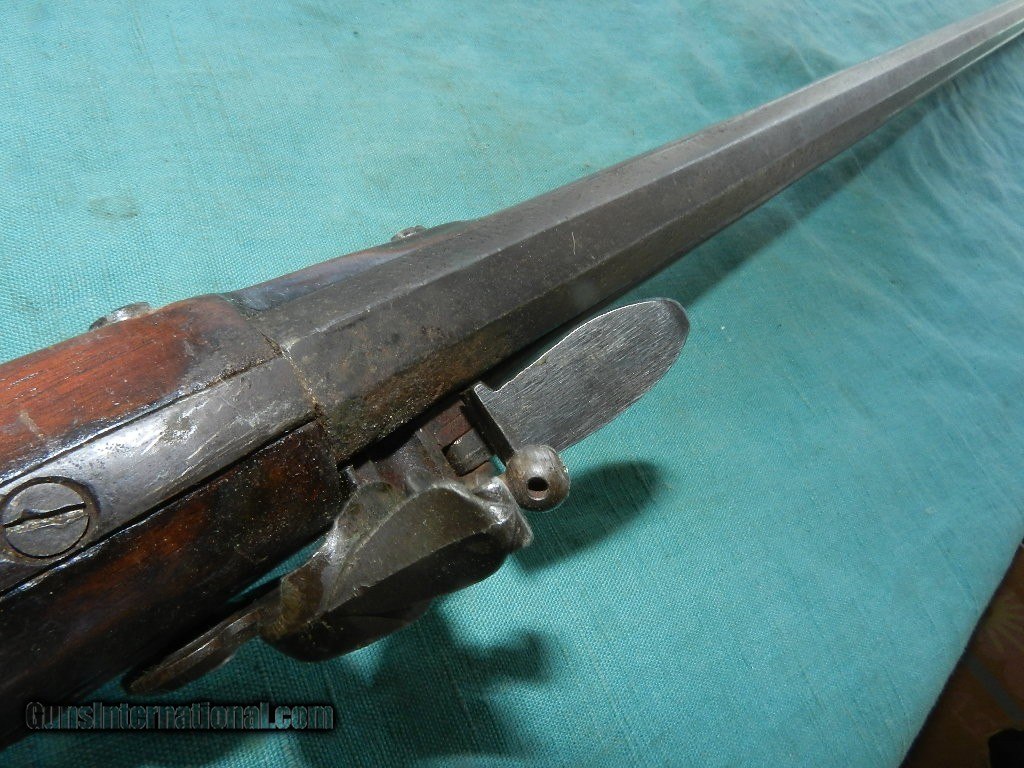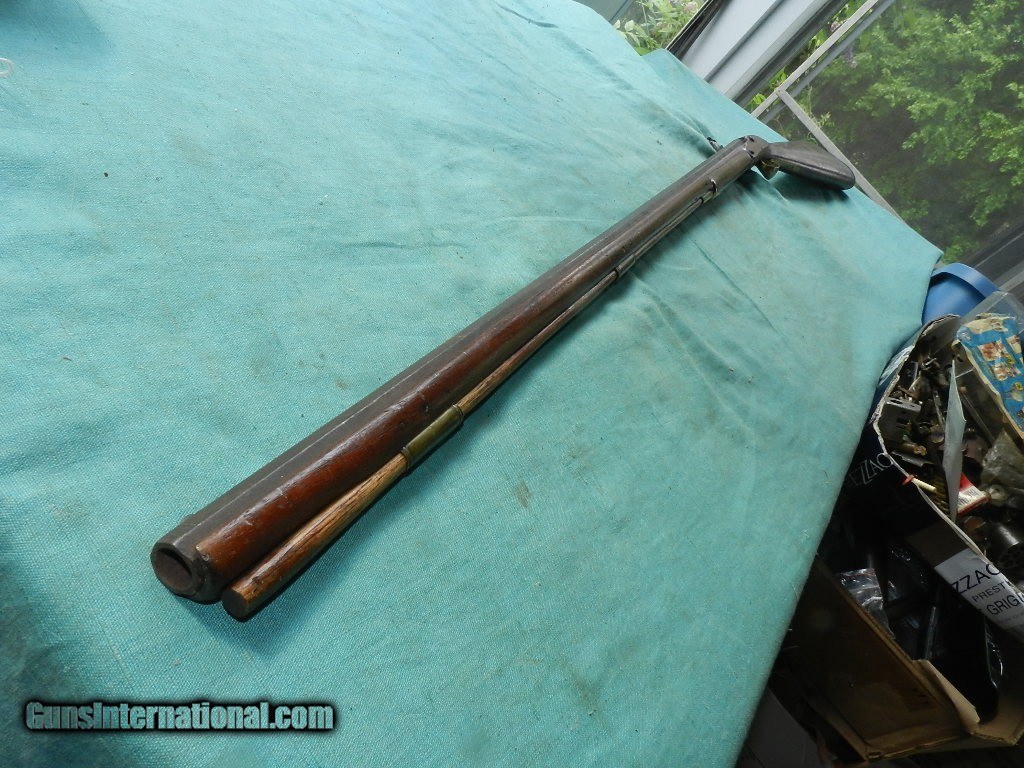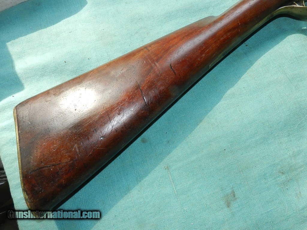 Description: An America made flintlock musket with a muzzle of about .56 cal.and a 41" octagonal barrel browned with age . The lock has no name , and no proofs on the barrel. the smooth bore is dark and dusty but doesn't look like a mess. Lock works but main spring is a little weak, and the tumbler shaft is narrow so the hammer is a little loose. The American walnut full stock is good and has brass furniture, comes with an aged oak ram-rod. Check my inventory of rare grips, unusual gun parts, Check my inventory of rare grips, unusual gun parts, barrels and holsters. Shipping may be higher than stated as shippers raise their prices twice year without notice! When buying a gun always have it examined by a competent gunsmith before shooting. To buy a gun from me you must get a direct email for me, with details, and shipping cost. We don’t have a web site .I prefer money orders or a check. Item ships when funds come in. If you can only pay with a card let me know. I try to keep guns affordable, which means I make less money than most dealers. You won’t get altitude sickness, or nose bleed, with my prices! I consistently have the best selection of older guns If you attempt to buy, you must still contact us for details . Best to email to buy. Sometimes a local person can stop buy and purchase before the gun is removed. Sometimes not home to get calls. Some guns are required shipment to a gun dealer near you for a transfer to you when it arrives. Otherwise many older or black powder guns ship to your door. With the widest selection of older guns at great prices, We don’t have a store, and sell on the internet only. I’m easy to get along with. Thank You. SOLD Antique: Yes |