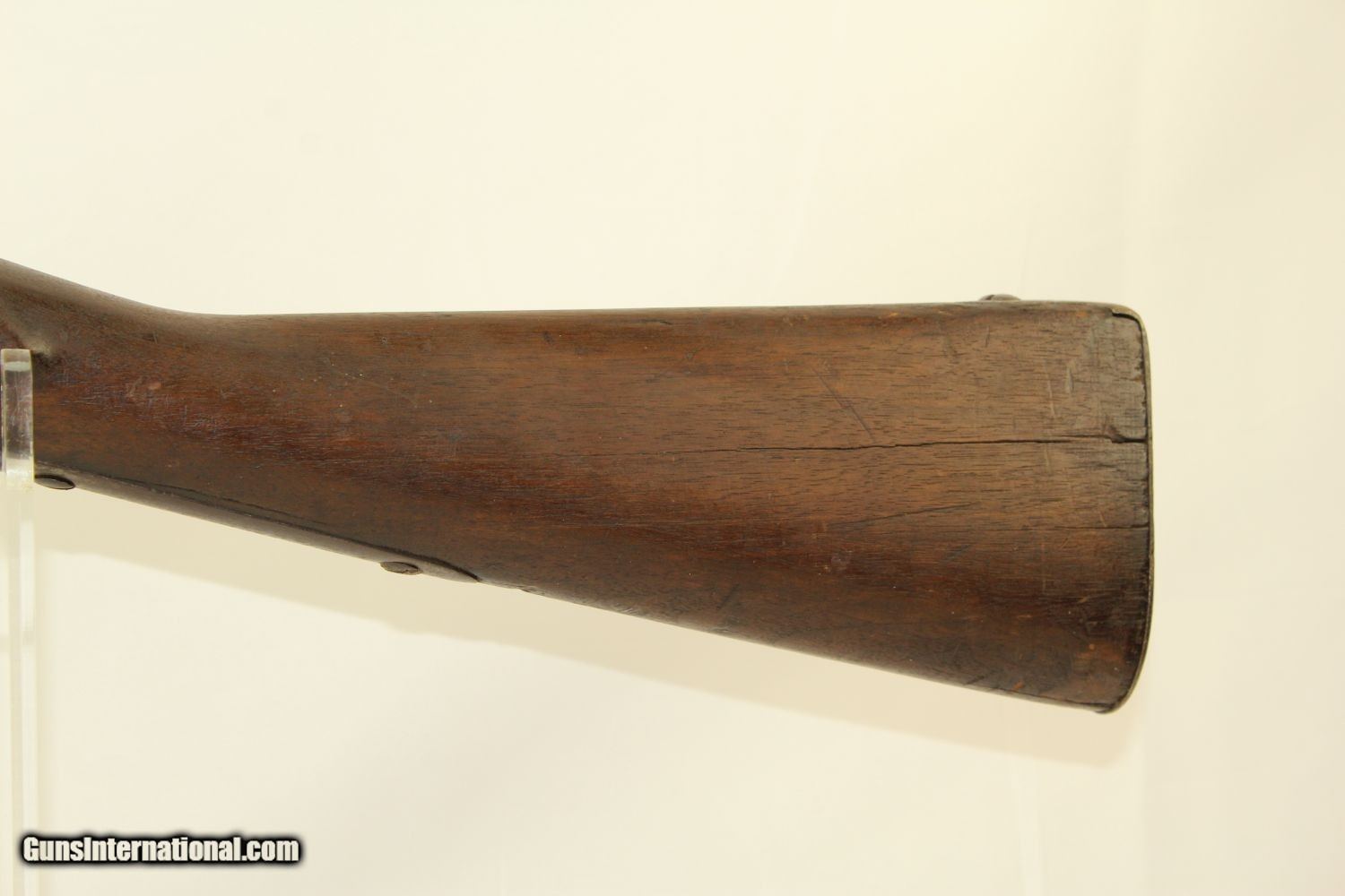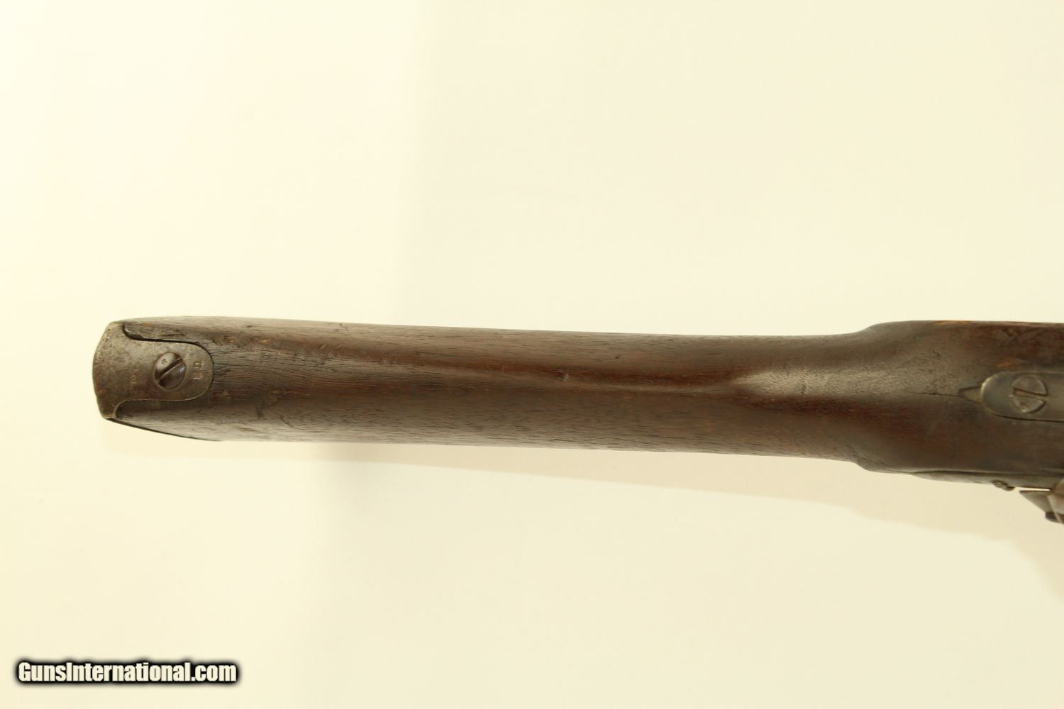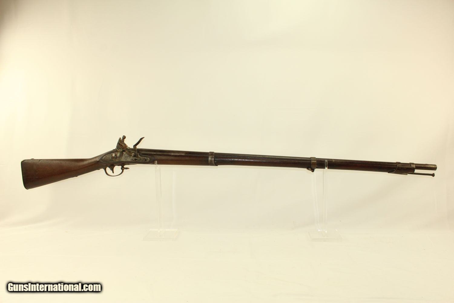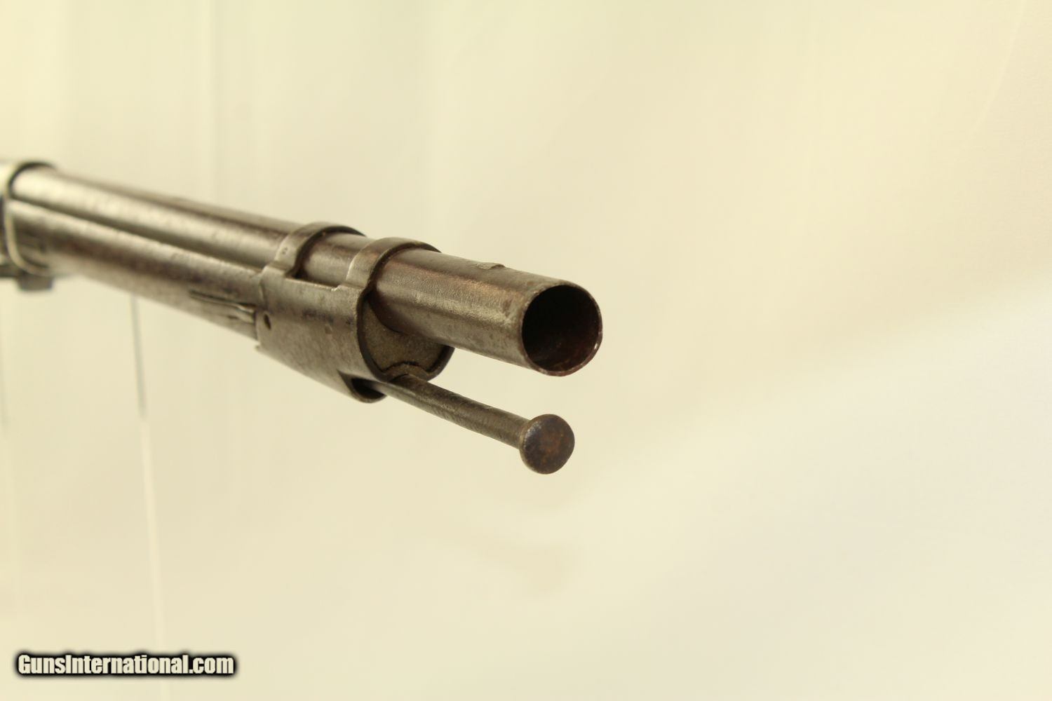 Description: Antique HARPERS FERRY Armory 1816 FLINTLOCK Musket Dated “1825”! Here we present an antique Harpers Ferry US Model 1816 Flintlock Musket, manufactured at the armory at Harpers Ferry, Virginia circa 1825. This musket was at one time updated to the percussion firing system before being converted back to flintlock. The War of 1812 revealed many weaknesses in American muskets. In an attempt to improve both the design and manufacture of the musket, the Model 1812 musket was created. The Model 1816 made further improvements, and replaced the Model 1812. Harpers Ferry became America’s second national armory after the site was personally selected by George Washington, with the Springfield Armory being the first. The U.S. Congress authorized the building of the new foundry in 1794, and by the following year, was producing hundreds of arms for the national army, which was primarily flintlock muskets and pistols. Inspired largely by the French Charleville Model 1777 musket, Harpers Ferry began producing the Model 1816. The M1816 was a smoothbore, muzzle loading weapon which used a .69 caliber musket ball. A trained shooter could fire between two and three rounds at a range of up to 200 yards per minute. The M1816 was in production at Springfield (325,000) and Harpers Ferry (350,000) between 1816 to 1844 with around 675,000 muskets produced during this run. It saw service during the Mexican-American War and was even pressed into service during the Civil War in both the updated percussion and the old flintlock format. In the 1850’s, many 1816’s went through the conversion from flintlock to percussion. Here we have a true survivor still in its original flintlock state! The tail of the lock is marked “HARPERS/FERRY/1825”. The overall condition is good. The bore is smooth and quite dusty. The action remains strong. Own the original! This is a legitimate antique and not a reproduction. Barrel is 42 inches. Caliber: .69 Overall condition as seen in photos. Very Fast. Very Safe. FREE SHIPPING WORLDWIDE. Delivered directly to your door by express mail! Guaranteed AUTHENTIC & Includes CERTIFICATE OF AUTHENTICITY. ancestryguns $2100 #190309 SOLD Antique: Yes |